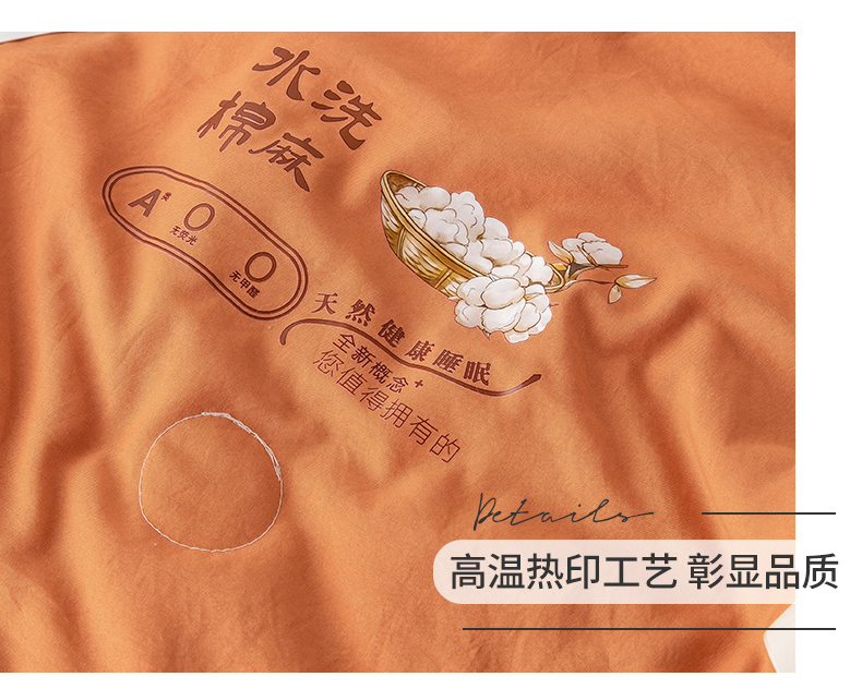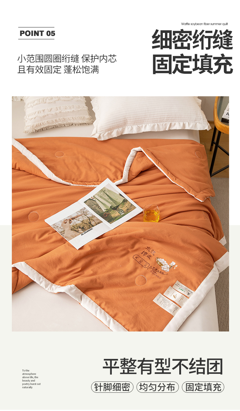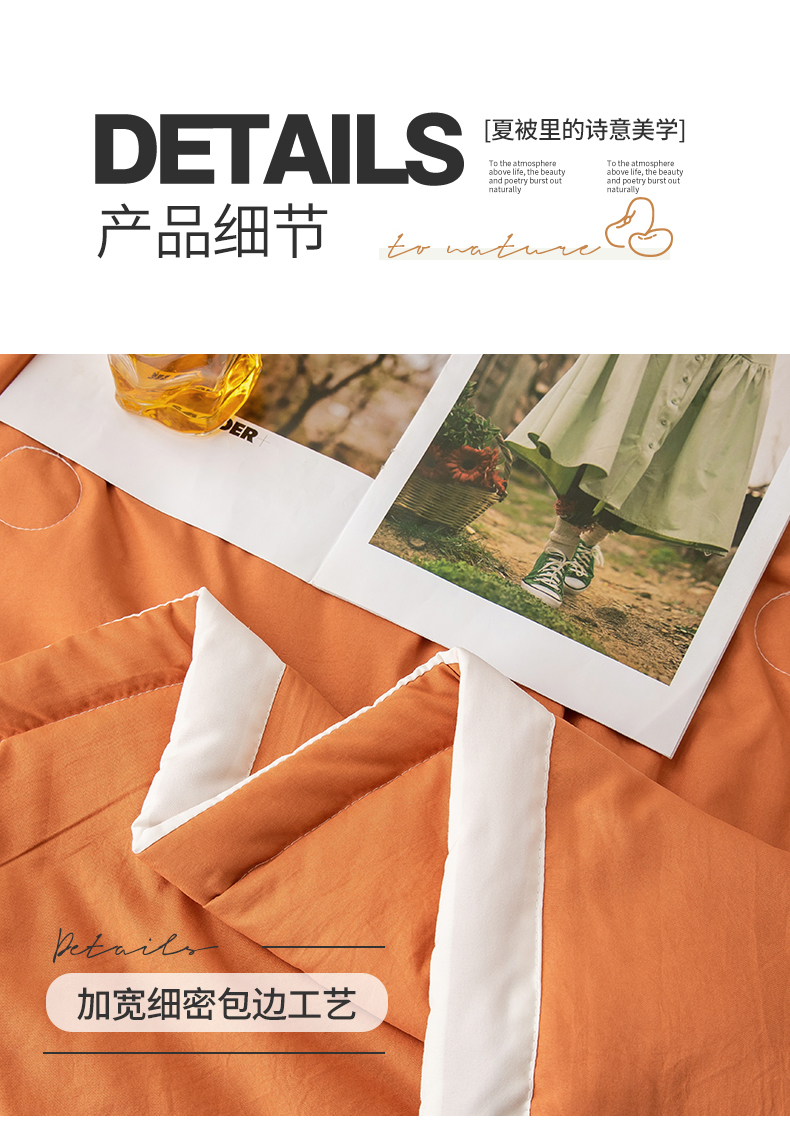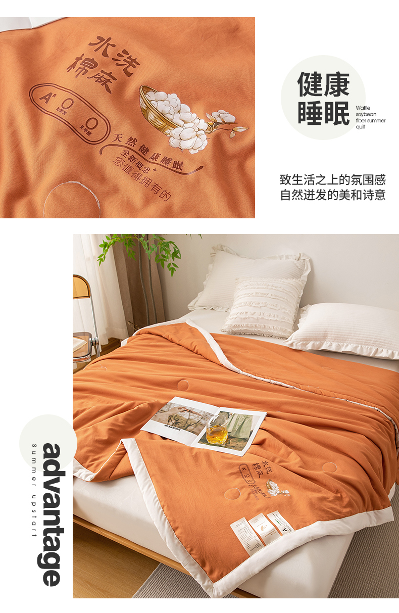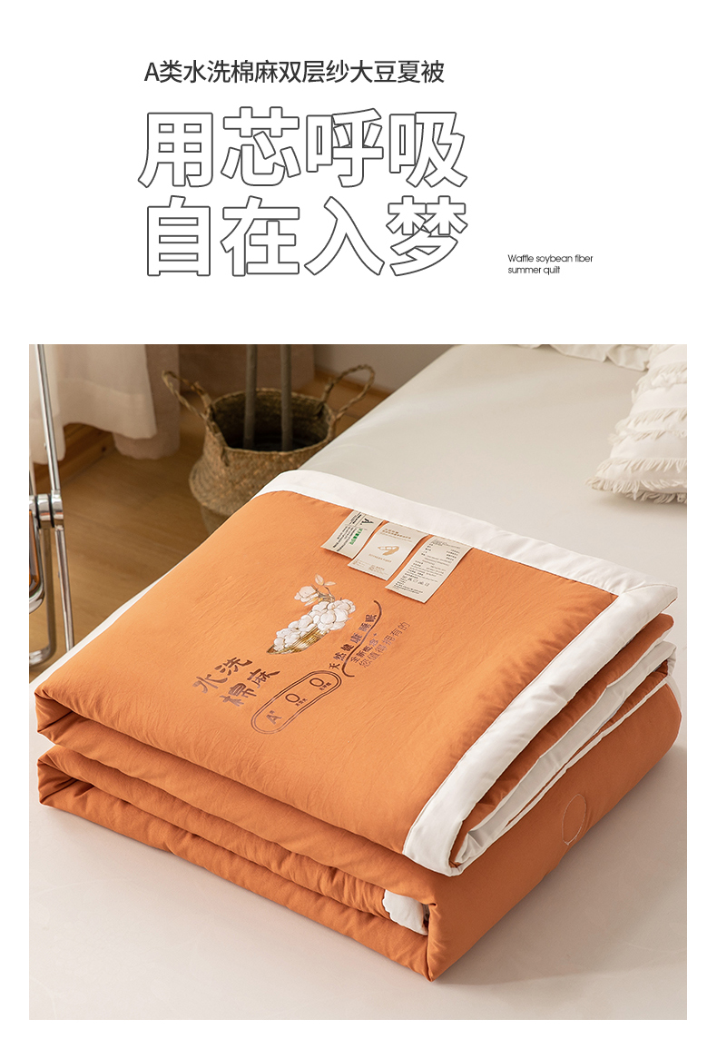 蓝冰家纺 2023新款水洗棉棉麻大豆夏被 暖橙色