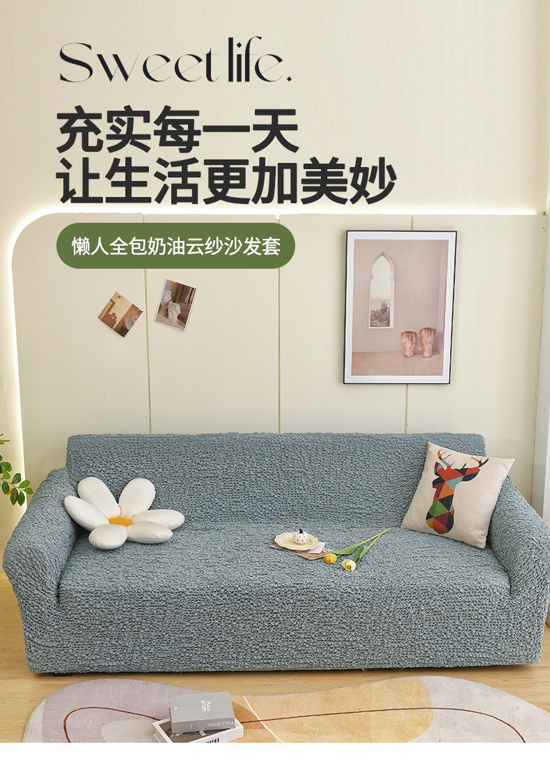 (总)启博家纺 2023新款奶油云纱全包沙发套