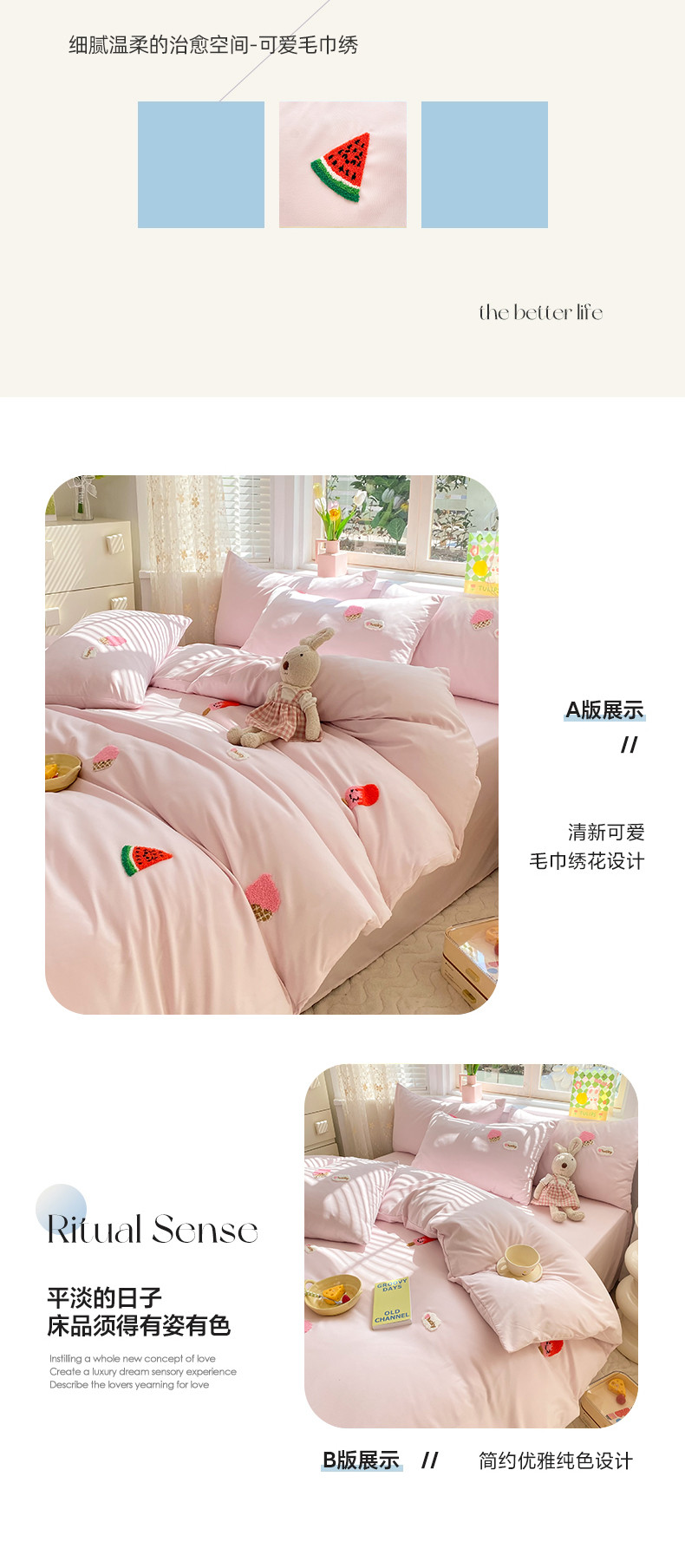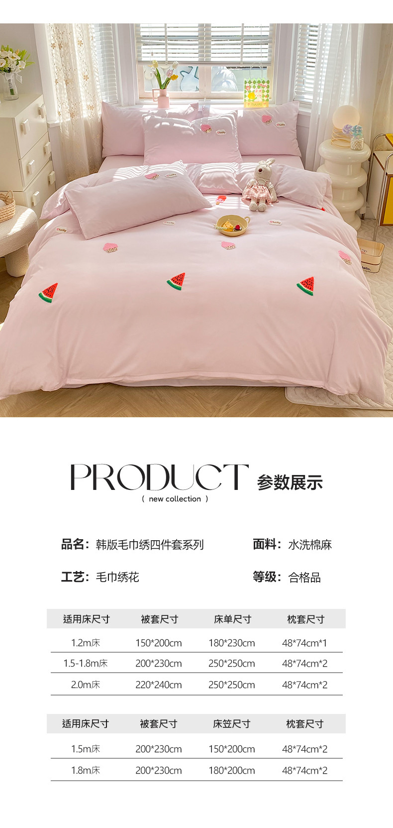 商品名称:丝印良品 2023新款专版水洗棉麻毛巾绣四件套 西瓜
