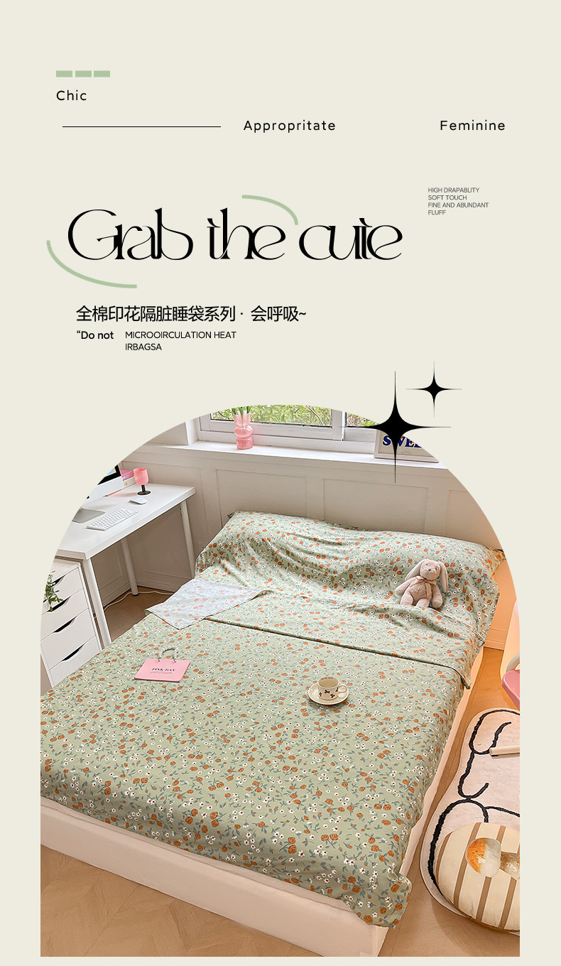 雅居纺 2023新款全棉印花隔脏睡袋 花季