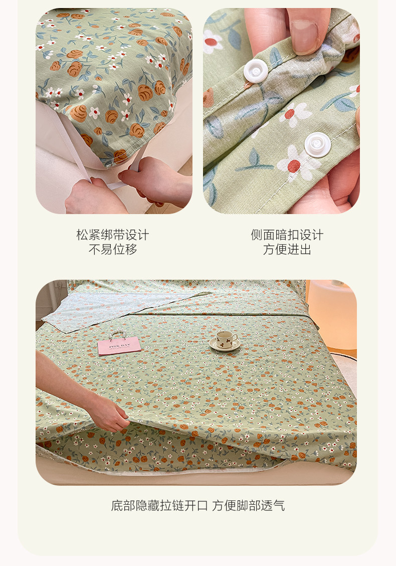 商品名称:雅居纺 2023新款全棉印花隔脏睡袋 花季
