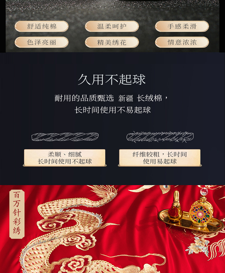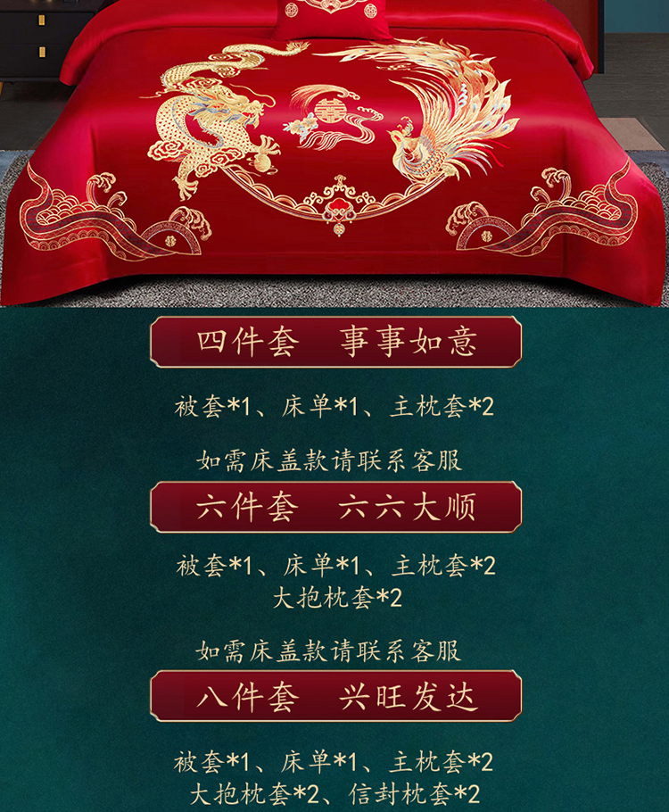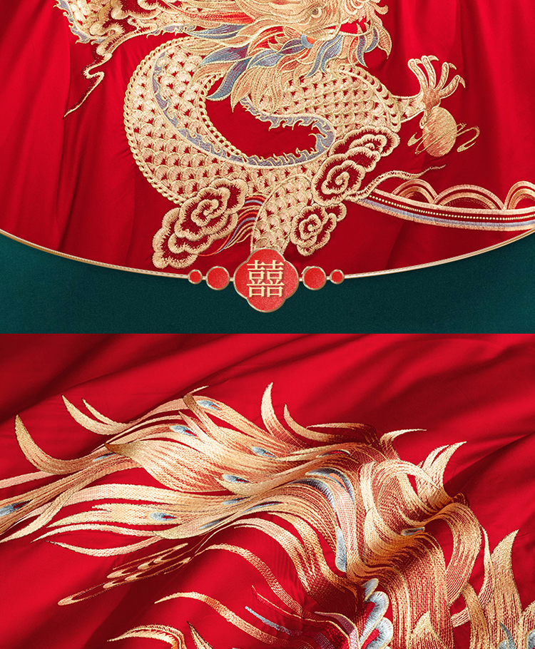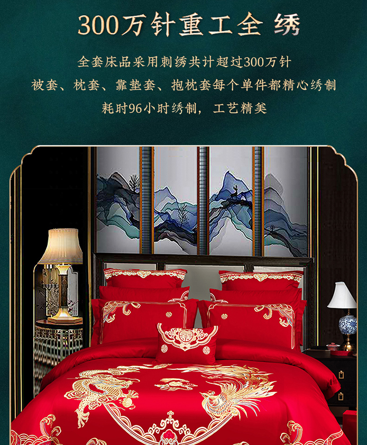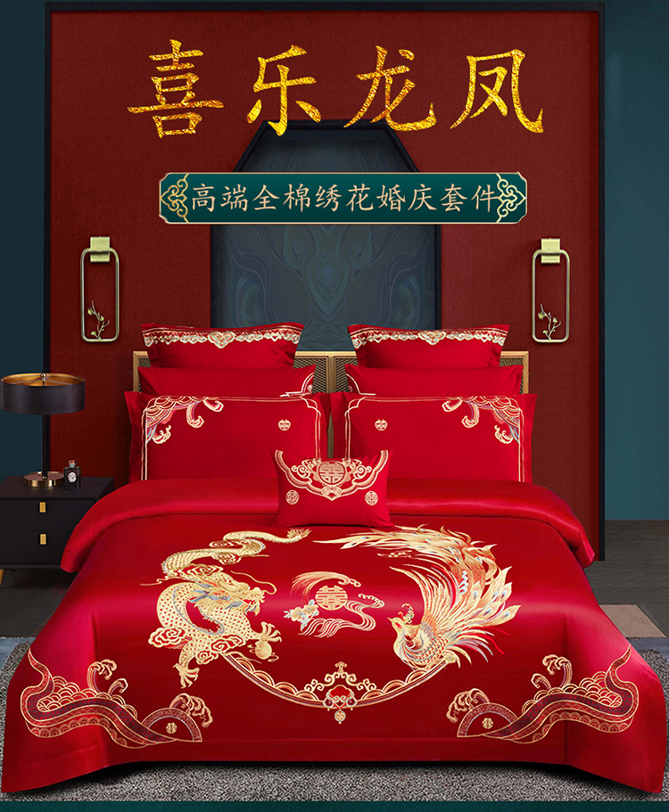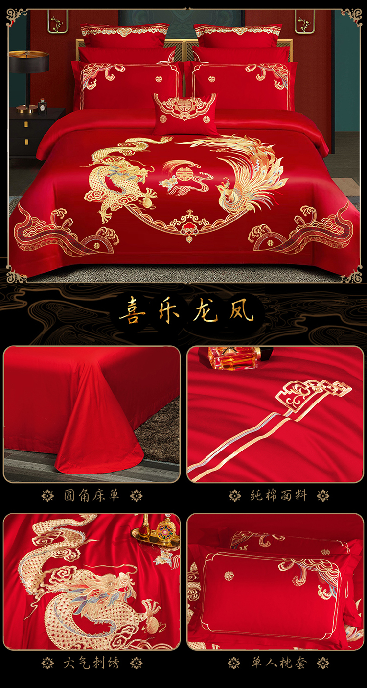 当前位置: 91家纺网 > 商品网购 > 床品套件 > 多件套 > 多件套 > 蒂爵 全棉纯棉原版重绣超大花绣花婚庆四件套多件套 喜乐龙凤