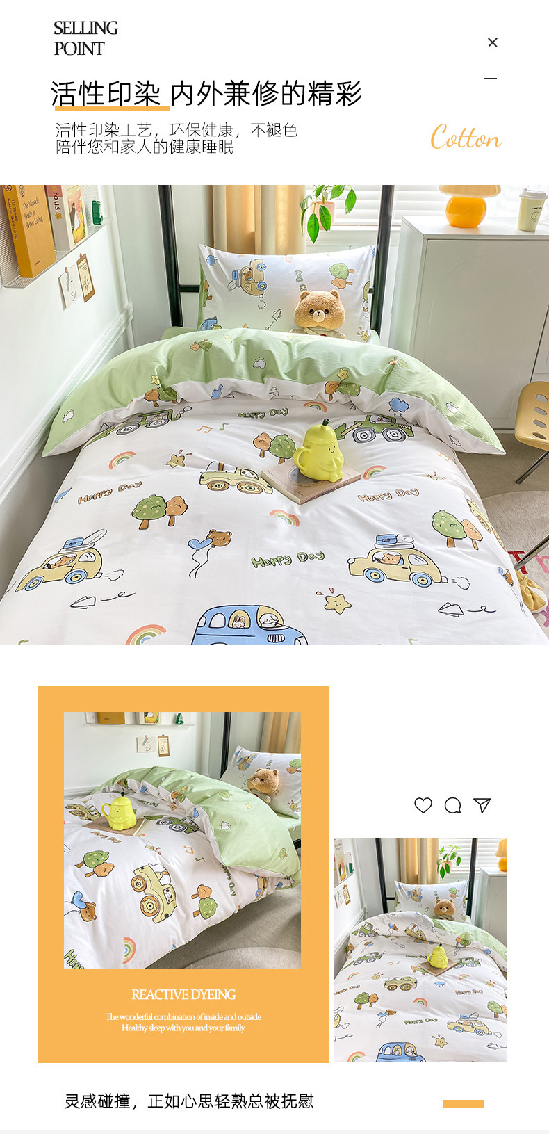 当前位置: 91家纺网 > 商品网购 > 床品套件 > 三件套 > 吉象 2025新款全棉印花学生宿舍三件套 工程车
