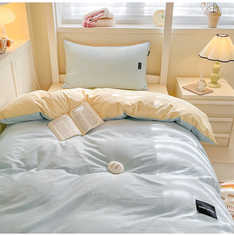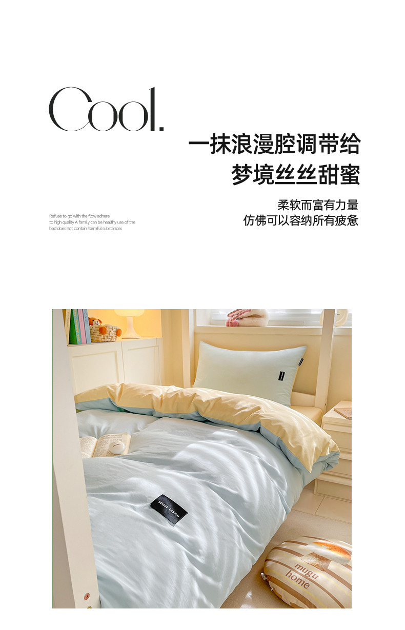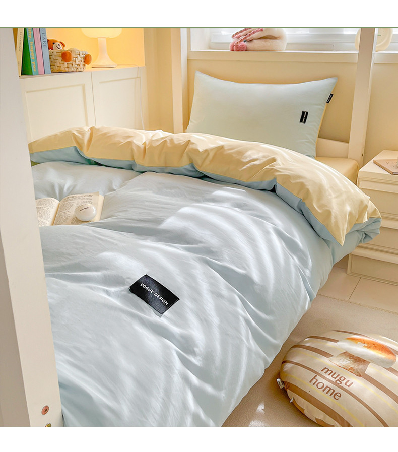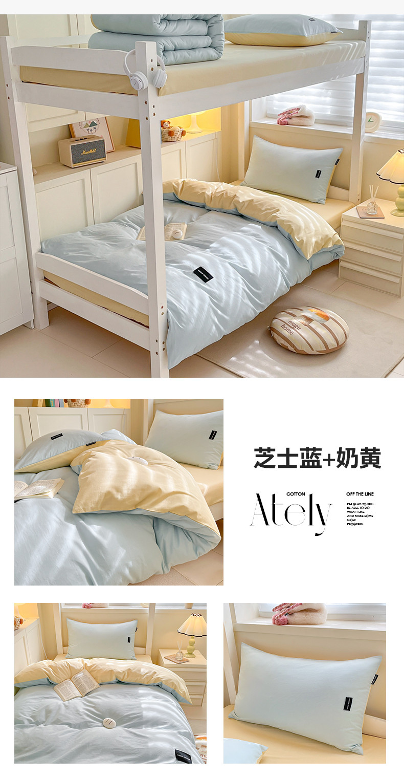 佰亿莱 2024新款全棉无印风学生宿舍套件 芝士蓝+奶黄