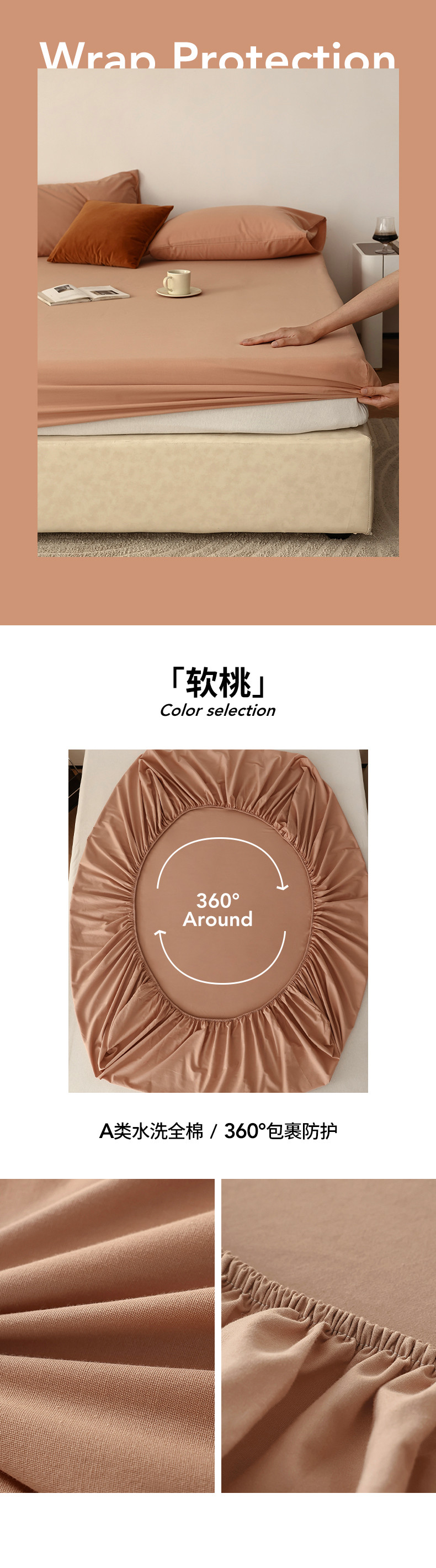 商品名称:万盛 2023新款全棉40支水洗棉单层床笠 软桃