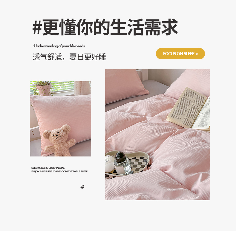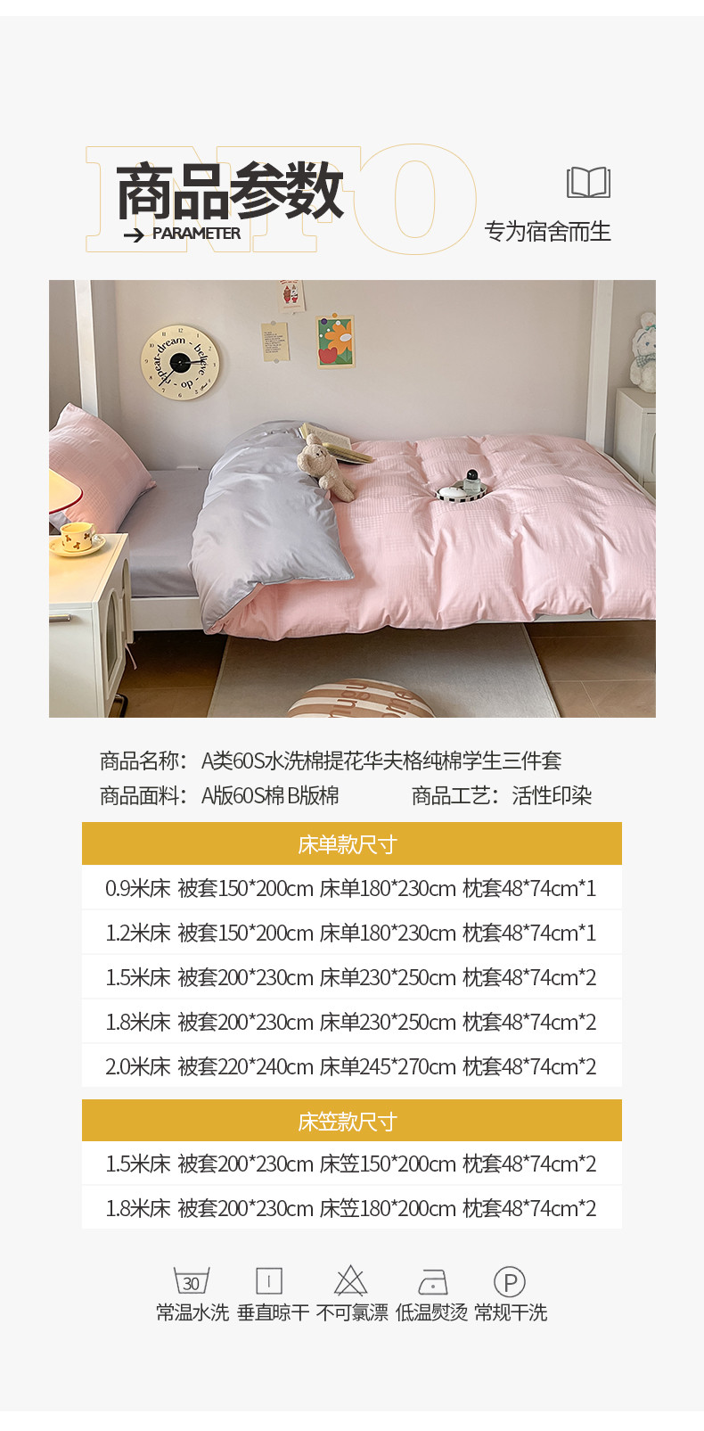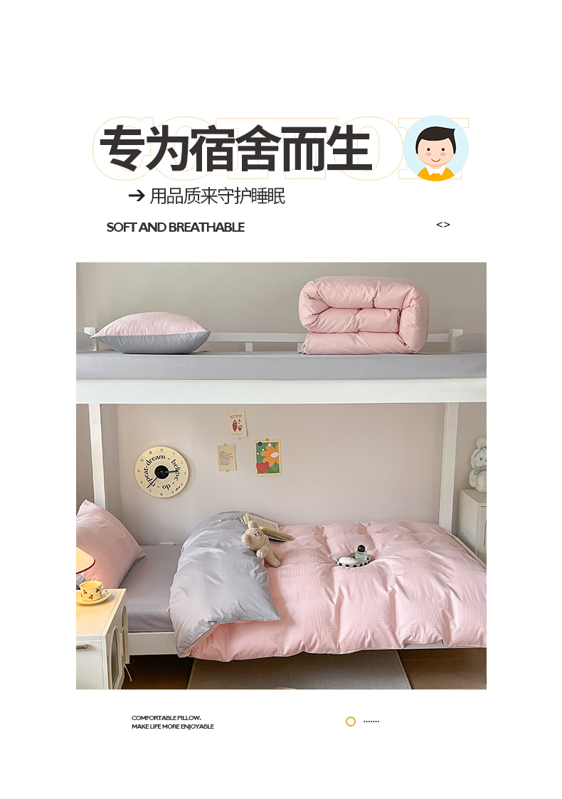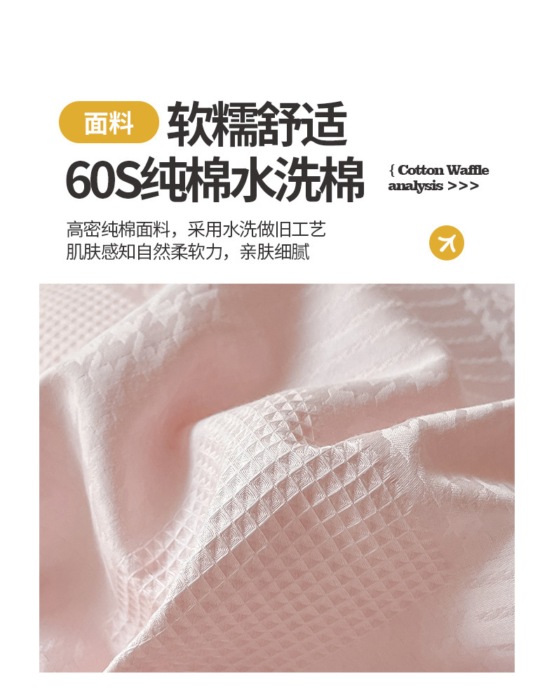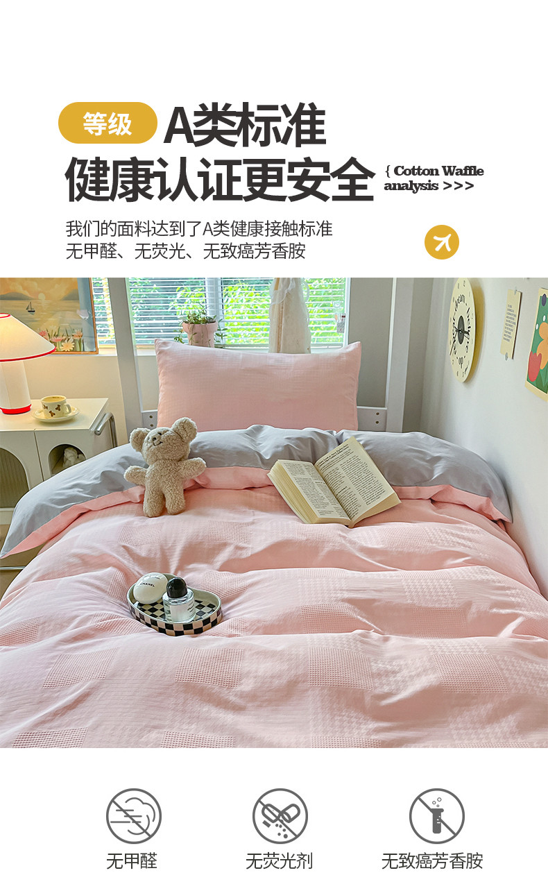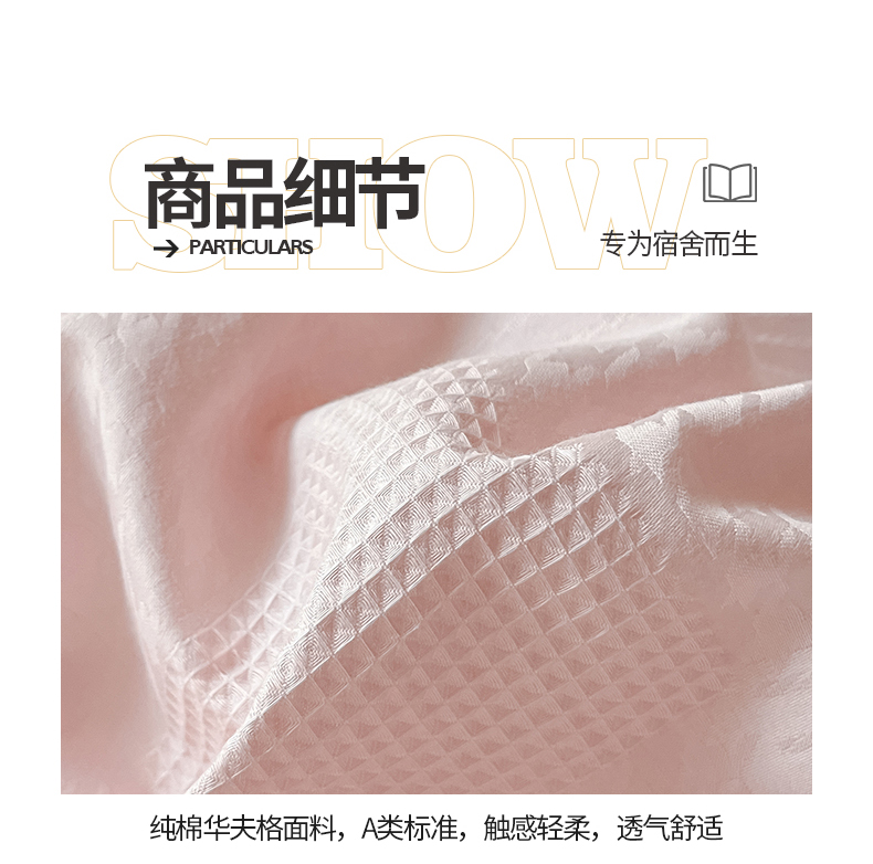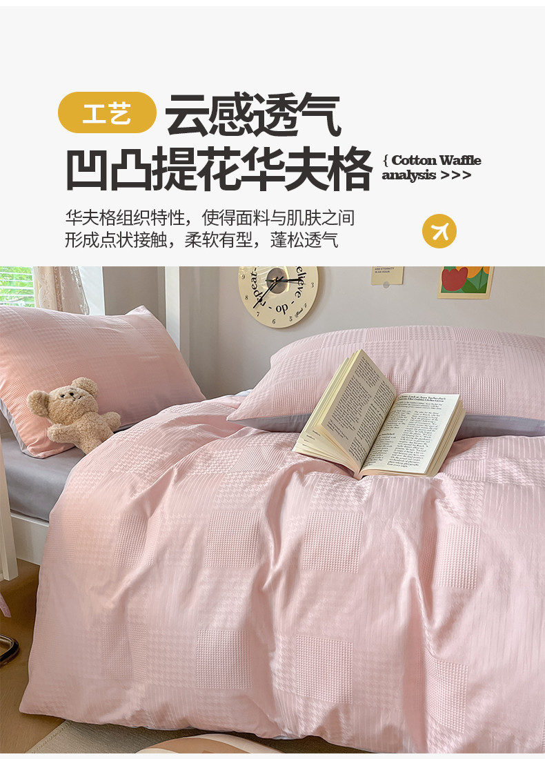 商品名称:桃子家居 2023新款A类60S水洗棉提花华夫格纯棉学生三件套 粉灰