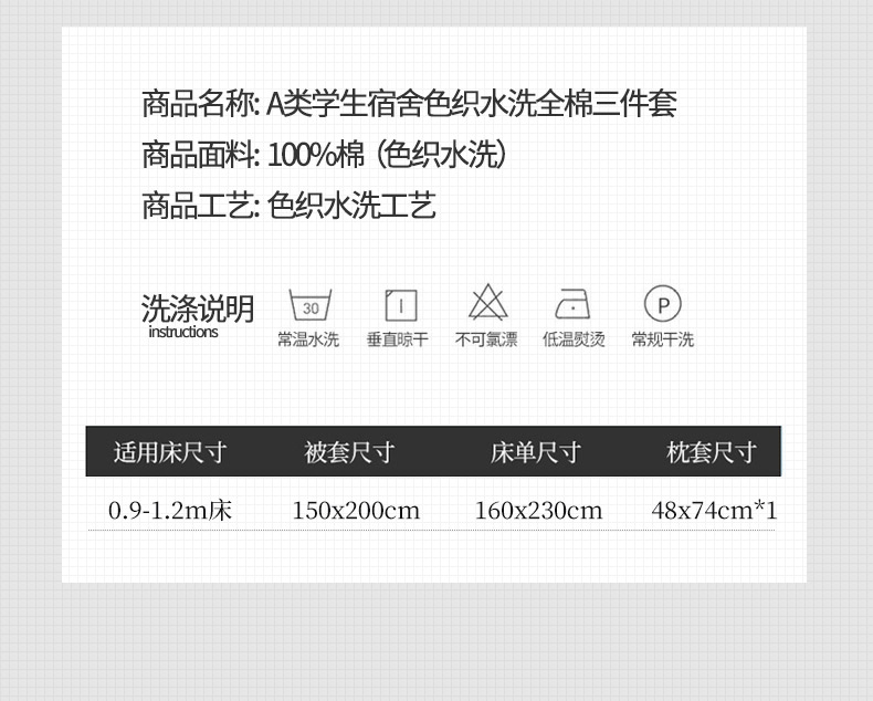 0.9m床单款三件套(被套150*200cm 床单160*230cm 枕套一只)