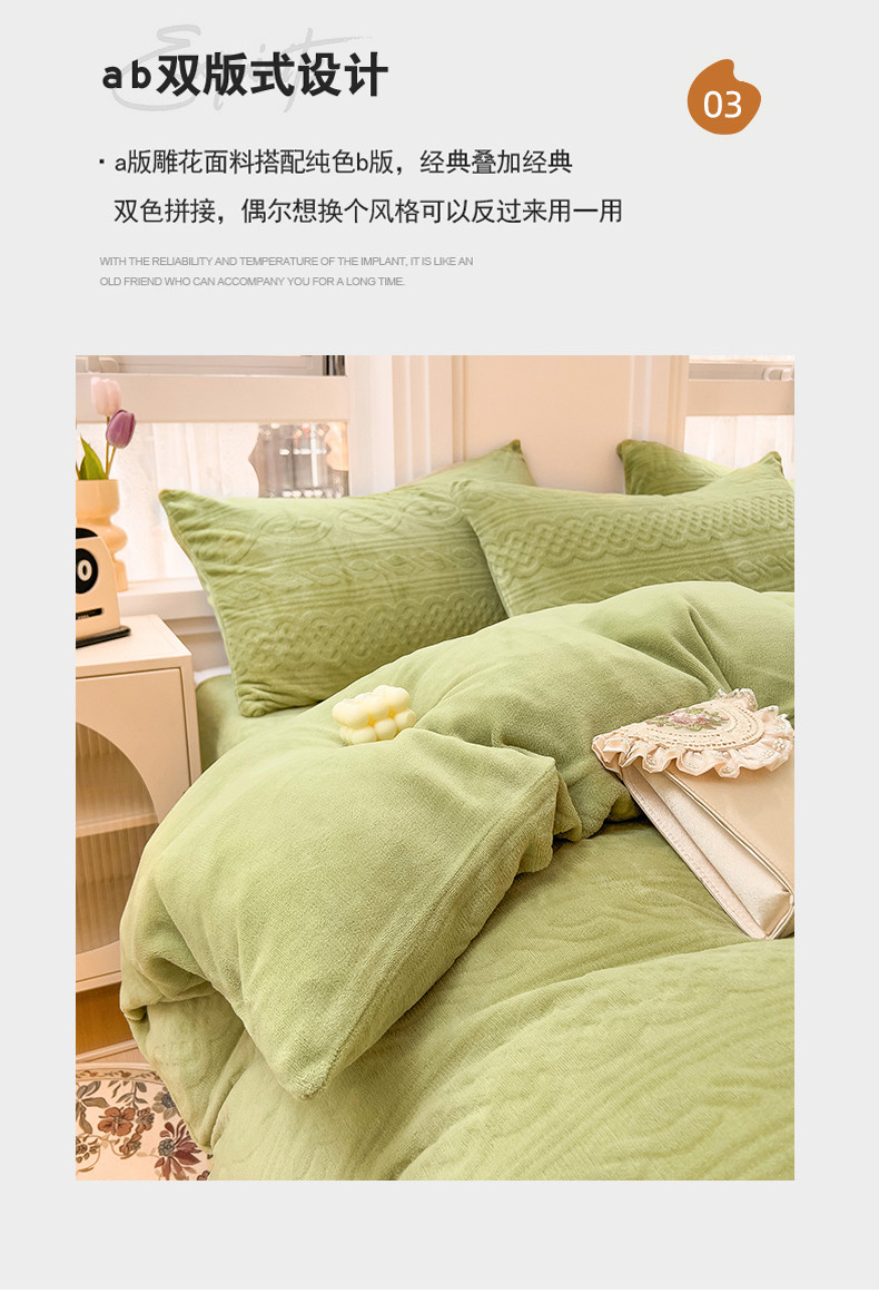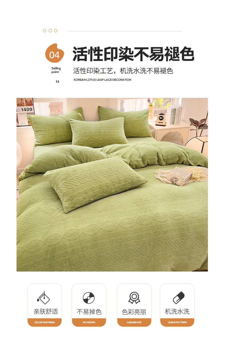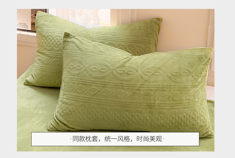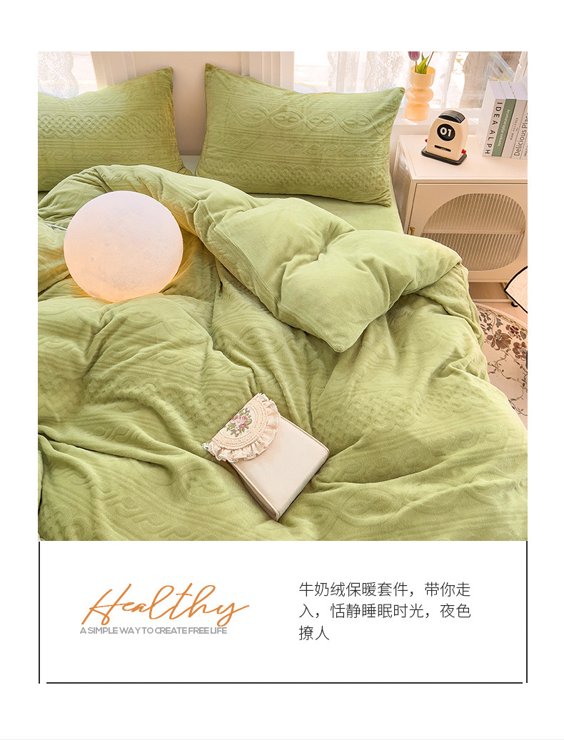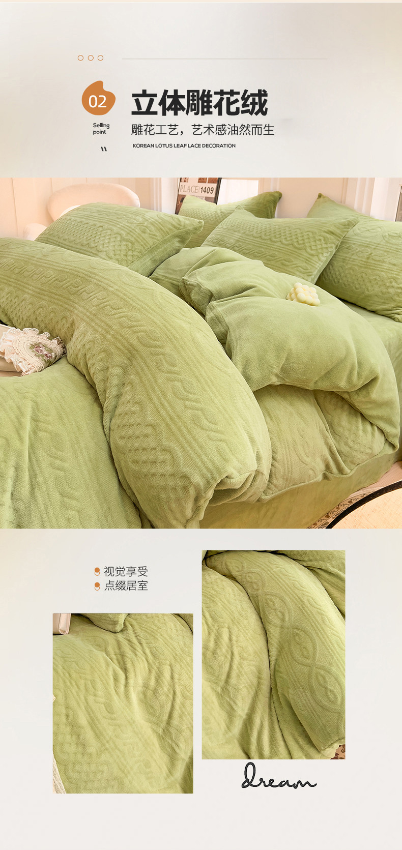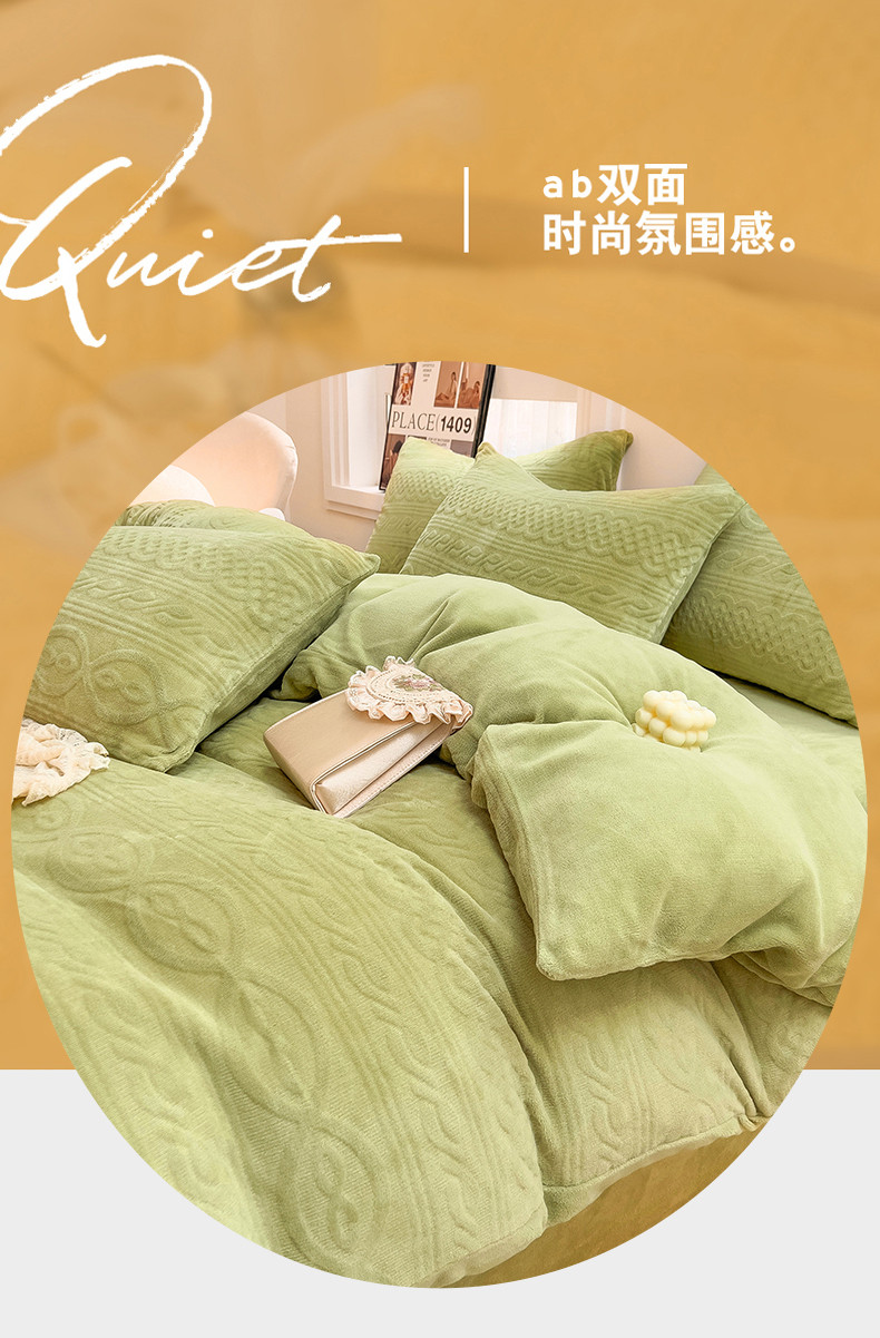 商品名称:N先生 2023秋冬新款高克重牛奶绒雕花绒四件套-丽莎系列 丽莎-绿