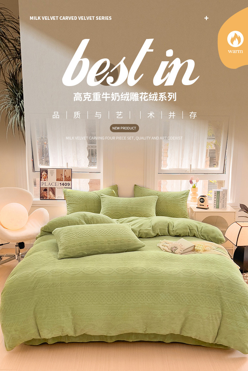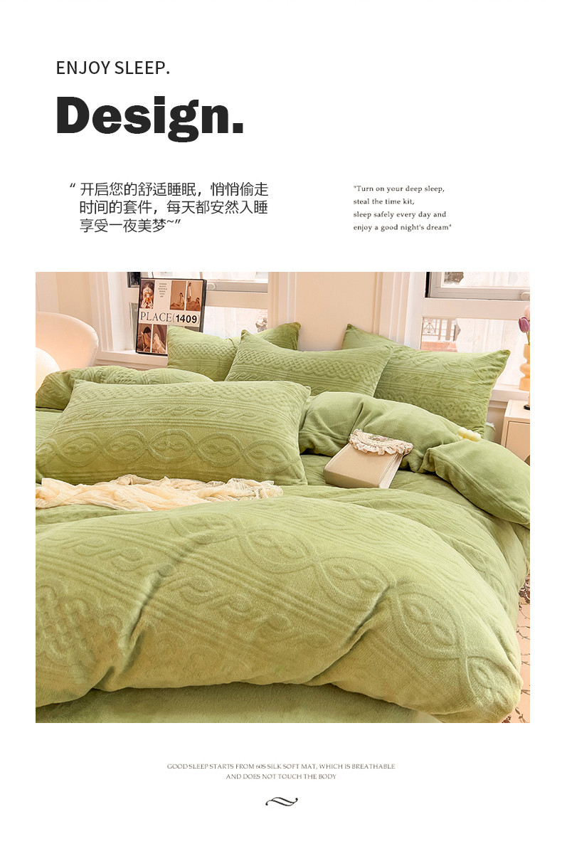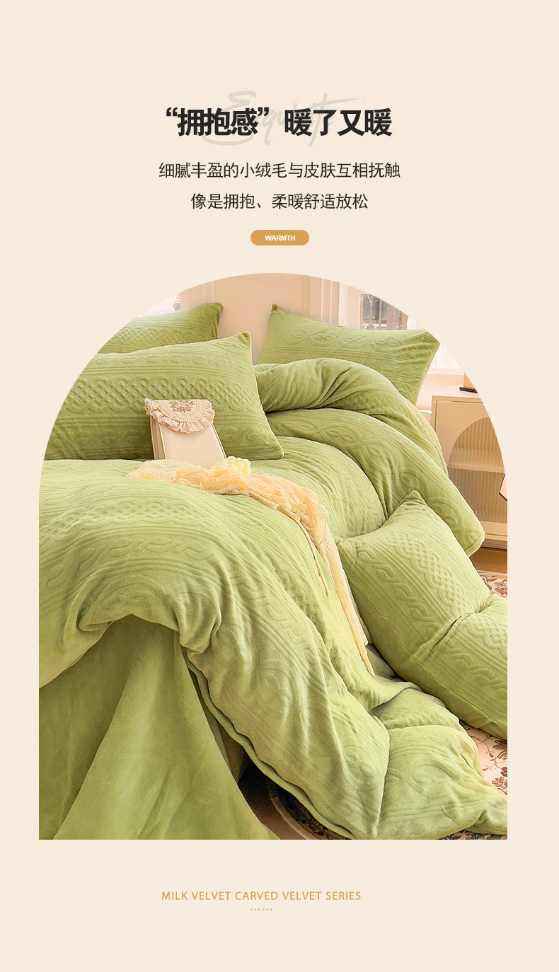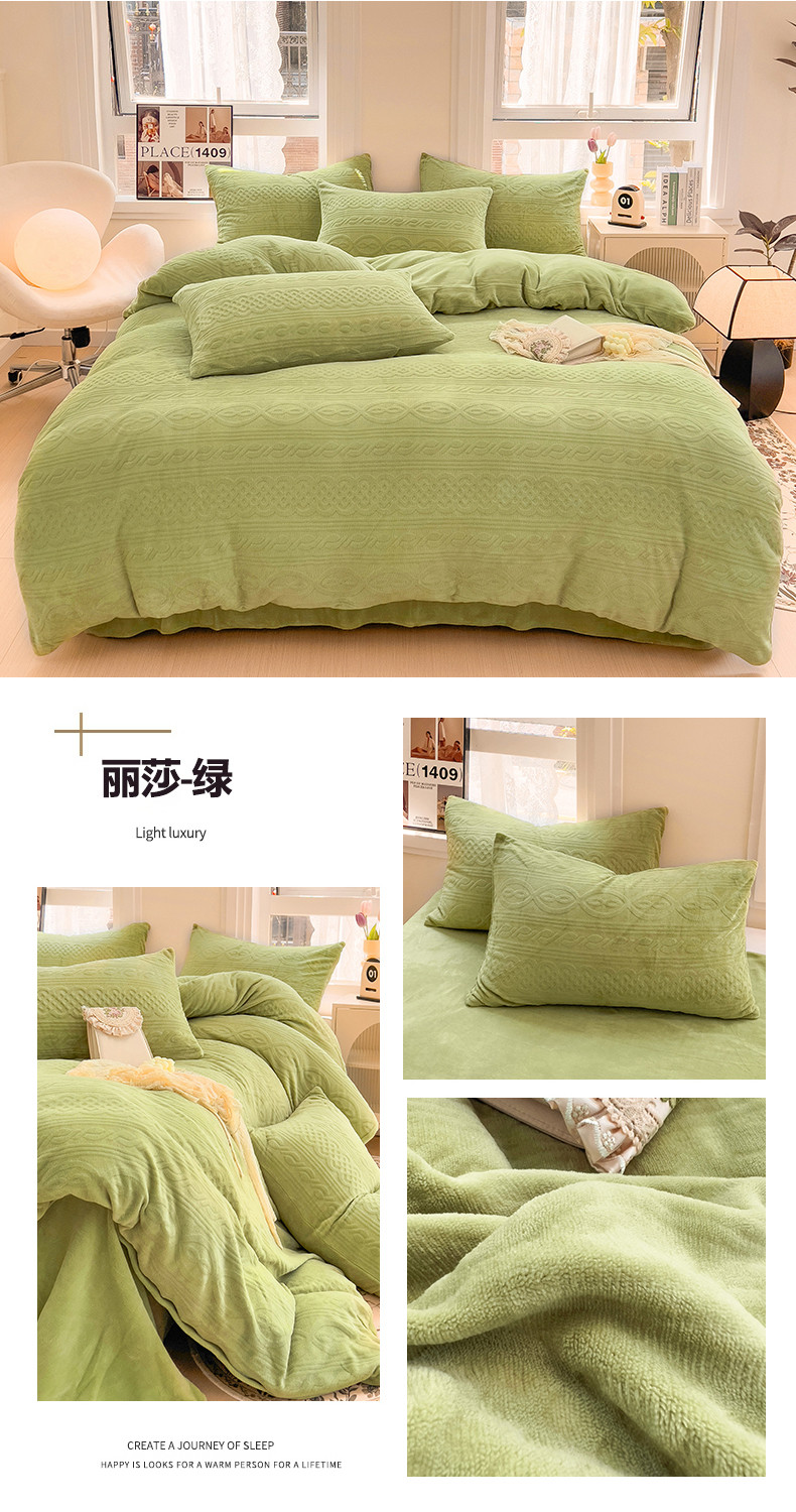 N先生 2023秋冬新款高克重牛奶绒雕花绒四件套-丽莎系列 丽莎-绿