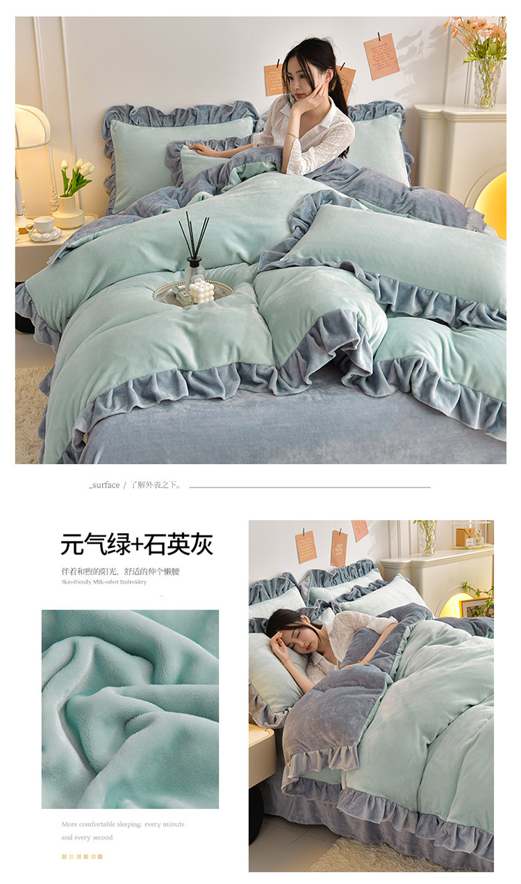 商品名称:妮恒美 2023新款韩版纯色牛奶绒四件套 元气绿+石英灰