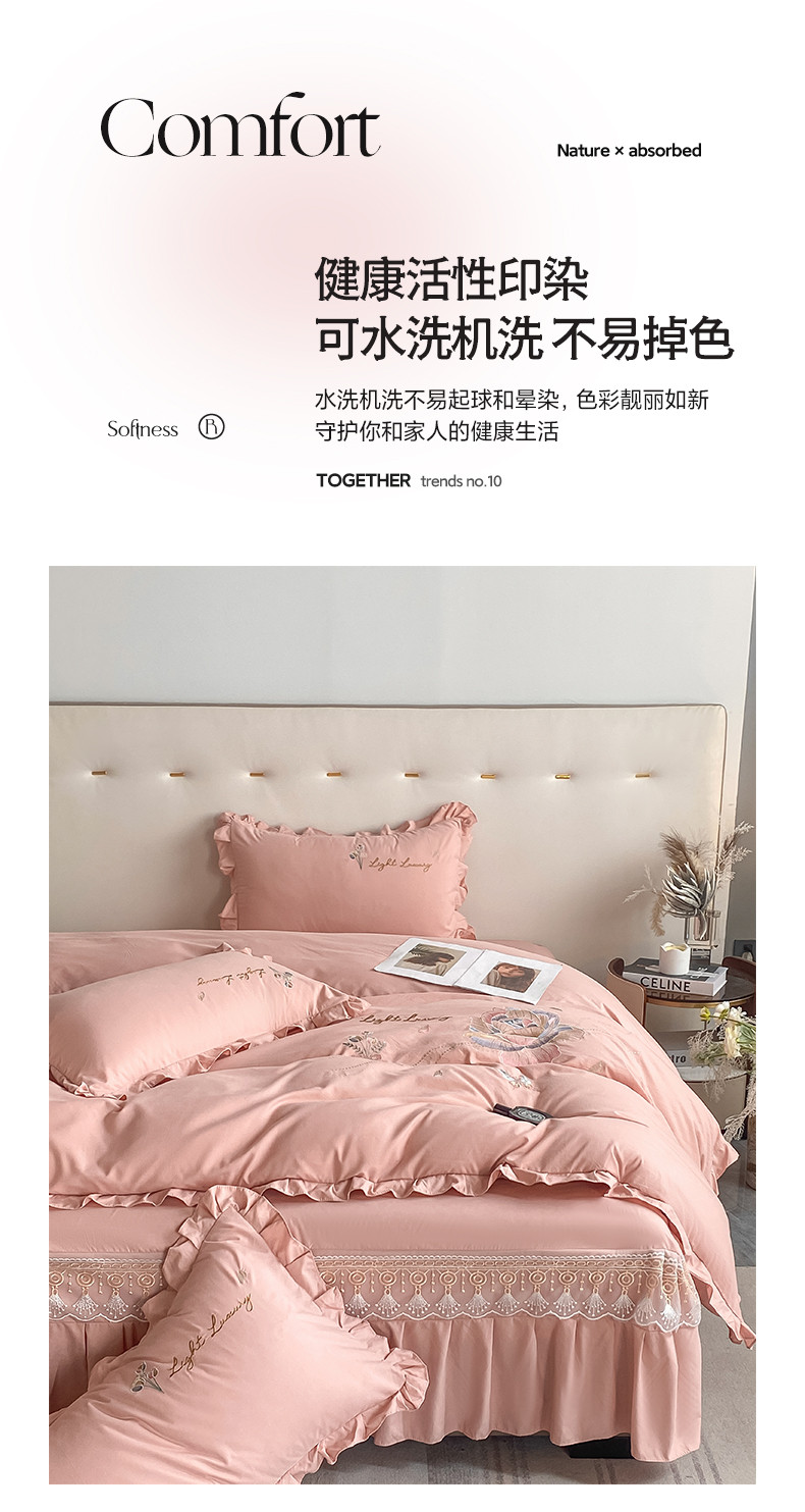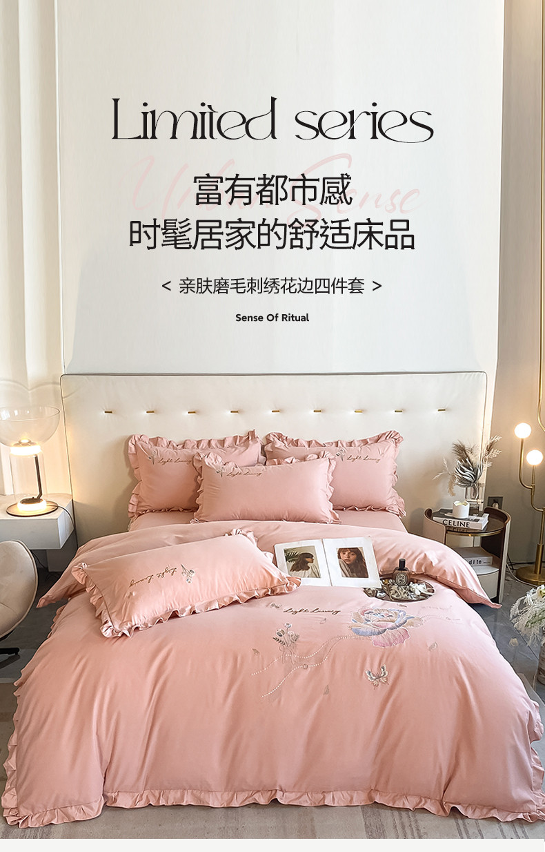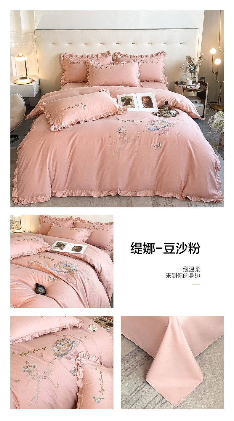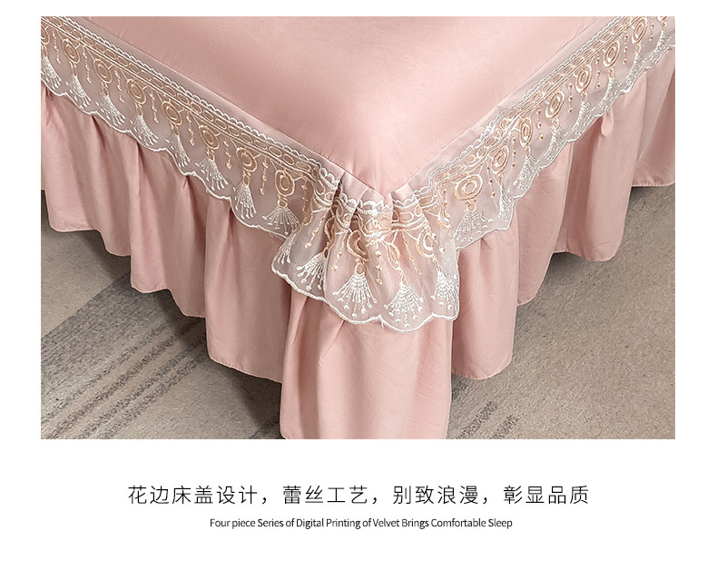 当前位置: 91家纺网 > 商品网购 > 床品套件 > 四件套 > 普通磨毛四件套 > 艺玲 2023新款韩版亲肤磨毛刺绣蕾丝床裙床单如意系列四件套 缇娜-豆沙粉