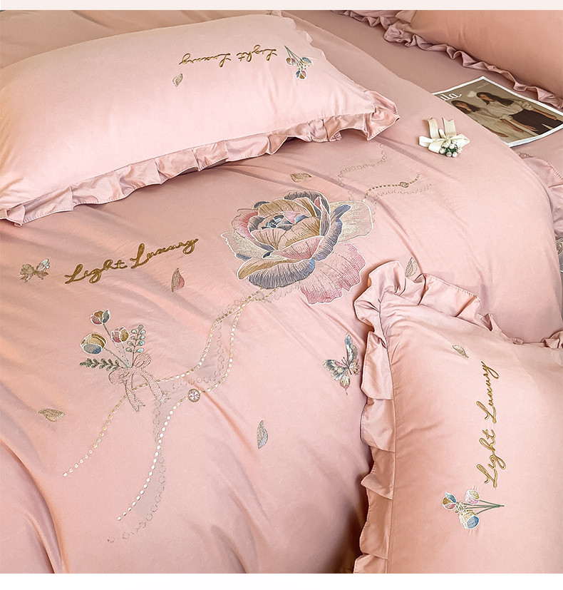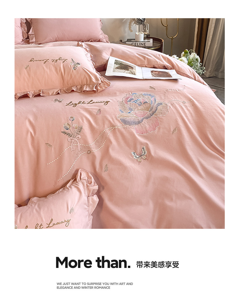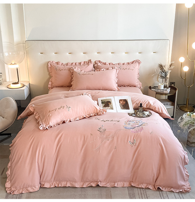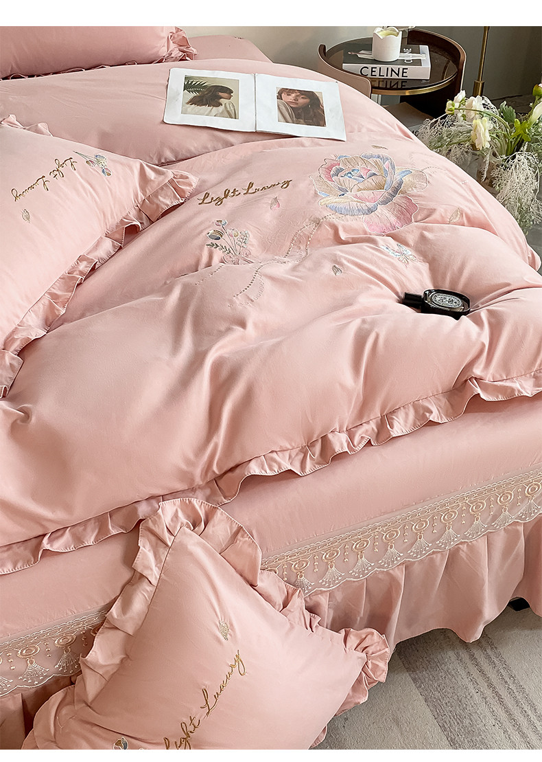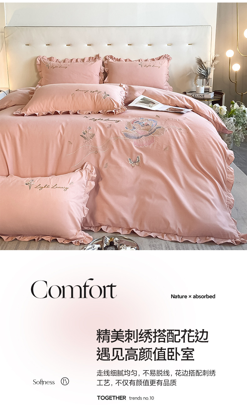 当前位置: 91家纺网 > 商品网购 > 床品套件 > 四件套 > 普通磨毛四件套 > 艺玲 2023新款韩版亲肤磨毛刺绣蕾丝床裙床单如意系列四件套 缇娜-豆沙粉