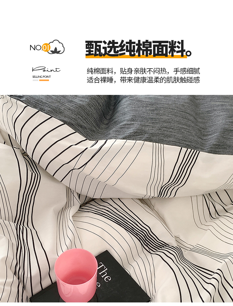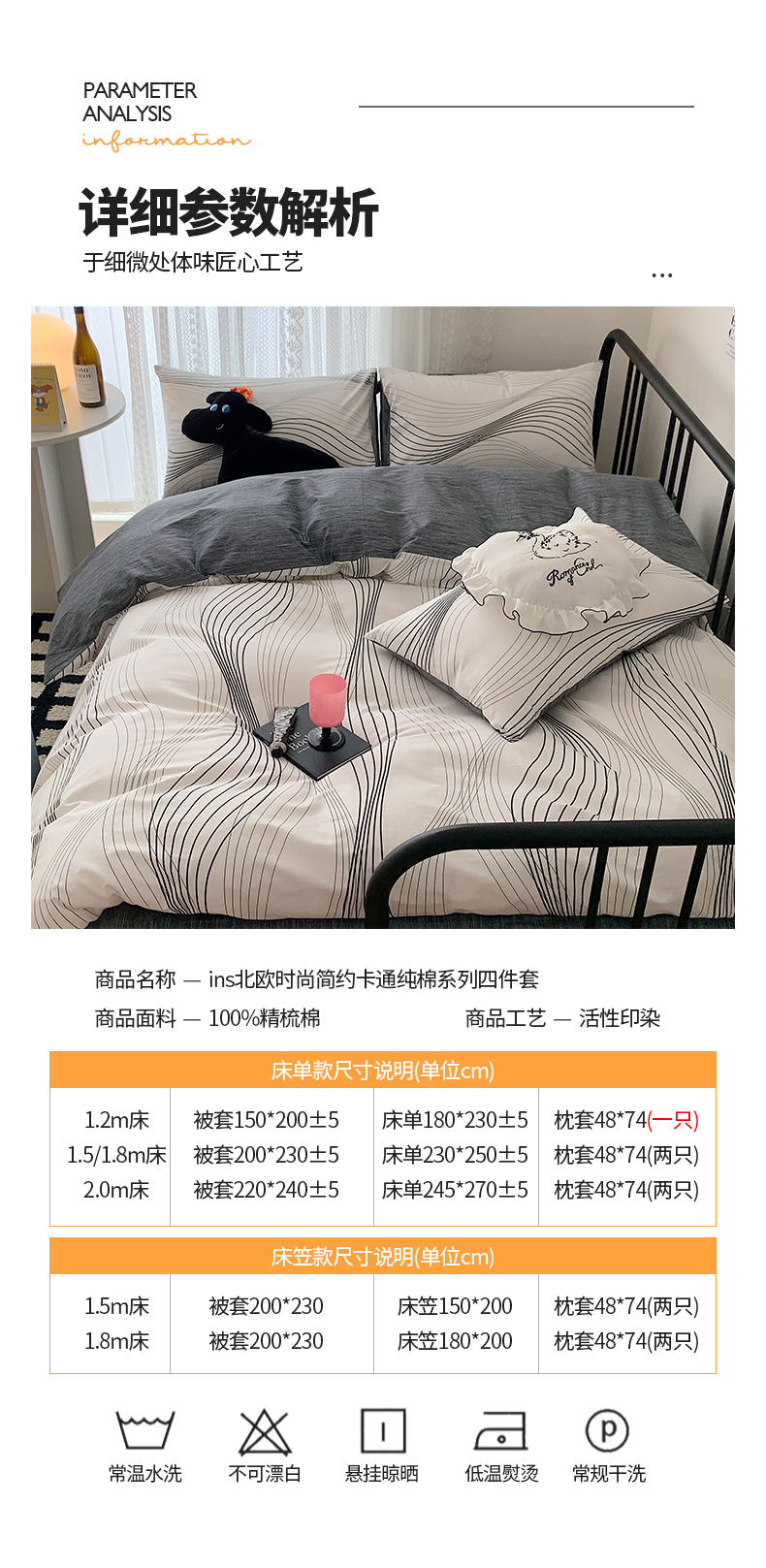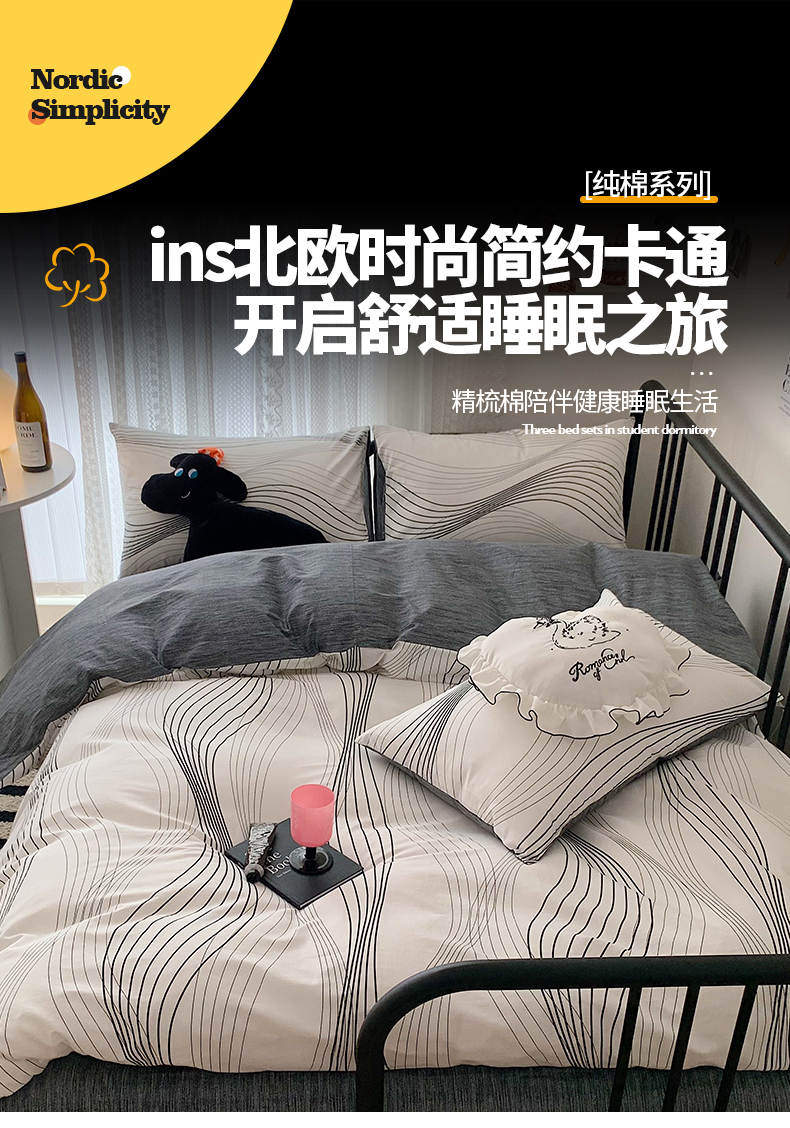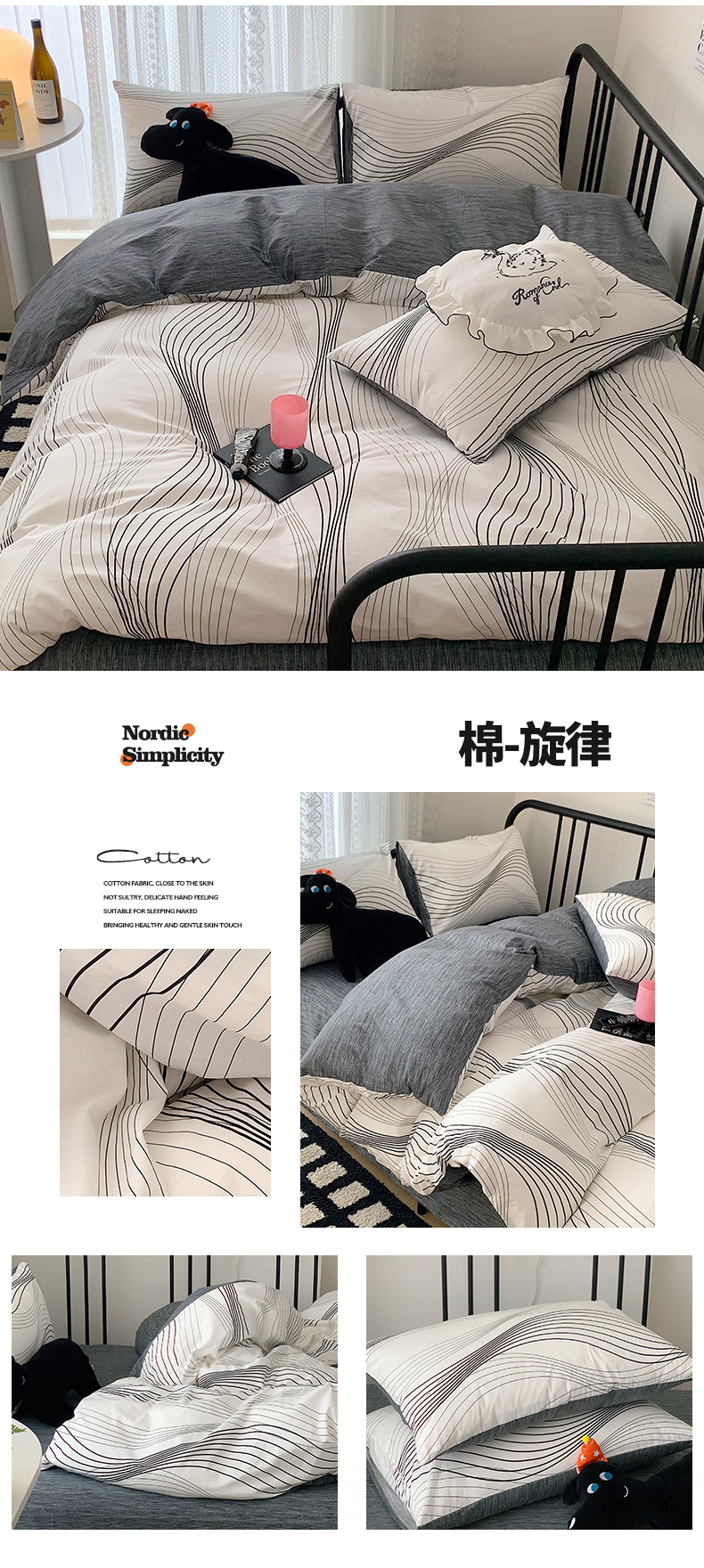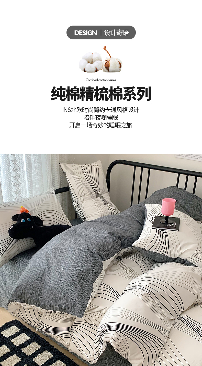 商品名称:桃子家居 2023新款ins北欧时尚简约卡通纯棉四件套系列 棉-旋律