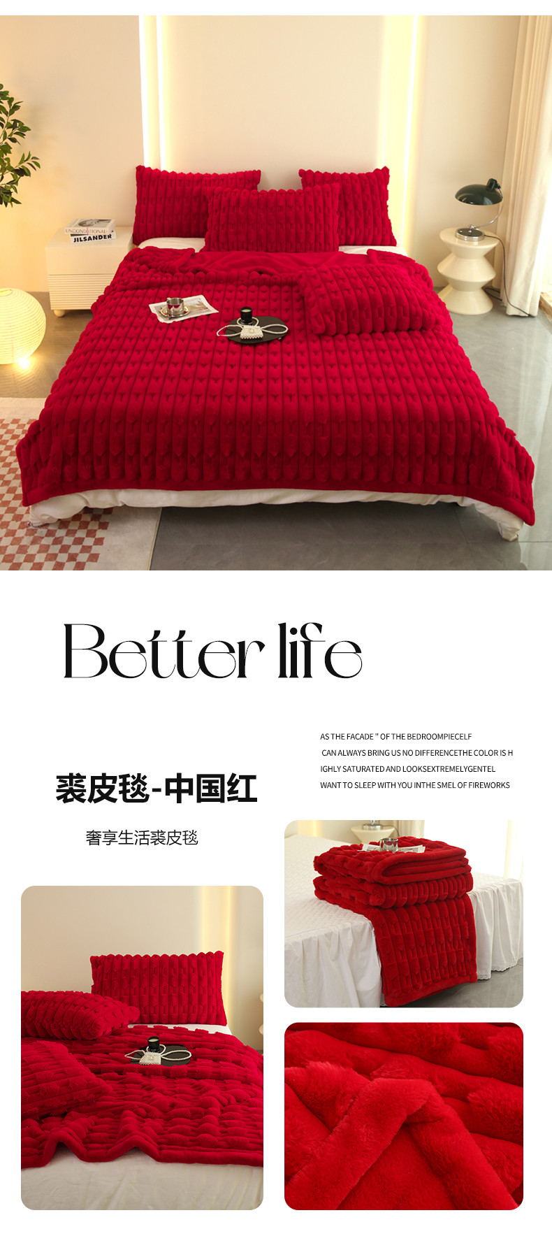 尚品绵羊毛毯 2025新款仿裘皮皮草貂皮毛毯轻奢高端婚庆加厚双层拉舍尔毛毯 中国红,中国红