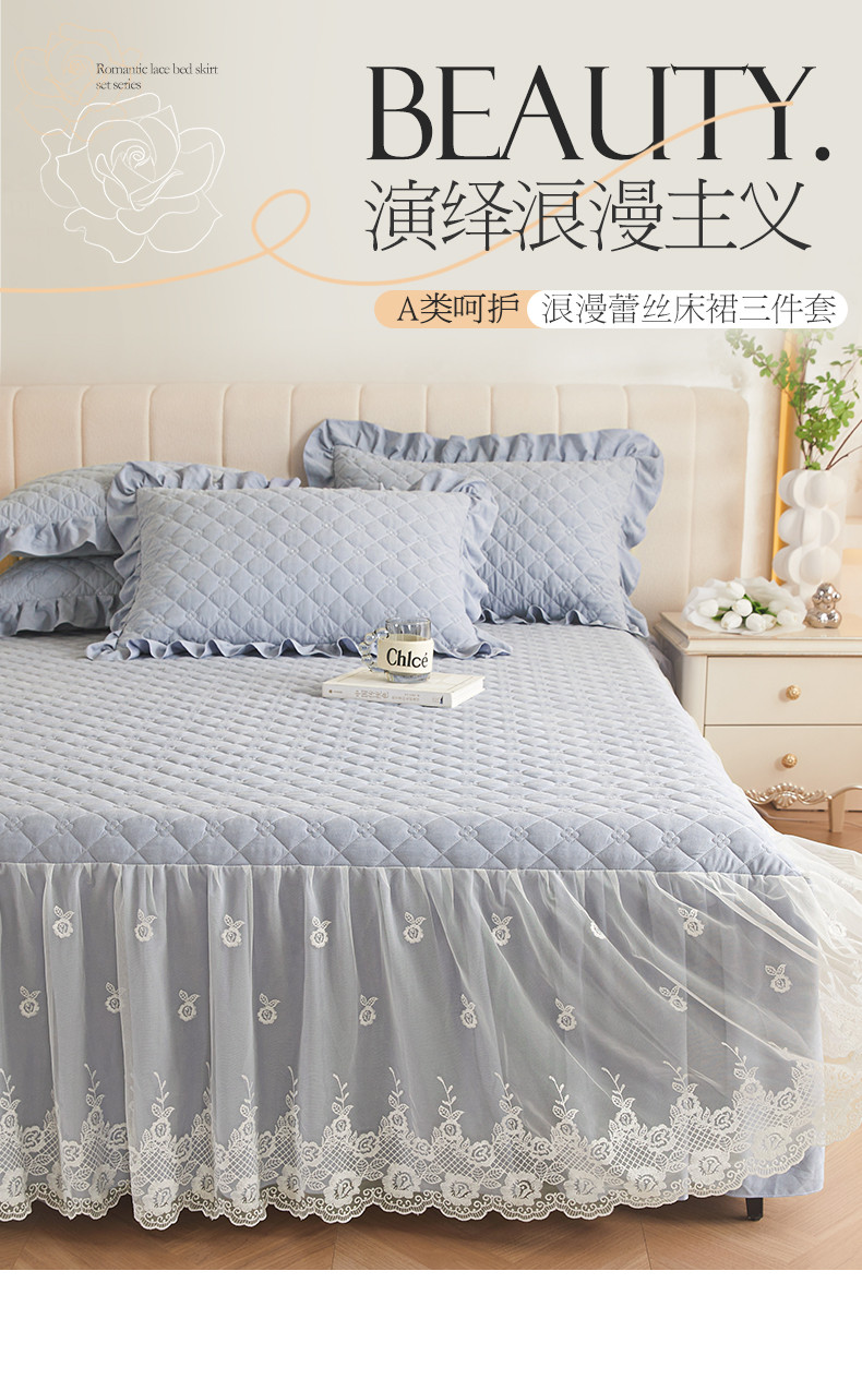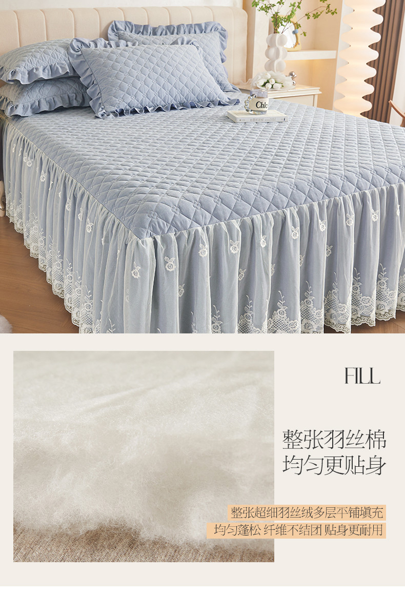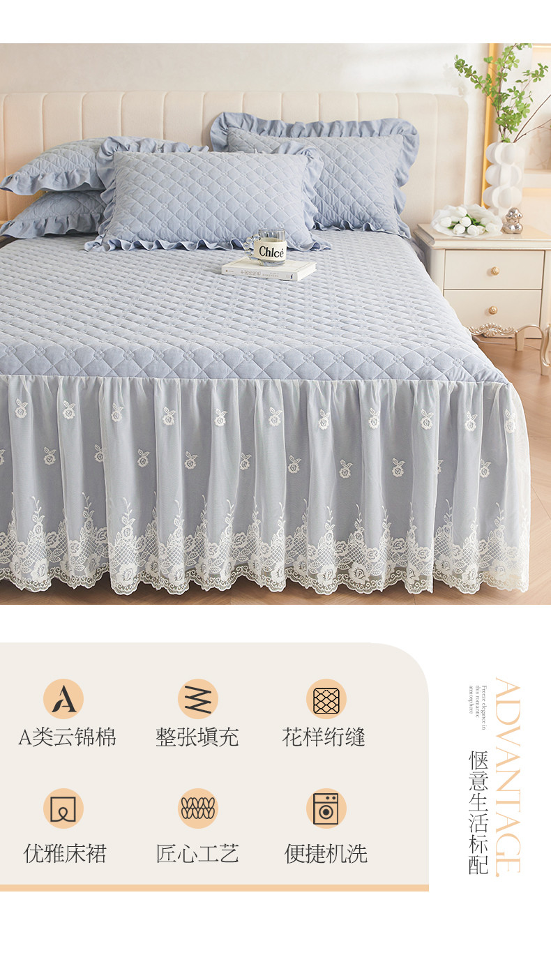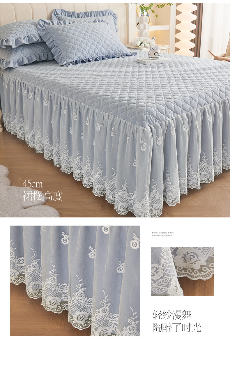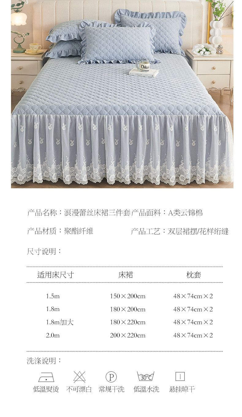 当前位置: 91家纺网 > 商品网购 > 床品套件 > 三件套 > 情恒 2025新款蒙娜四季款A类云锦棉床裙三件套 云雾兰