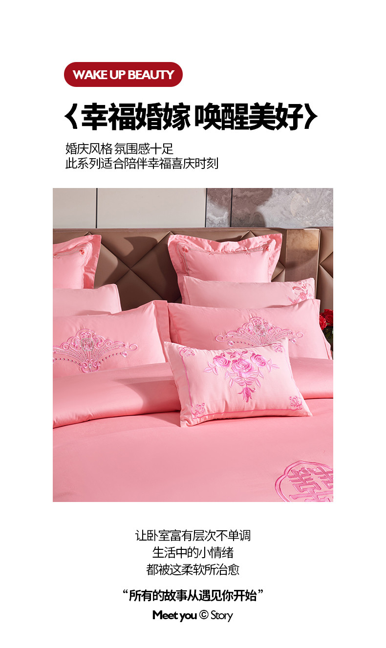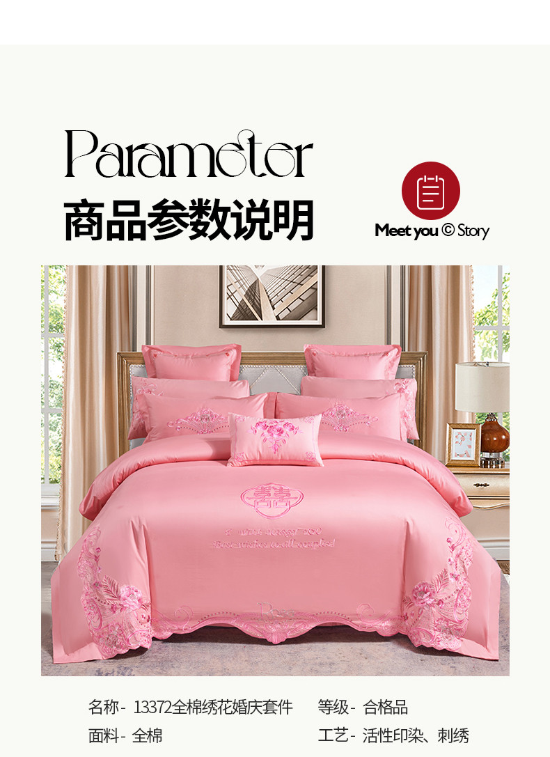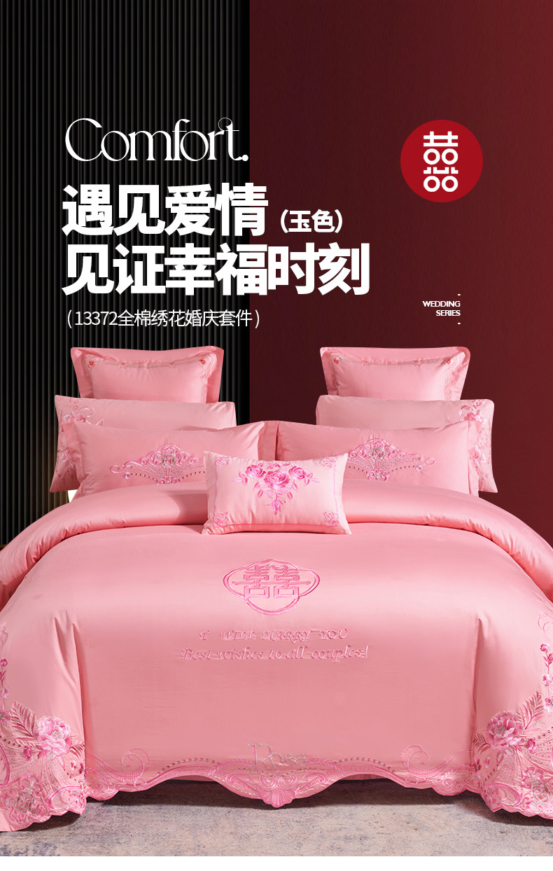 当前位置: 91家纺网 > 商品网购 > 床品套件 > 多件套 > 多件套 > 千禧 2023新款13372全棉跑量绣花婚庆套件多件套遇见爱情(玉色)