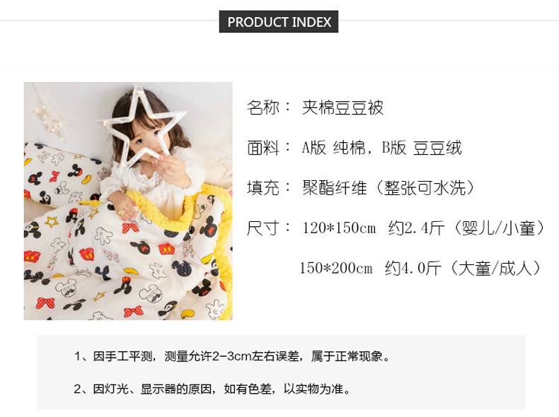 商品名称:十九色 2024新款儿童全棉豆豆被春秋被冬被婴幼儿安抚毯被子 米奇