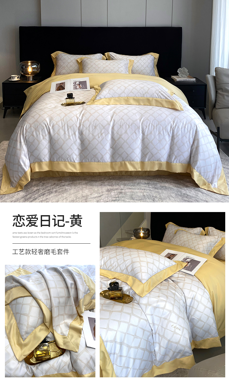 (总)优悦生活馆 2025年新款工艺款冰丝浮雕拼接四件套,璀璨之恋-粉,璀璨之恋-红,璀璨之恋-香槟