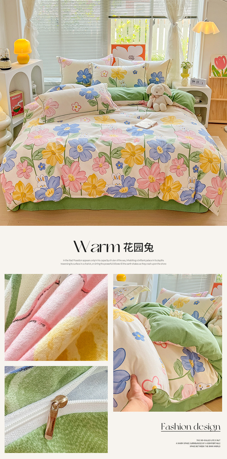 棉生活 2023新款铂金全棉磨毛系列(AB版)四件套 花园兔