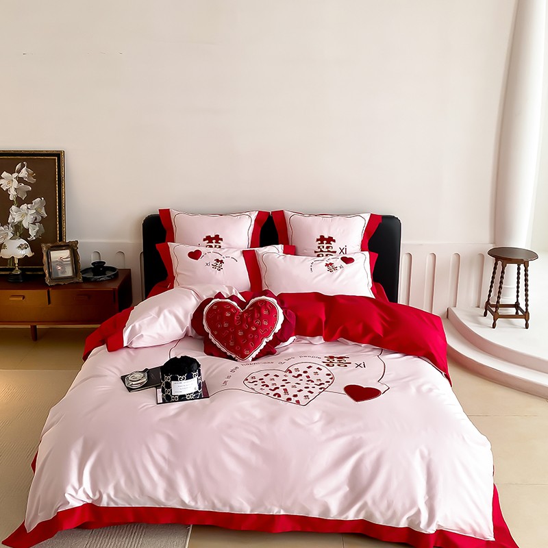 (总)用心 2026年新款双面长绒棉提花婚庆刺绣四件套,喜上喜,禧爱,吉祥