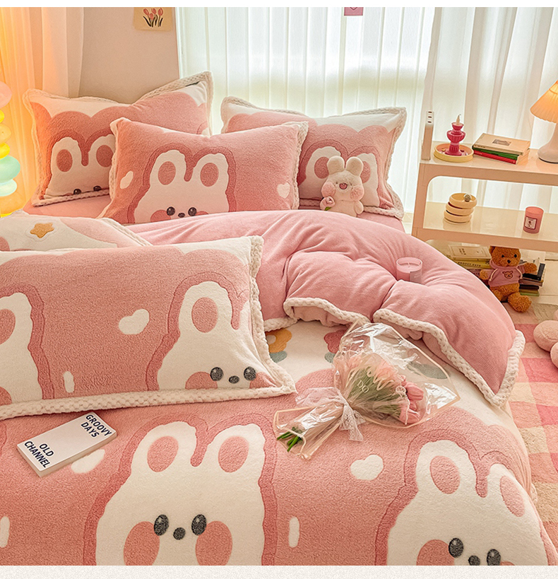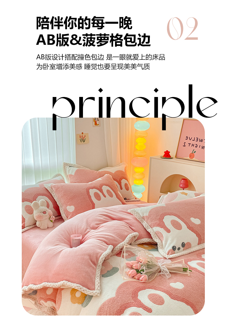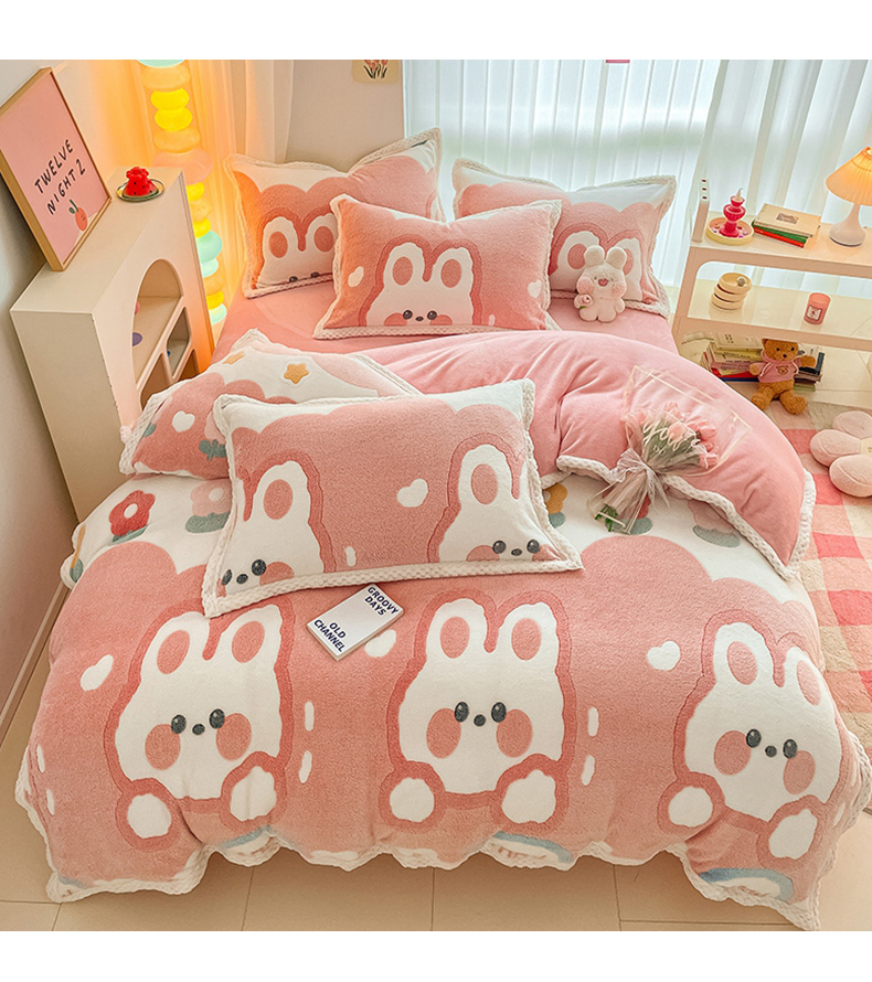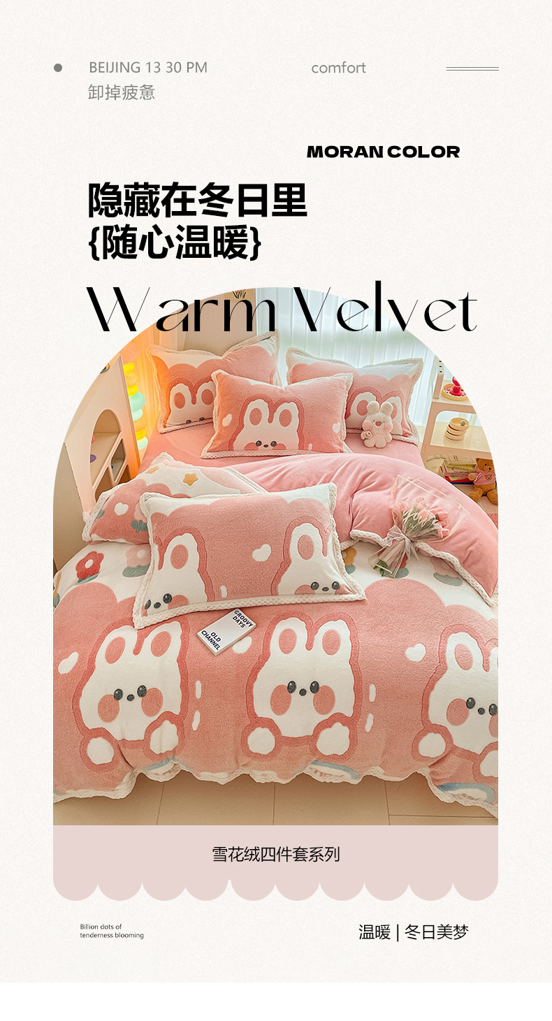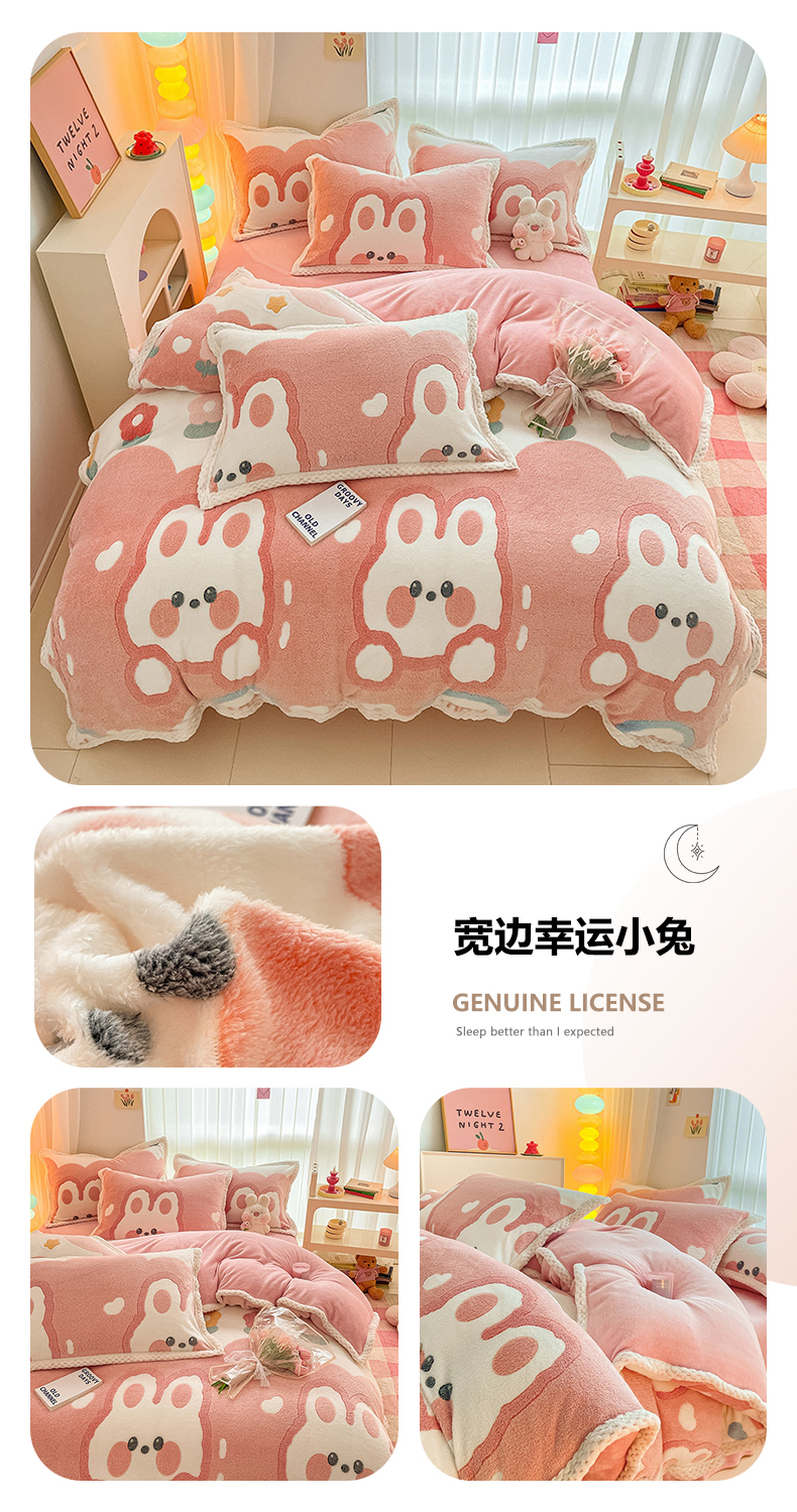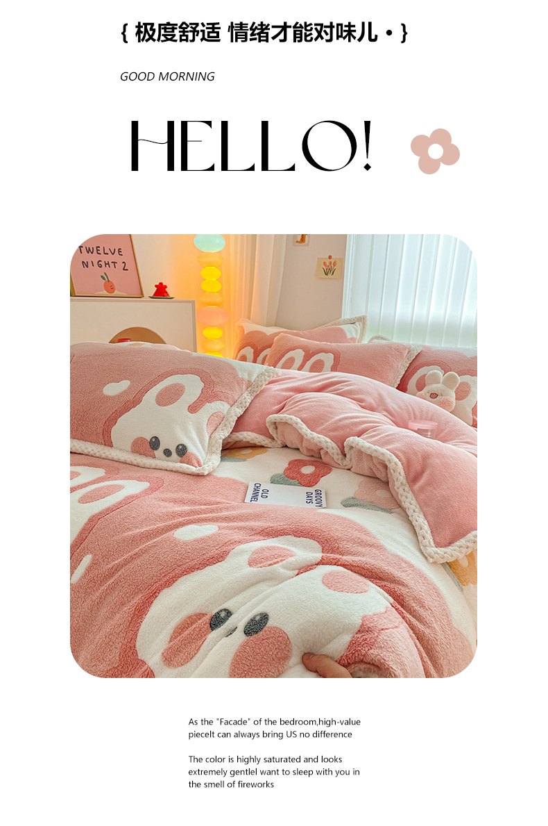 当前位置: 91家纺网 > 商品网购 > 床品套件 > 四件套 > 牛奶绒四件套 > 川悦生活 2023新款立体雪花绒宽边四件套 宽边幸运小兔