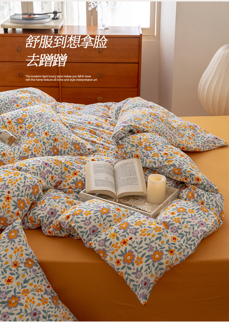 当前位置: 91家纺网 > 商品网购 > 床品套件 > 四件套 > 全棉普通四件套 > 华超针织 2023新款天竺棉印花四件套 花语