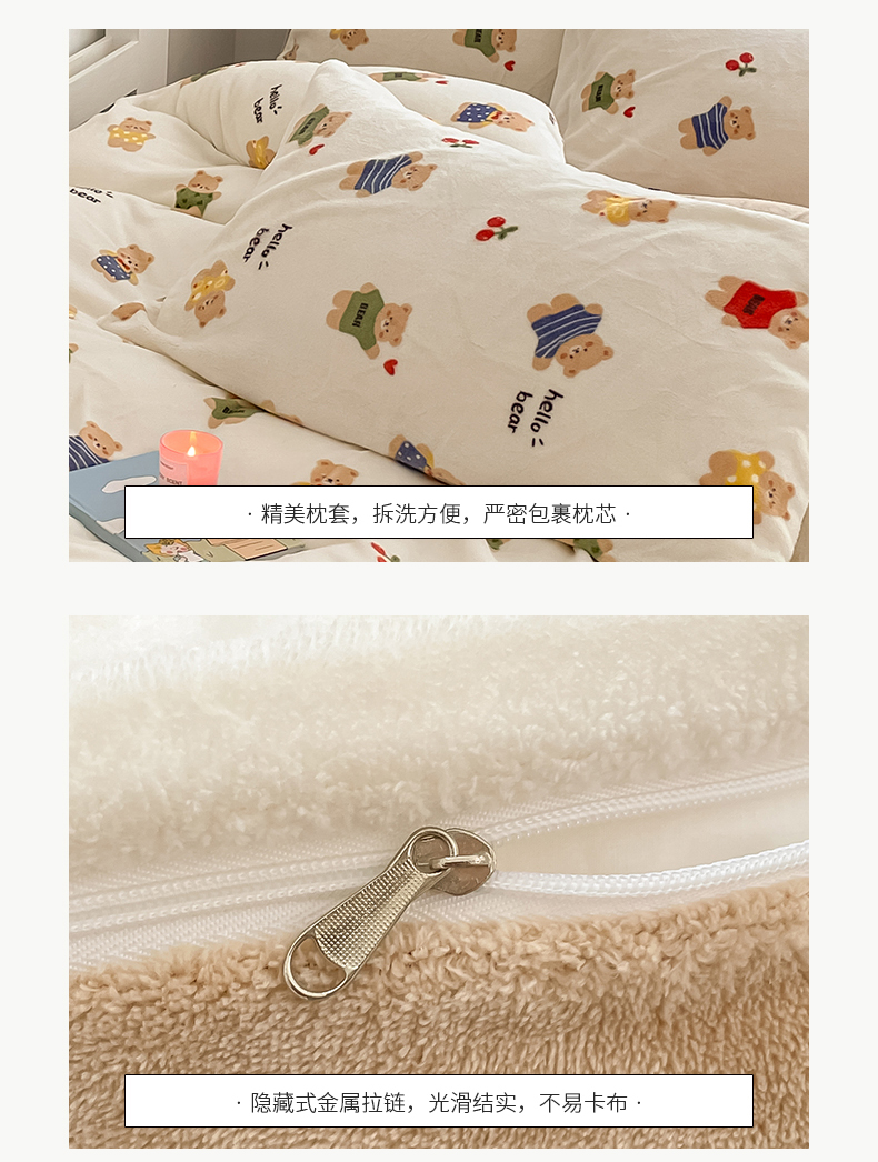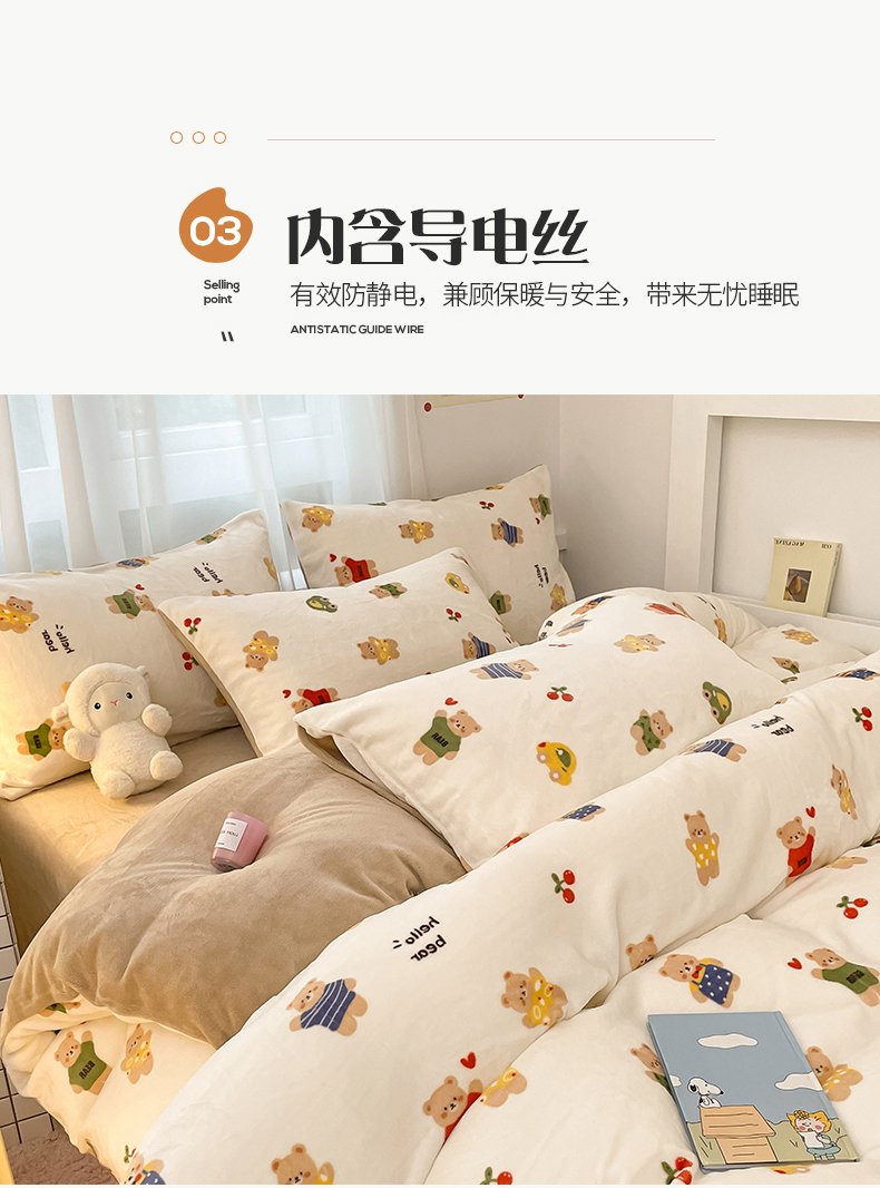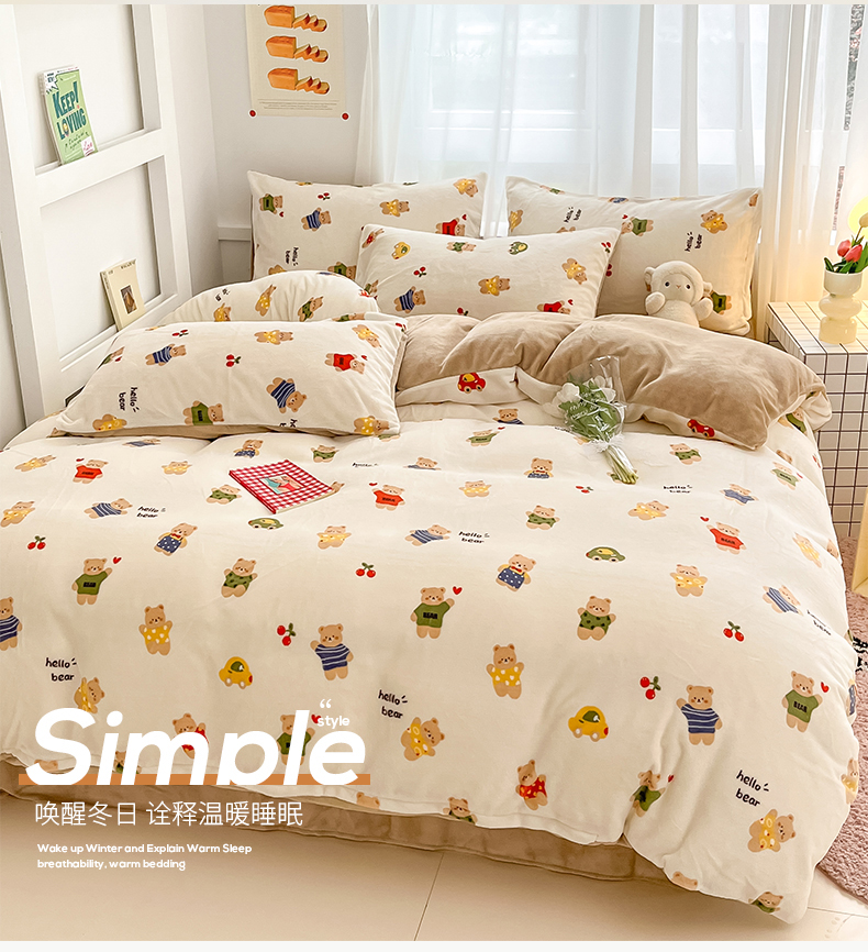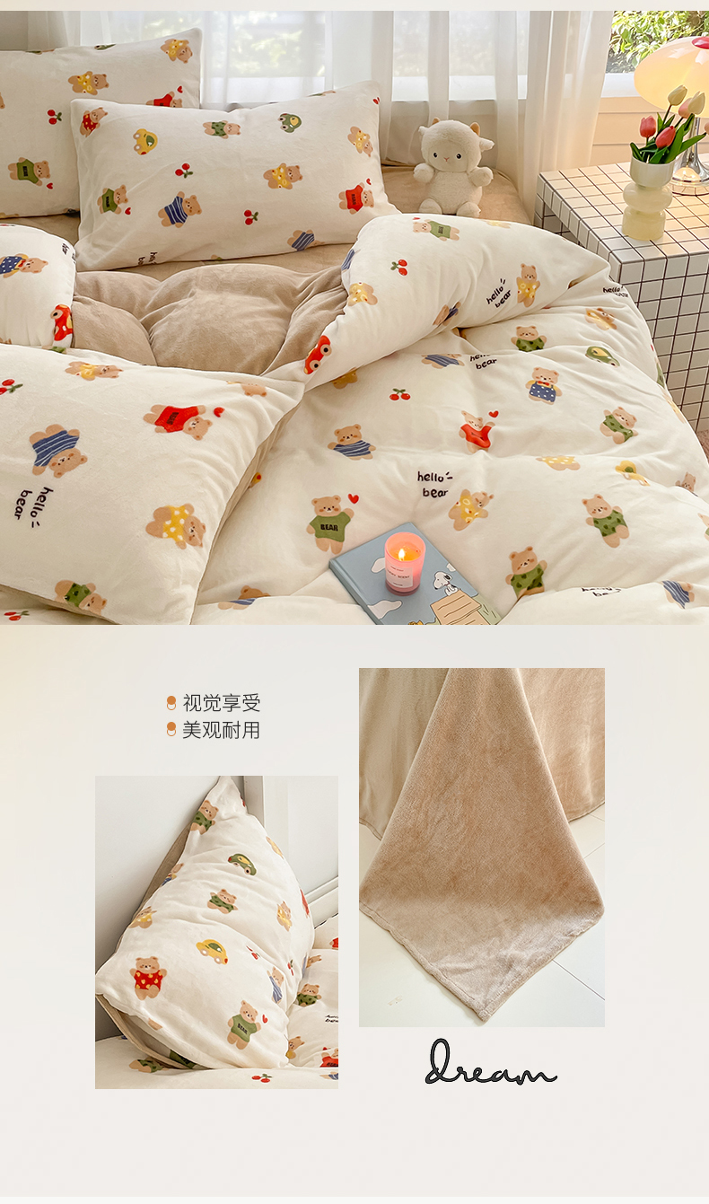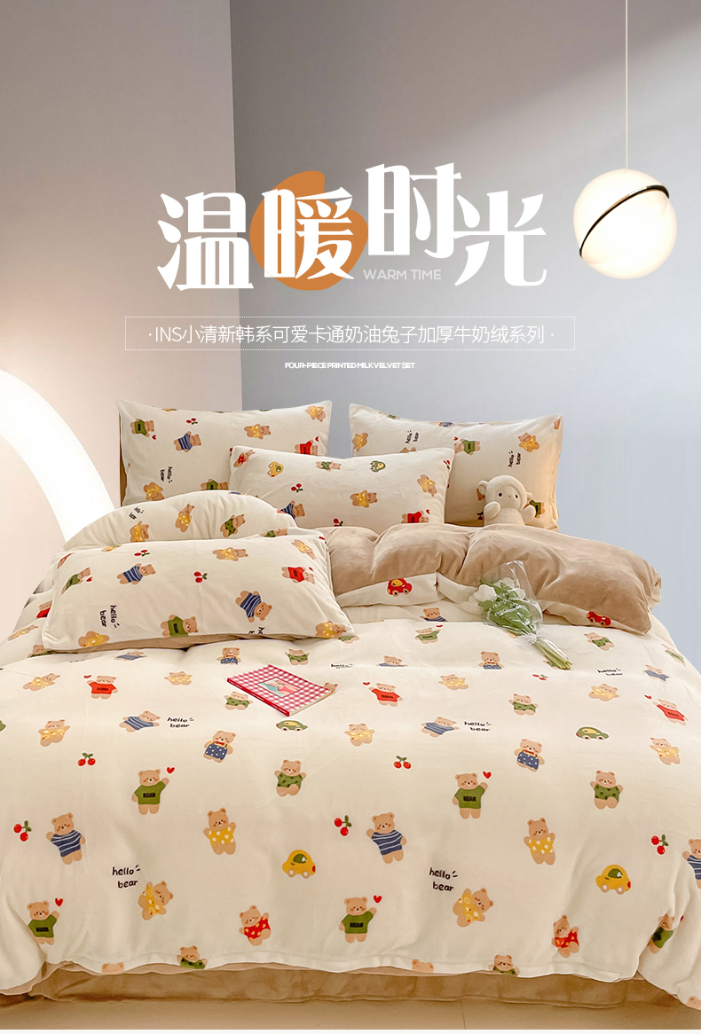 桃子 2023新款ins小清新韩系可爱卡通奶油兔子加厚牛奶绒系列四件套详情第三批 绒-七彩熊