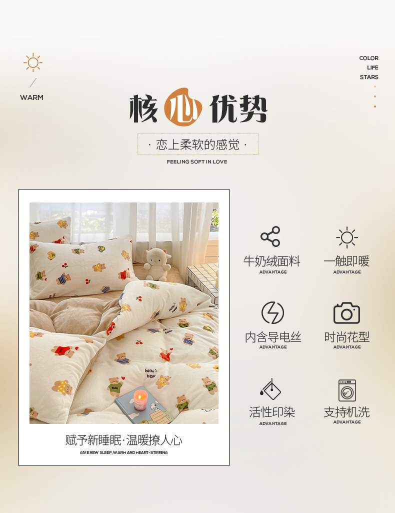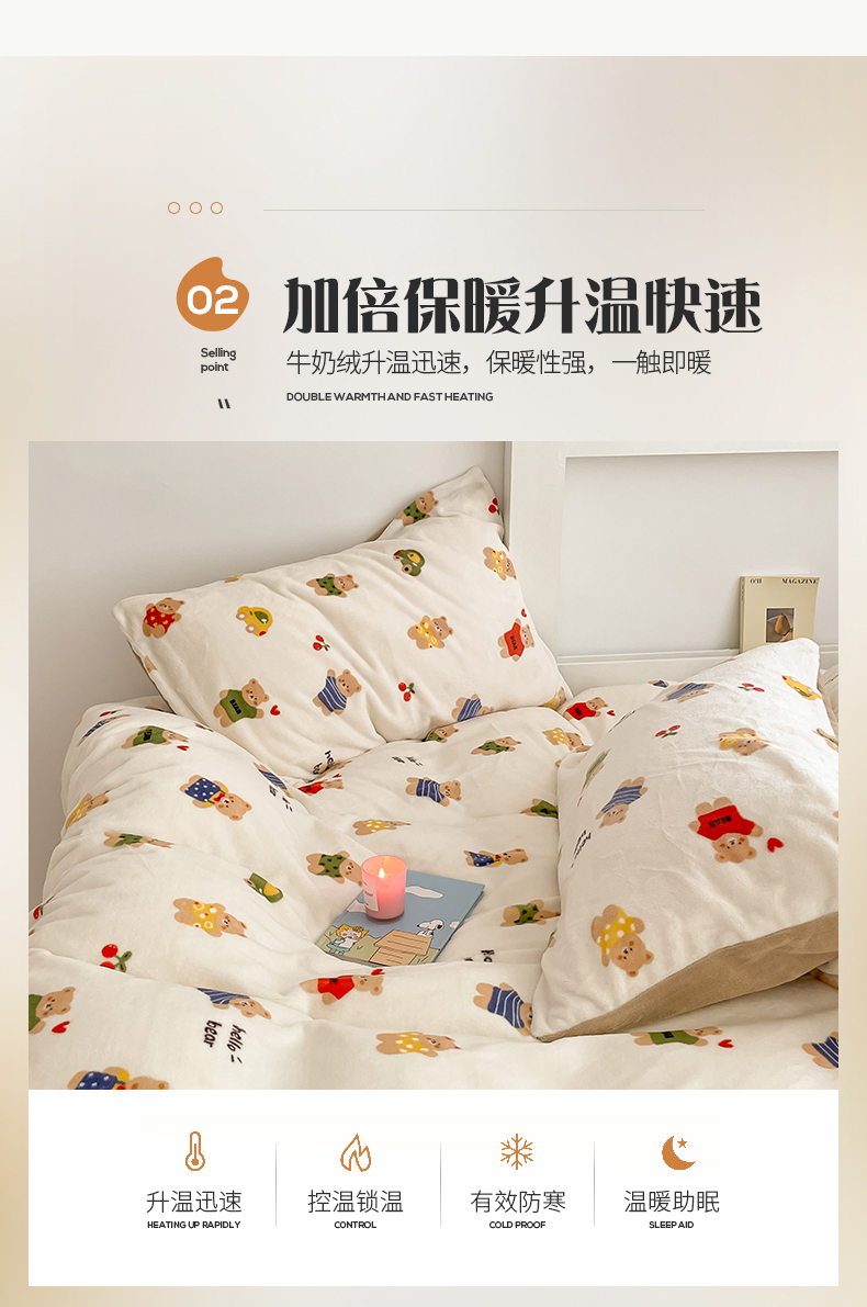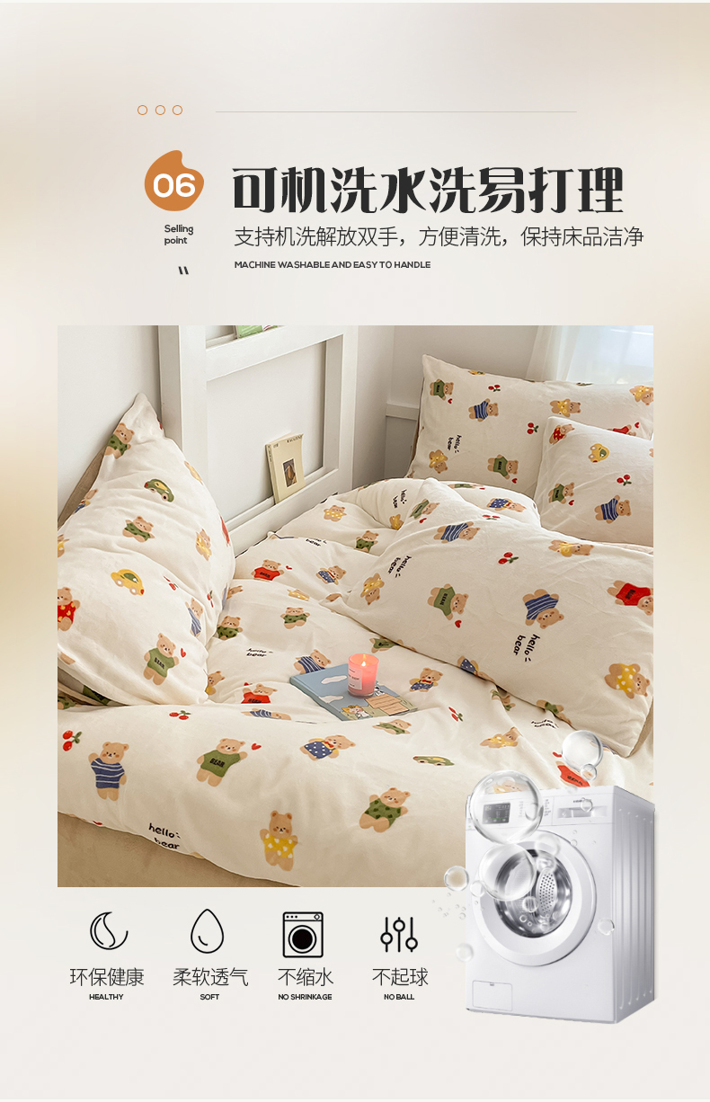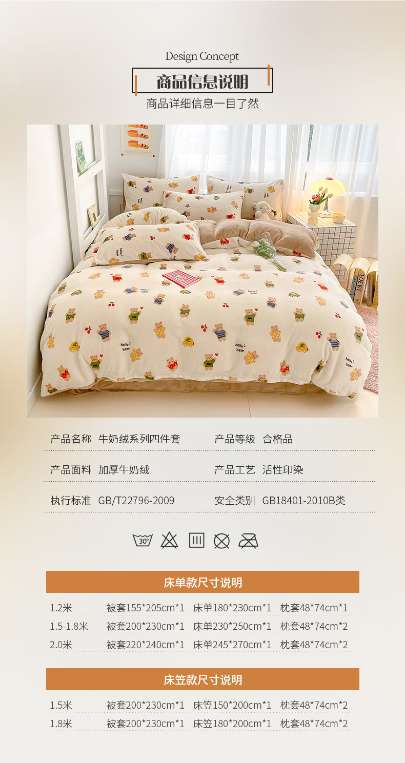 桃子 2023新款ins小清新韩系可爱卡通奶油兔子加厚牛奶绒系列四件套详情第三批 绒-七彩熊
