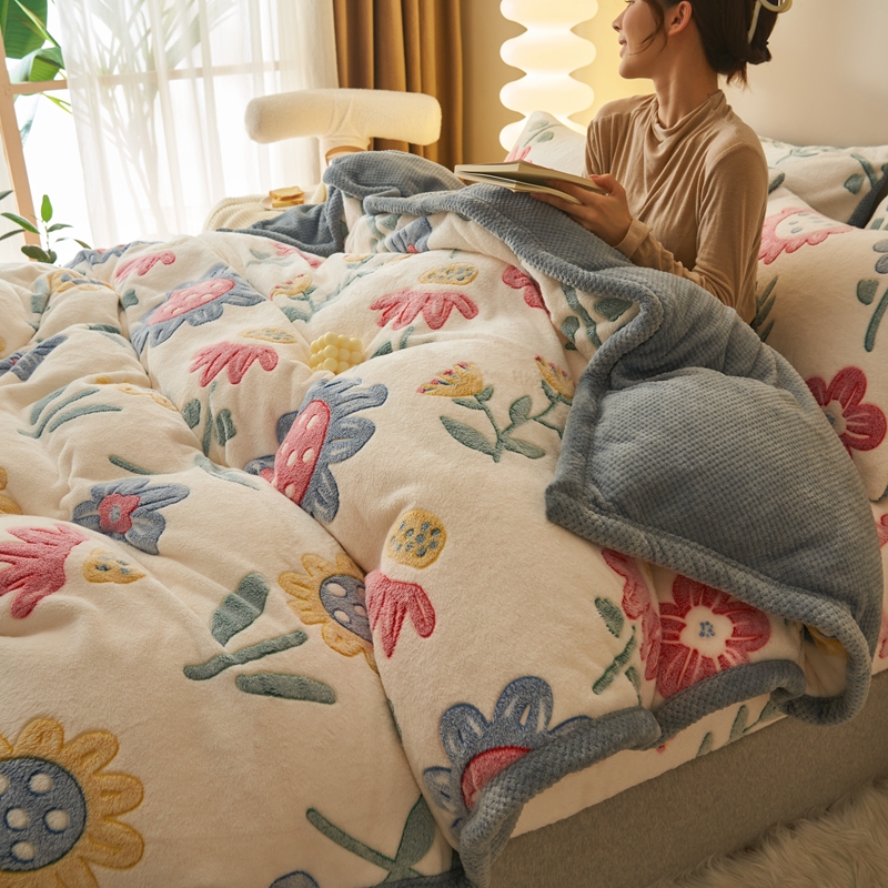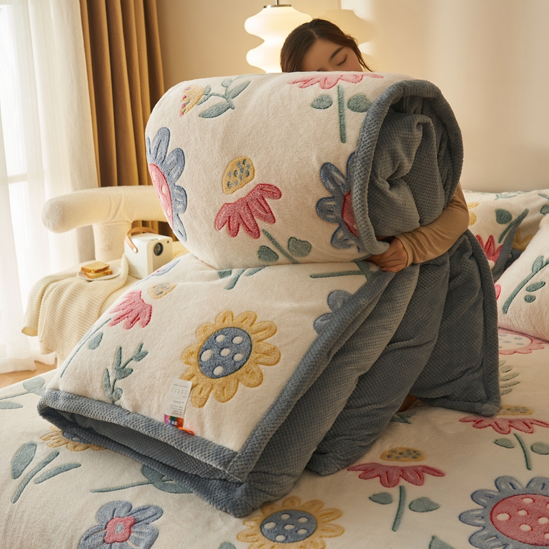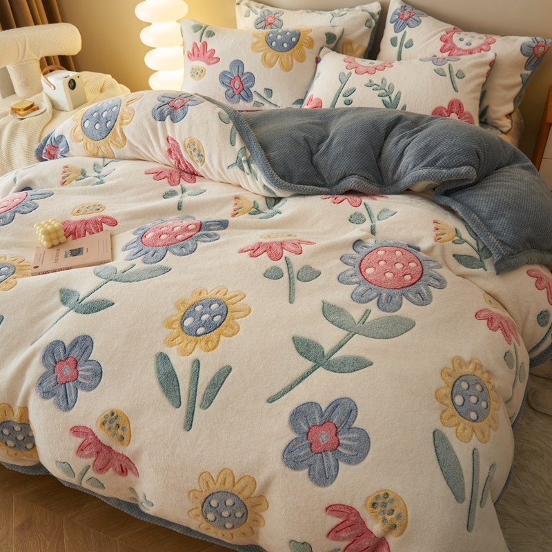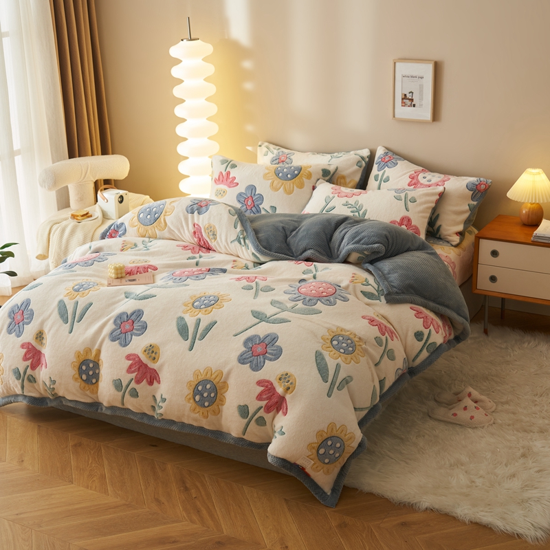 • 91家纺网 家纺一手货源 找家纺 21度C 2023新款雪花绒被套 向日葵