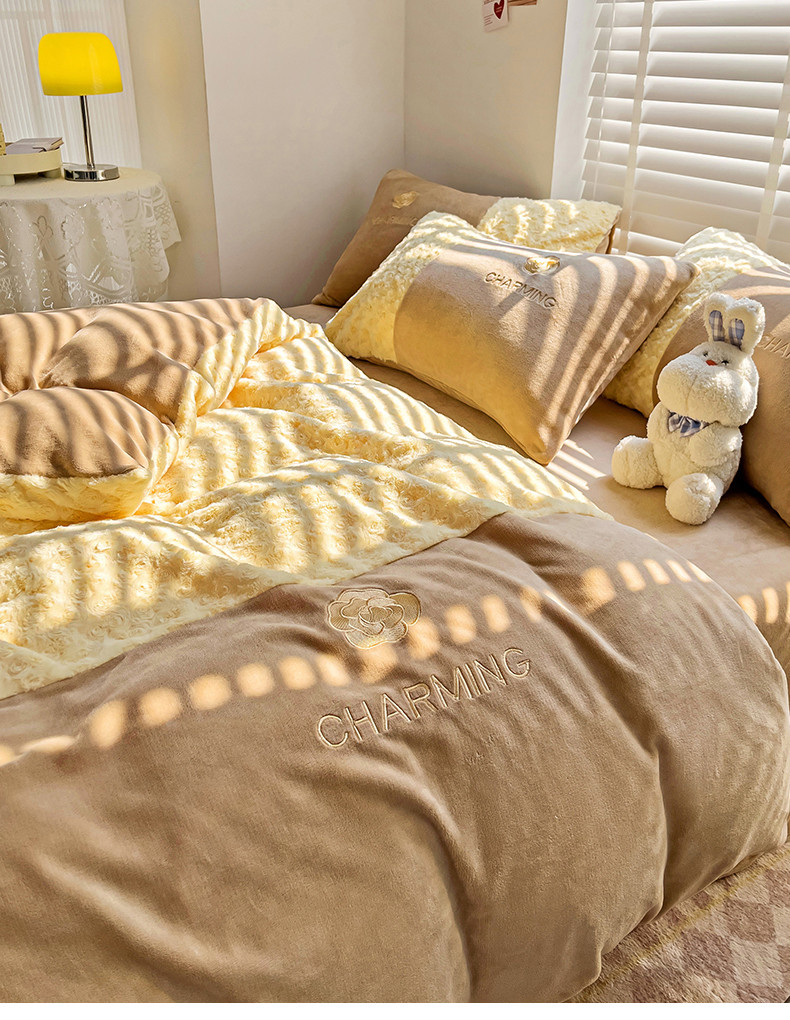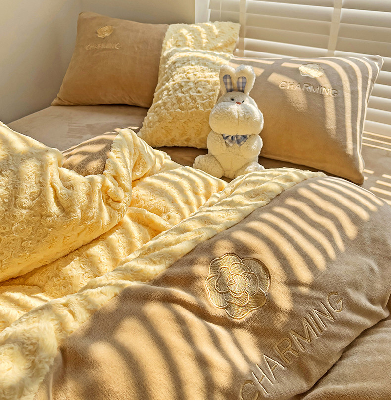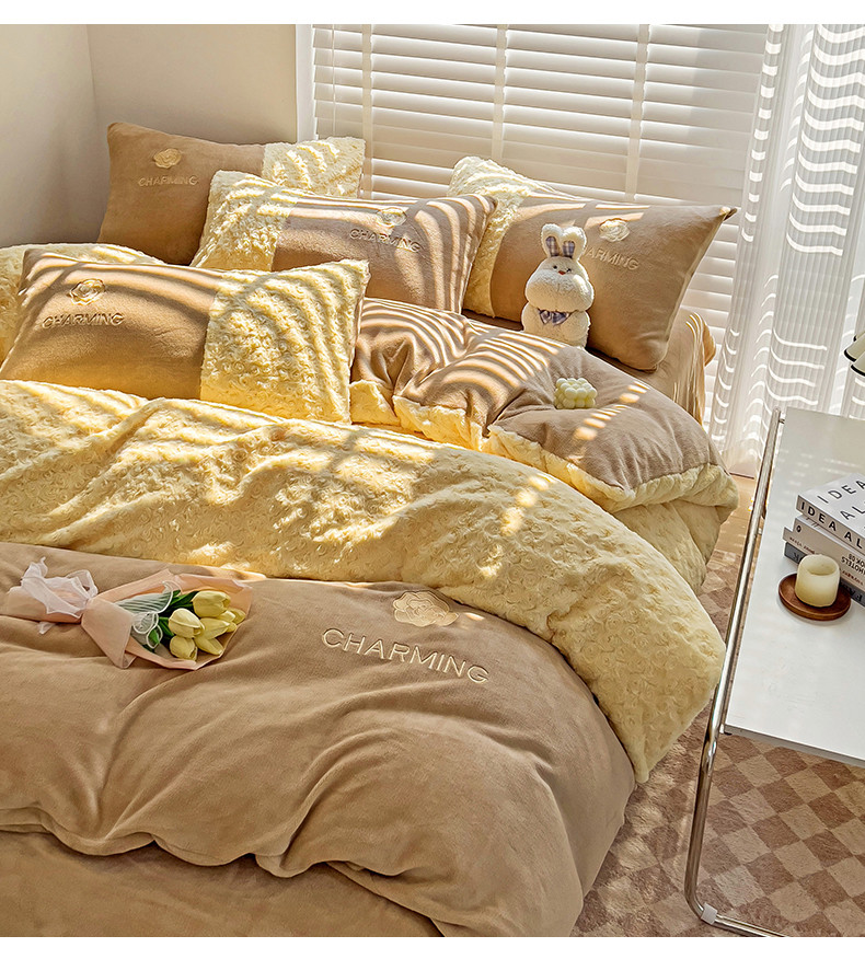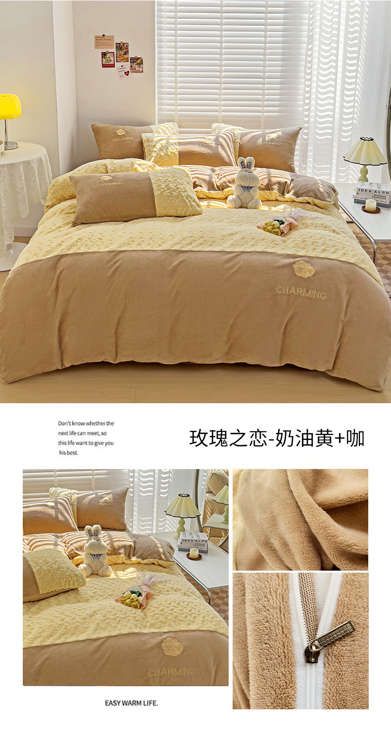 当前位置: 91家纺网 > 商品网购 > 床品套件 > 四件套 > 牛奶绒四件套 > 眷恋 2024新款兔毛牛奶绒四件套 玫瑰之恋-奶油黄+咖