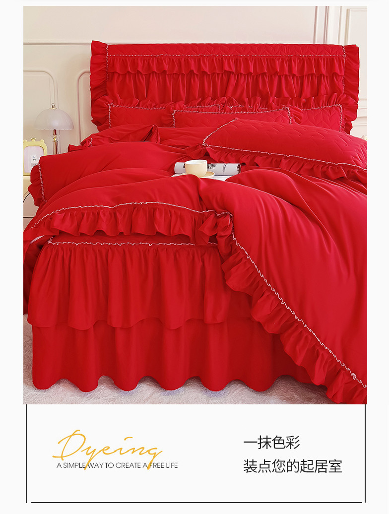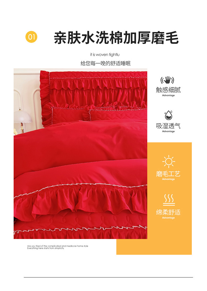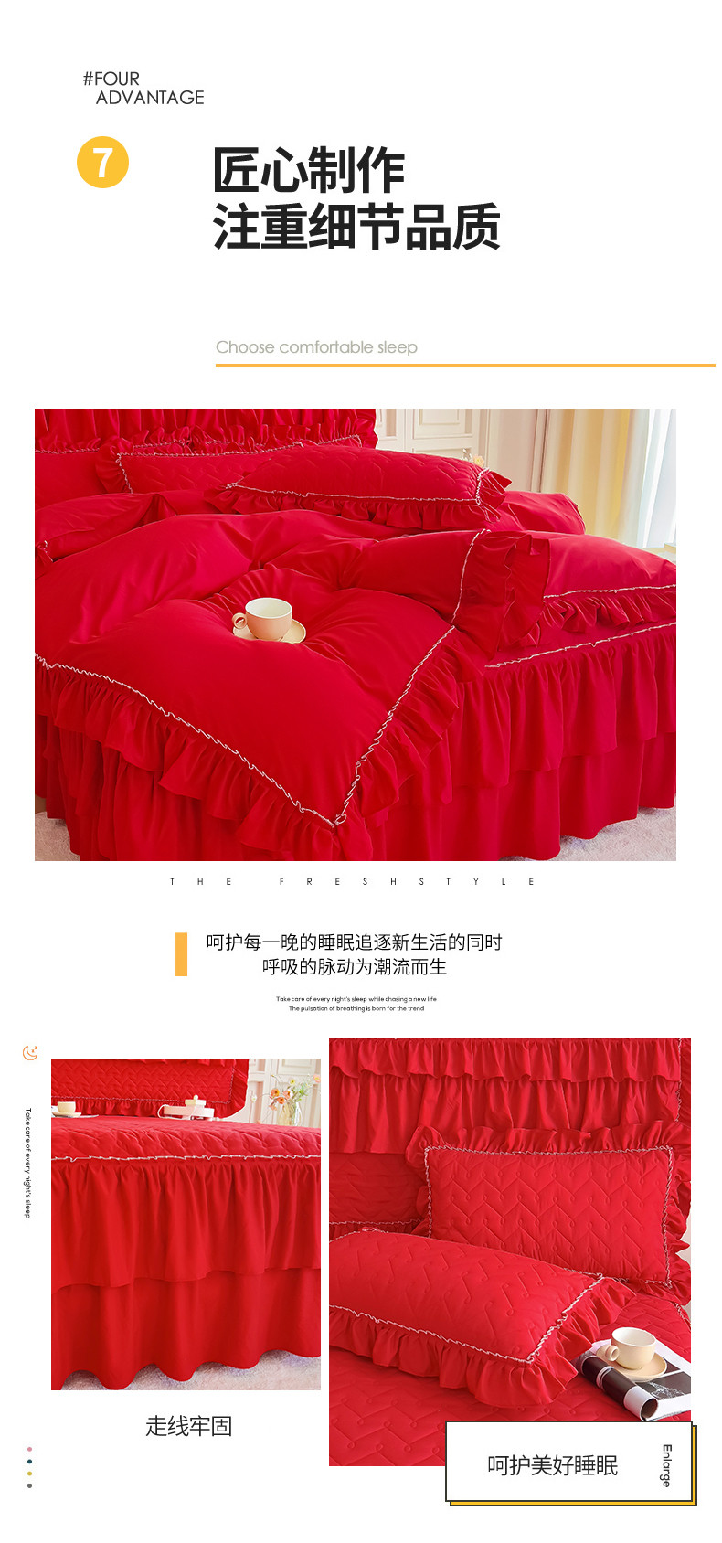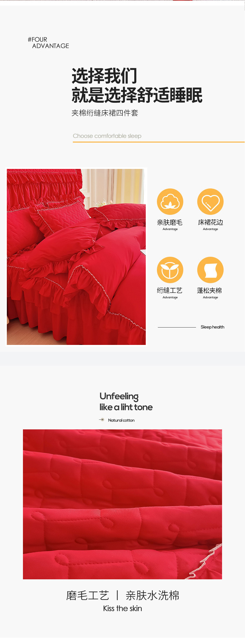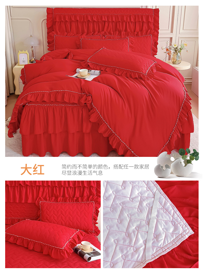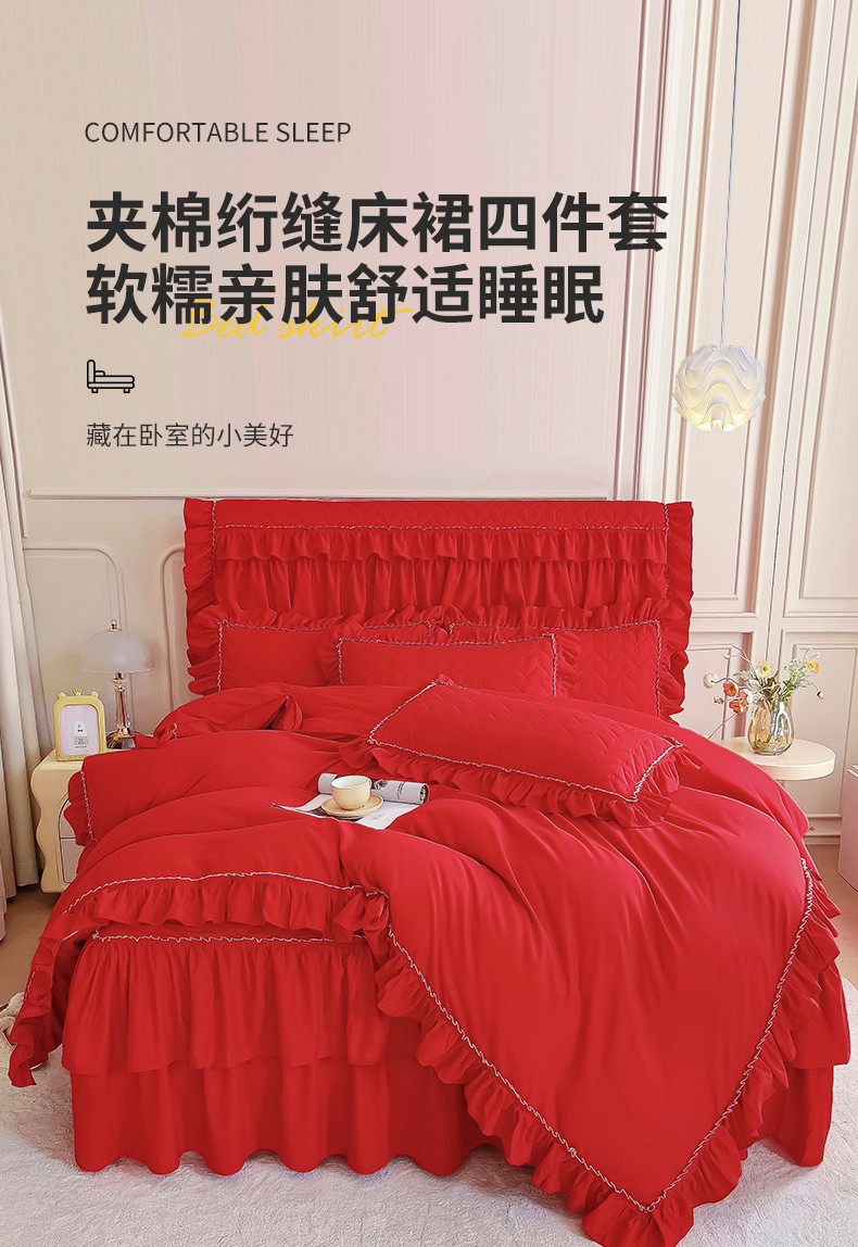 当前位置: 91家纺网 > 商品网购 > 床品套件 > 四件套 > 全棉普通四件套 > 十个点 2024新款水洗棉磨毛夹棉纤缝床裙套件星辰系列-四件套 大红