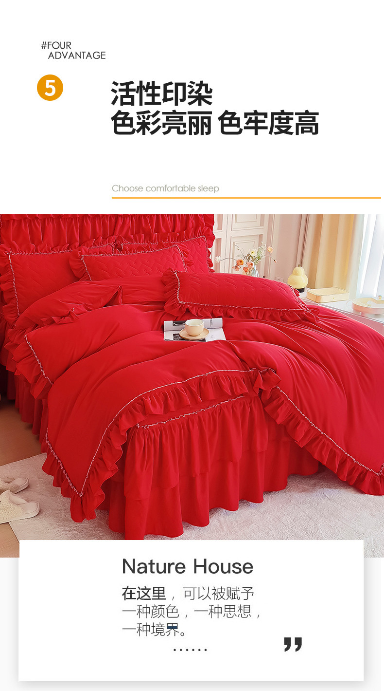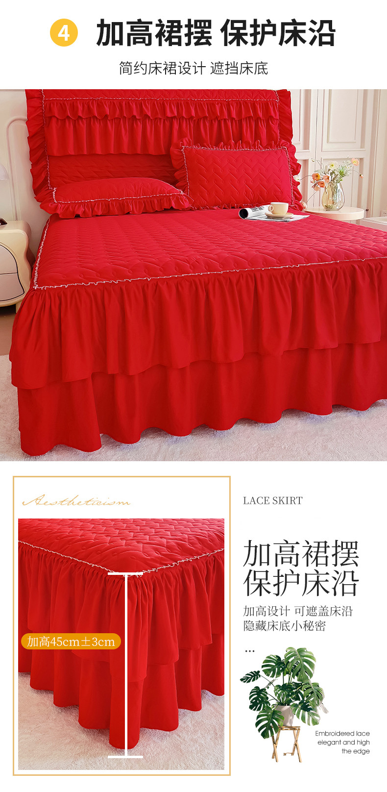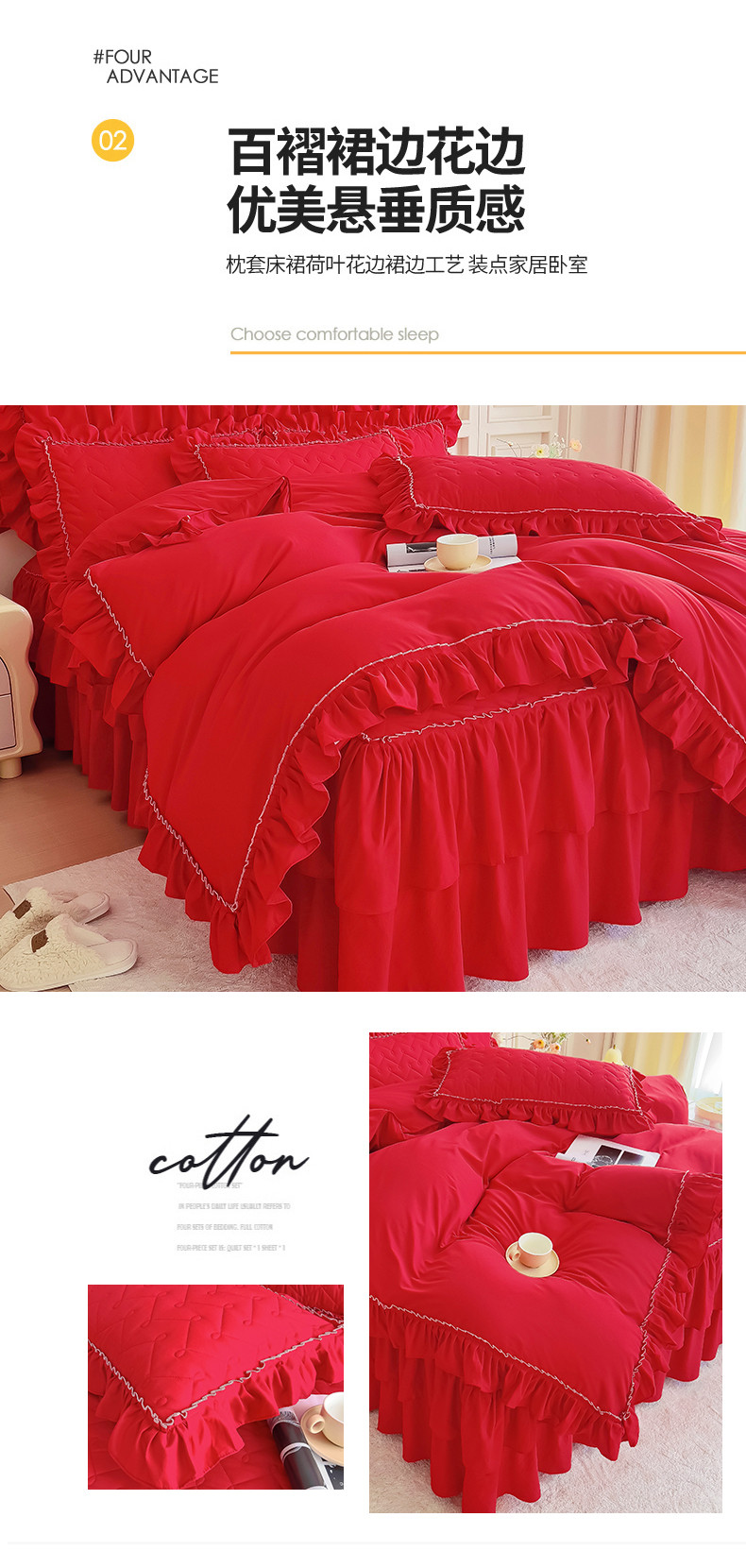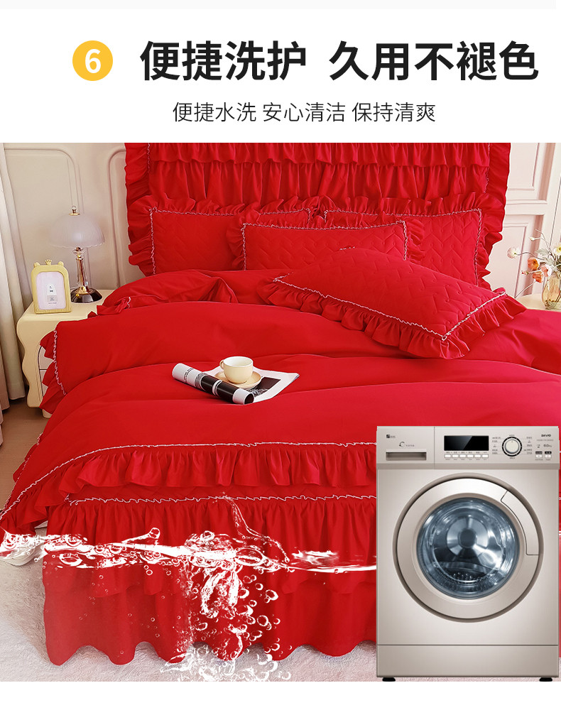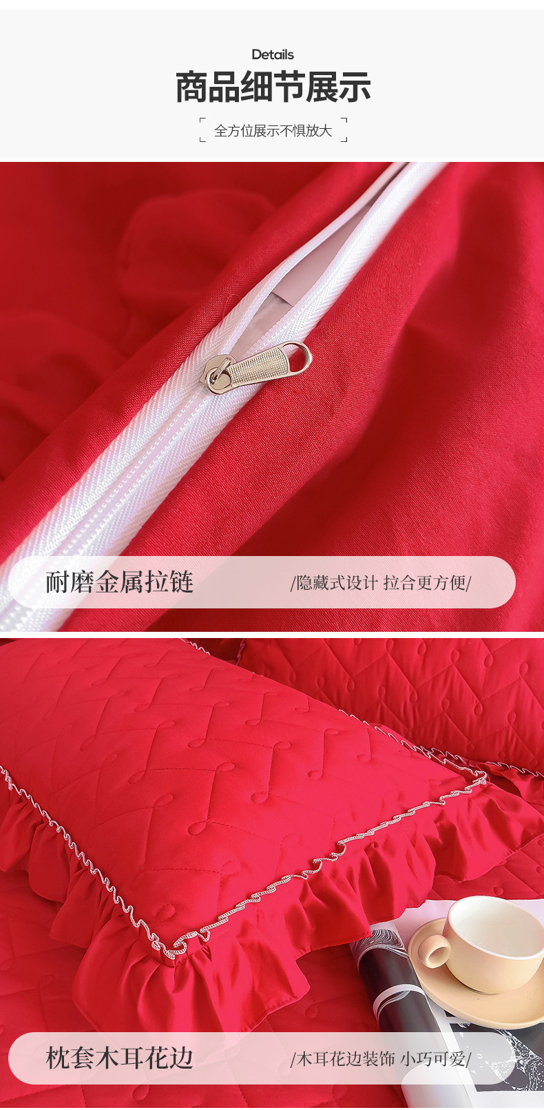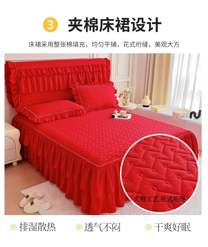 当前位置: 91家纺网 > 商品网购 > 床品套件 > 四件套 > 全棉普通四件套 > 十个点 2024新款水洗棉磨毛夹棉纤缝床裙套件星辰系列-四件套 大红