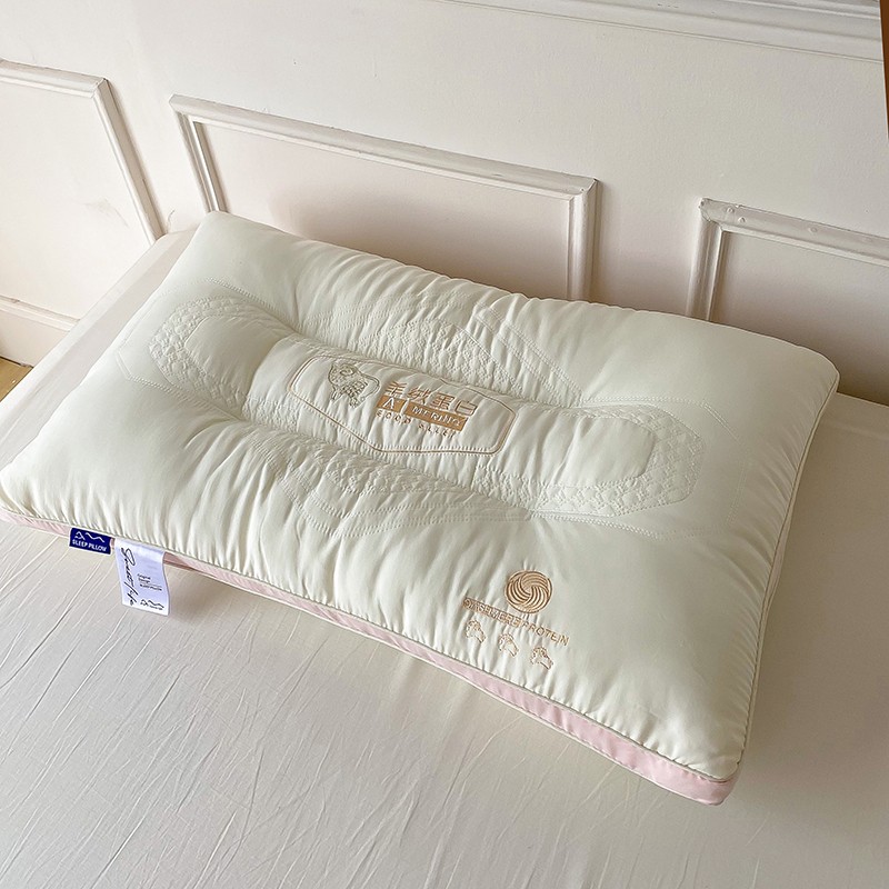 羊绒蛋白护颈枕芯枕头高端刺绣枕