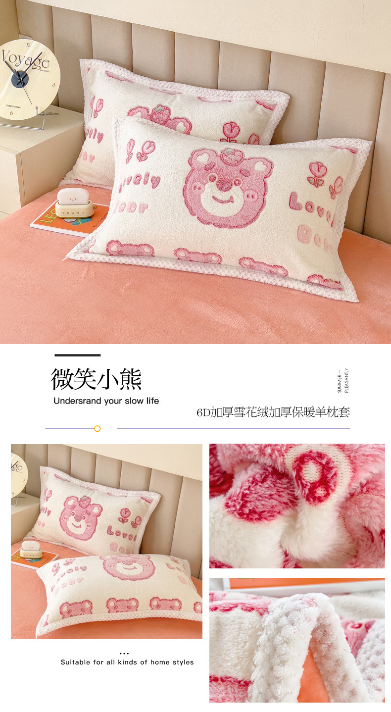 商品名称:2023新款立体6D雪花绒加厚保暖系列单枕套 48x74cm一对 微笑小熊