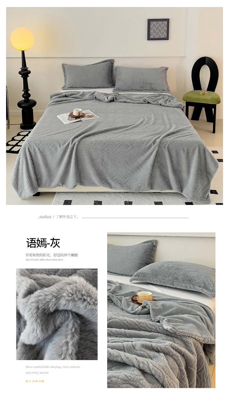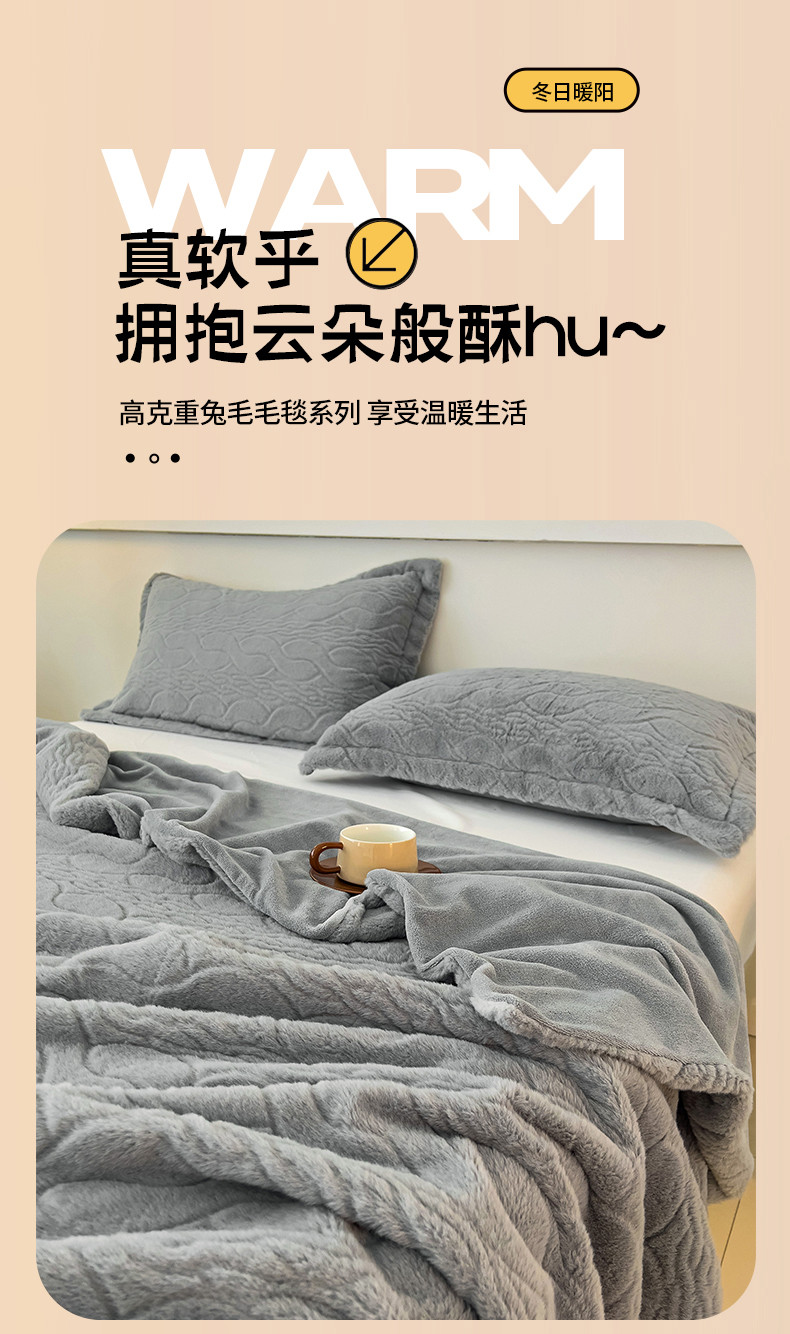 N先生 2023秋冬新款高克重兔毛毛毯-语嫣系列 语嫣-灰