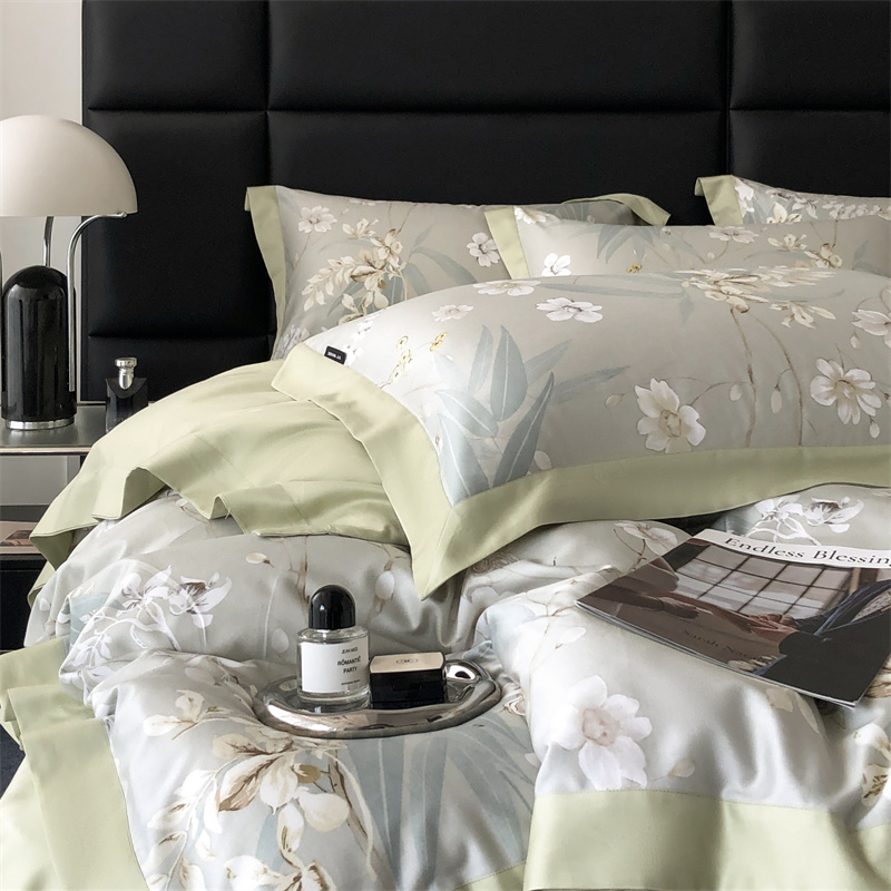 (总)时亿 2023新款100支长绒棉四件套苍兰之约,苍兰之约-橙,苍兰之约-绿