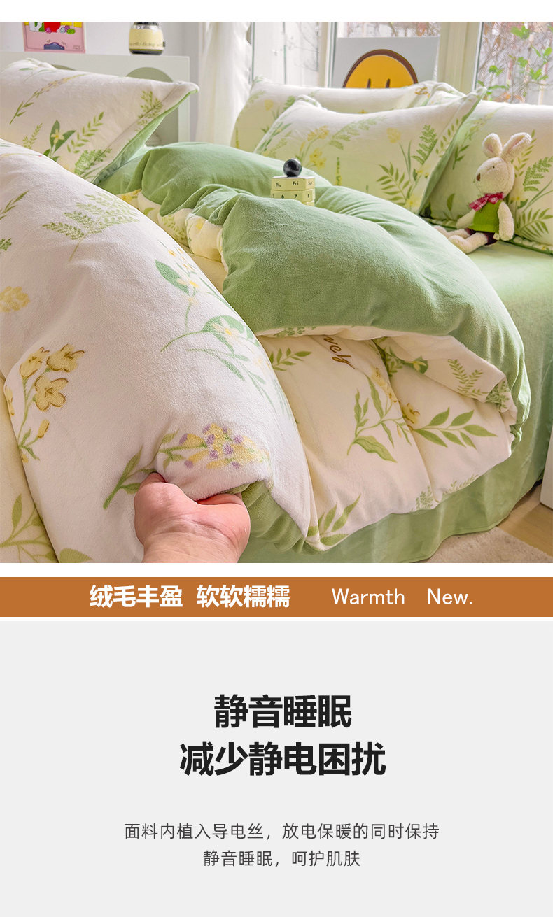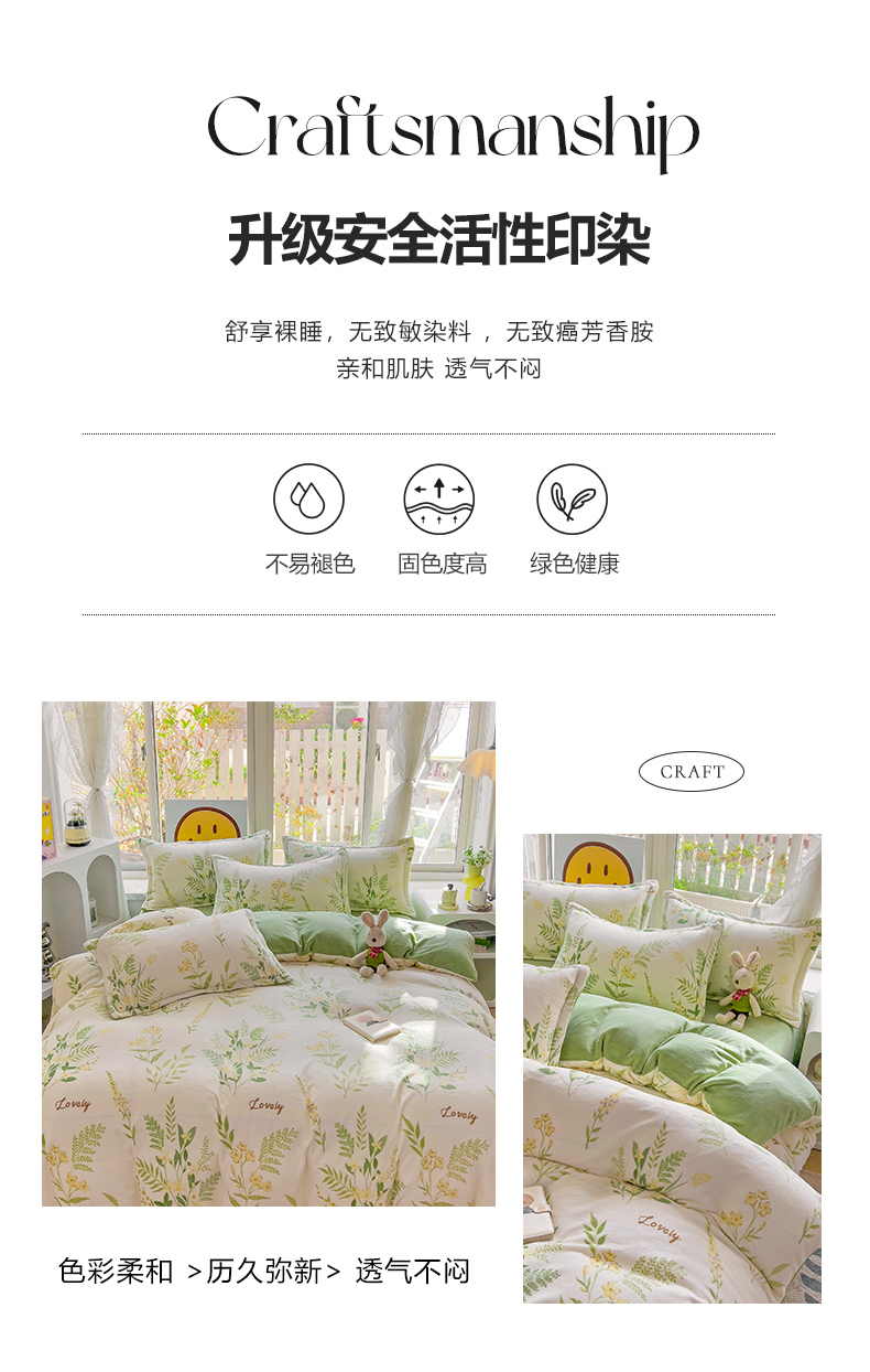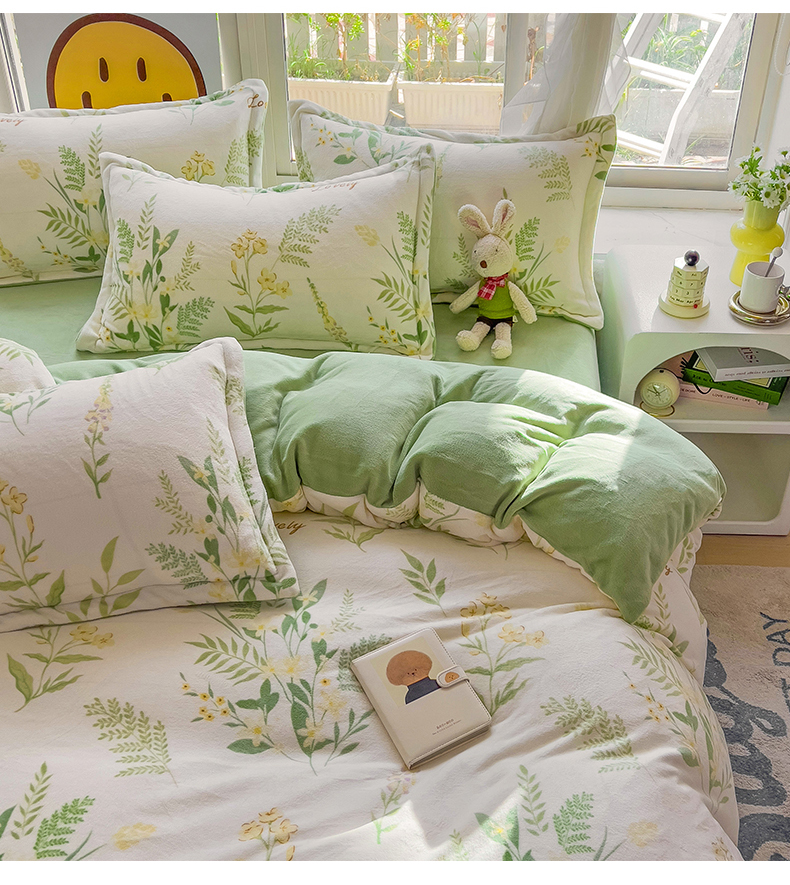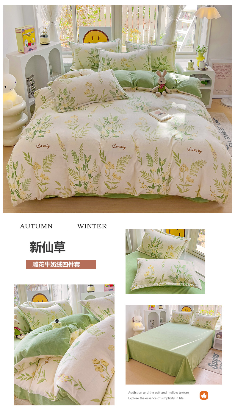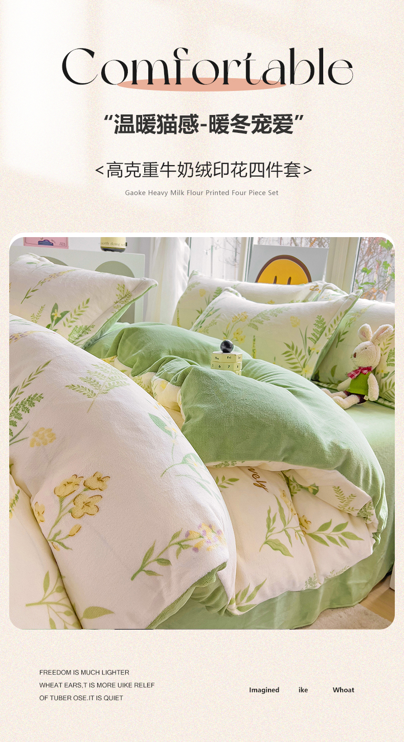 当前位置: 91家纺网 > 商品网购 > 床品套件 > 四件套 > 牛奶绒四件套 > 包小包 2023直播爆款220g高克重印花小清新牛奶绒四件套 新仙草
