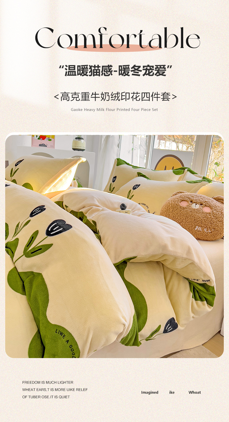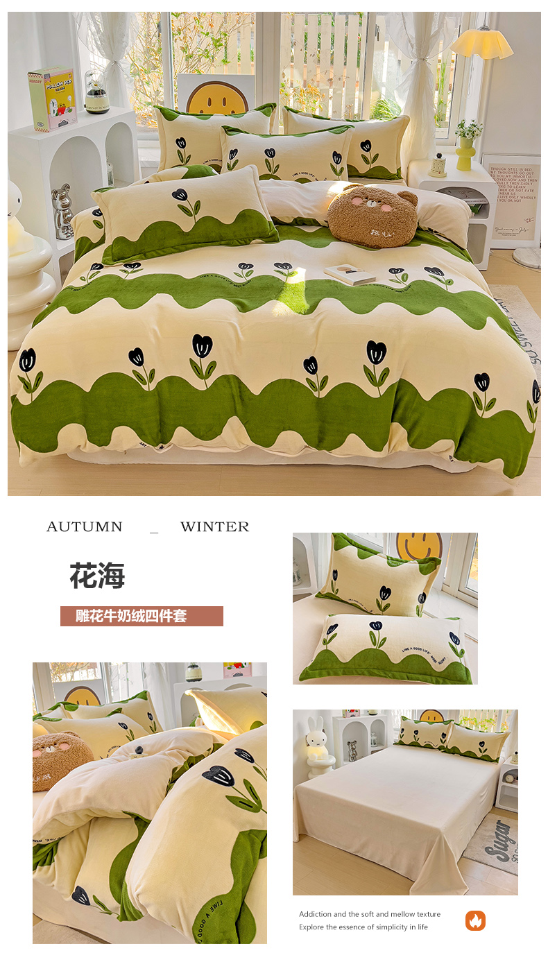 当前位置: 91家纺网 > 商品网购 > 床品套件 > 四件套 > 牛奶绒四件套 > 包小包 2023直播爆款220g高克重印花小清新牛奶绒四件套 花海