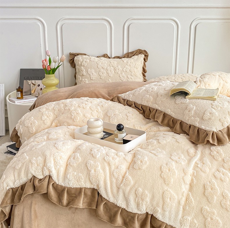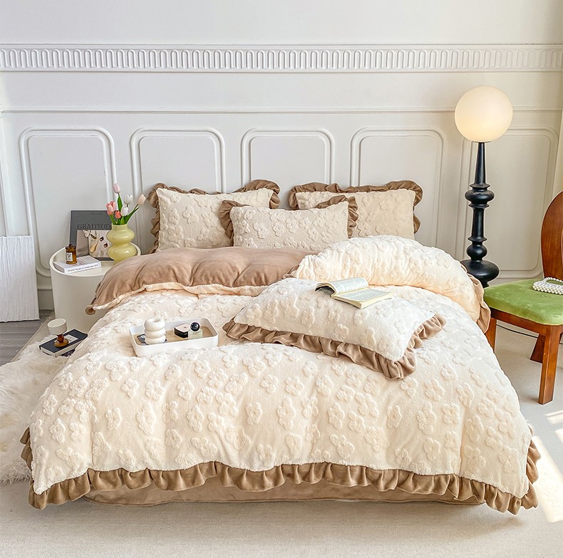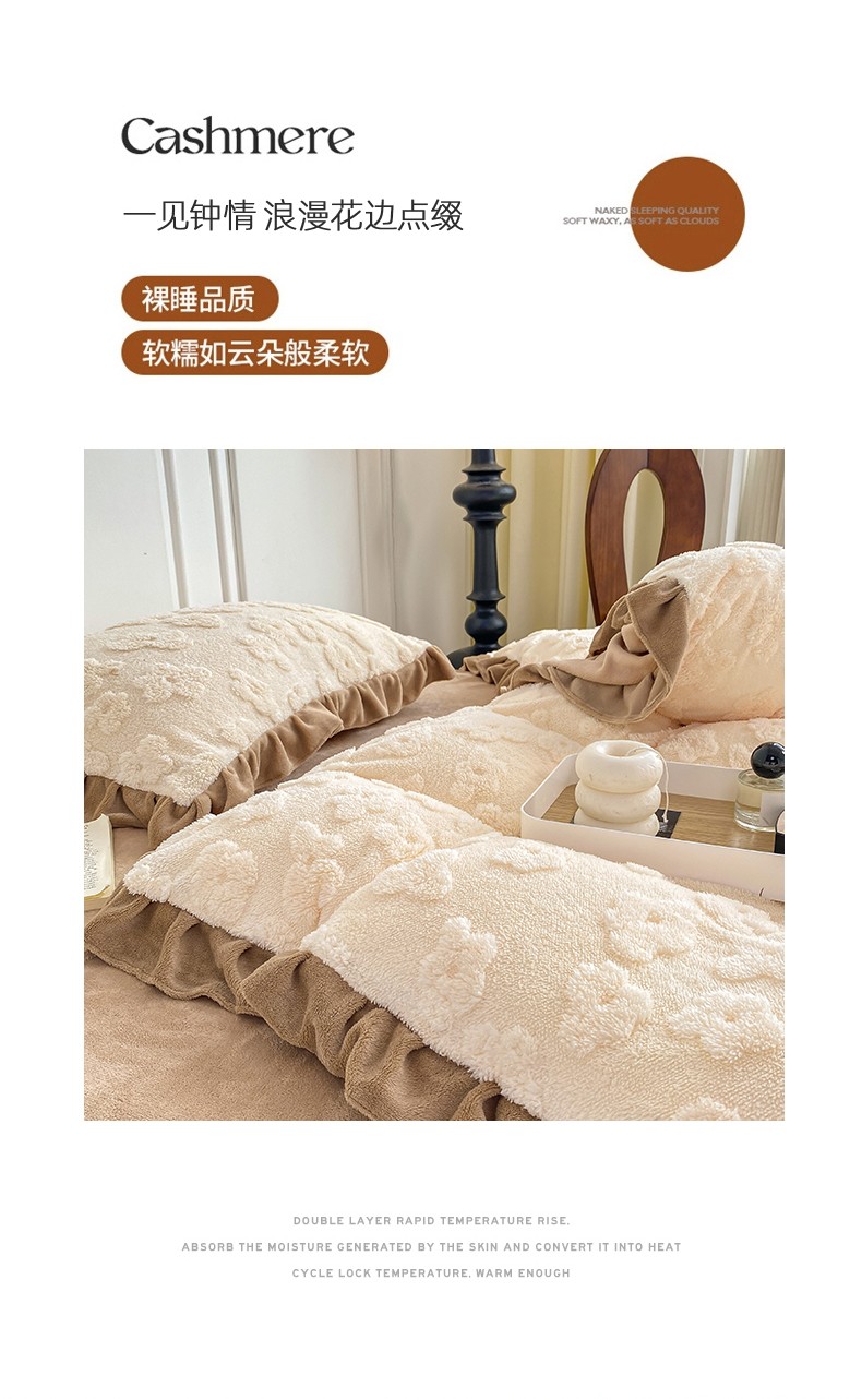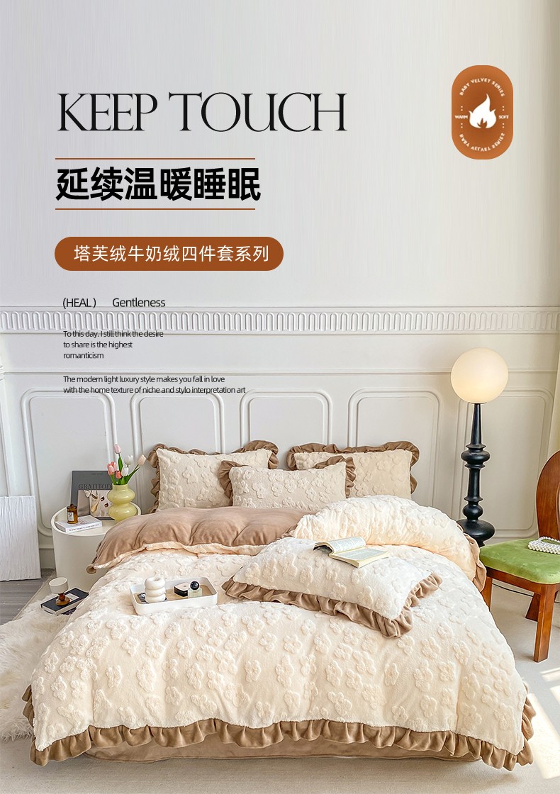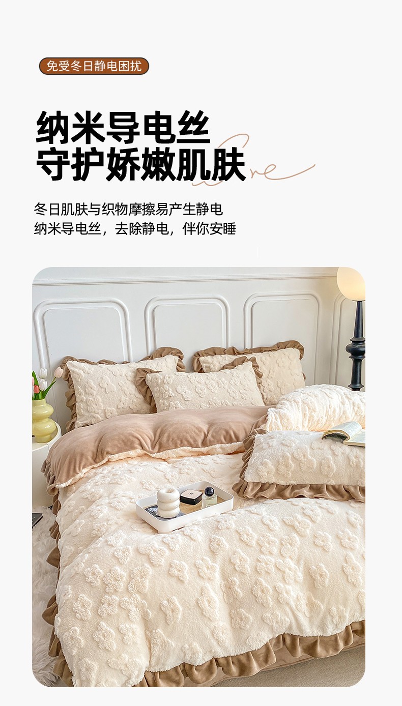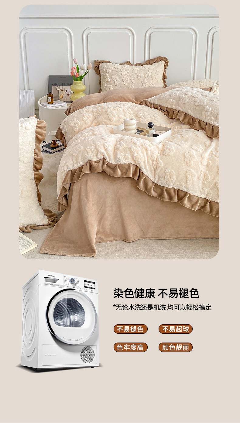 (总)米莱家纺 2025新款兔毛绒花边牛奶绒四件套,彩色圆点,繁花,粉黛,蝴蝶结,咖圆点,可爱兔,可爱熊,蔷薇