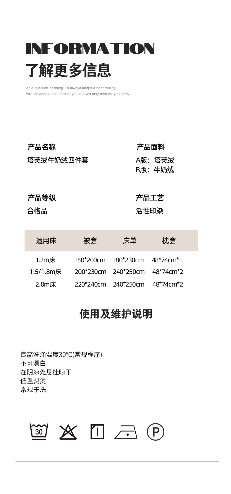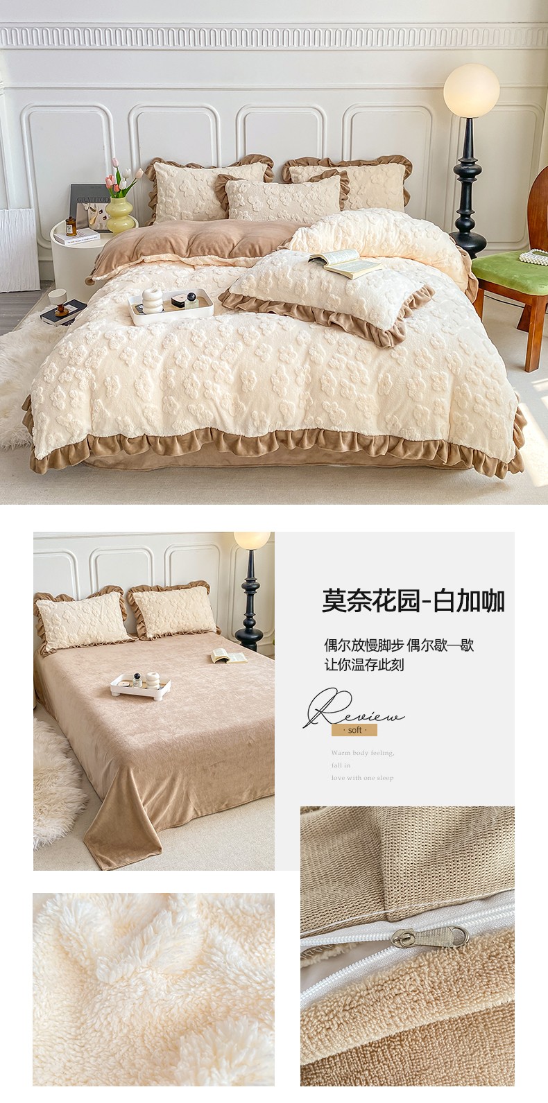 商品名称:米莱家纺 2024新款韩版塔芙绒牛奶绒四件套 莫奈花园-白加咖