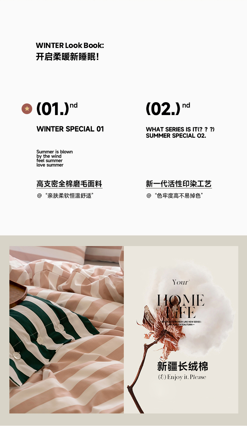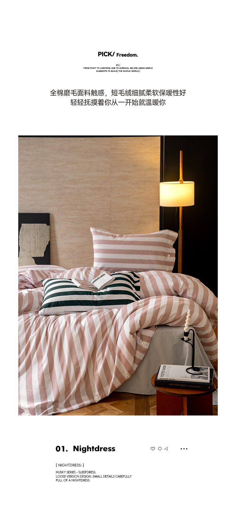 (总)华超针织 2025新款亲肤舒适全棉纯棉针织五件套四件套,奶糖+樱桃,杏粉+花田,杏灰+玫瑰
