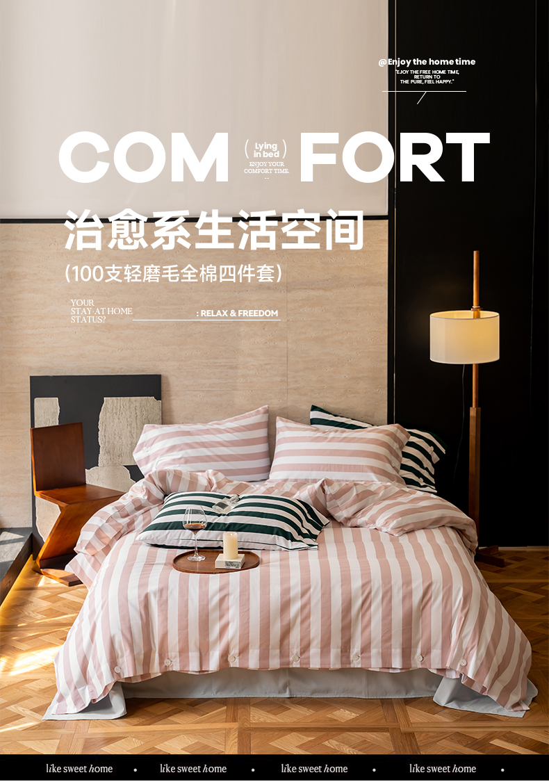 商品名称:华超针织 2023新款100支轻磨毛全棉四件套 马卡龙粉