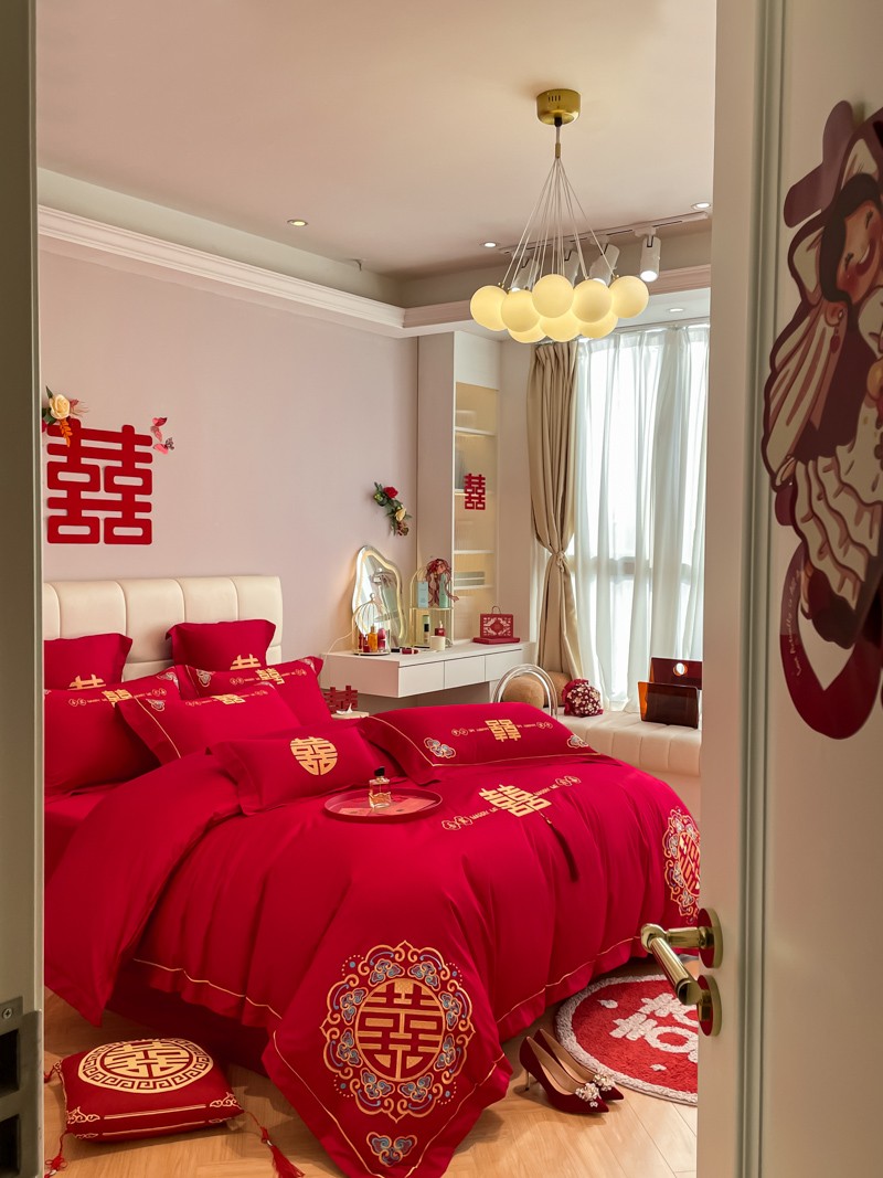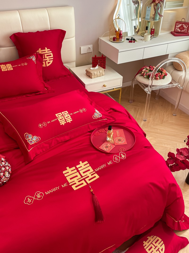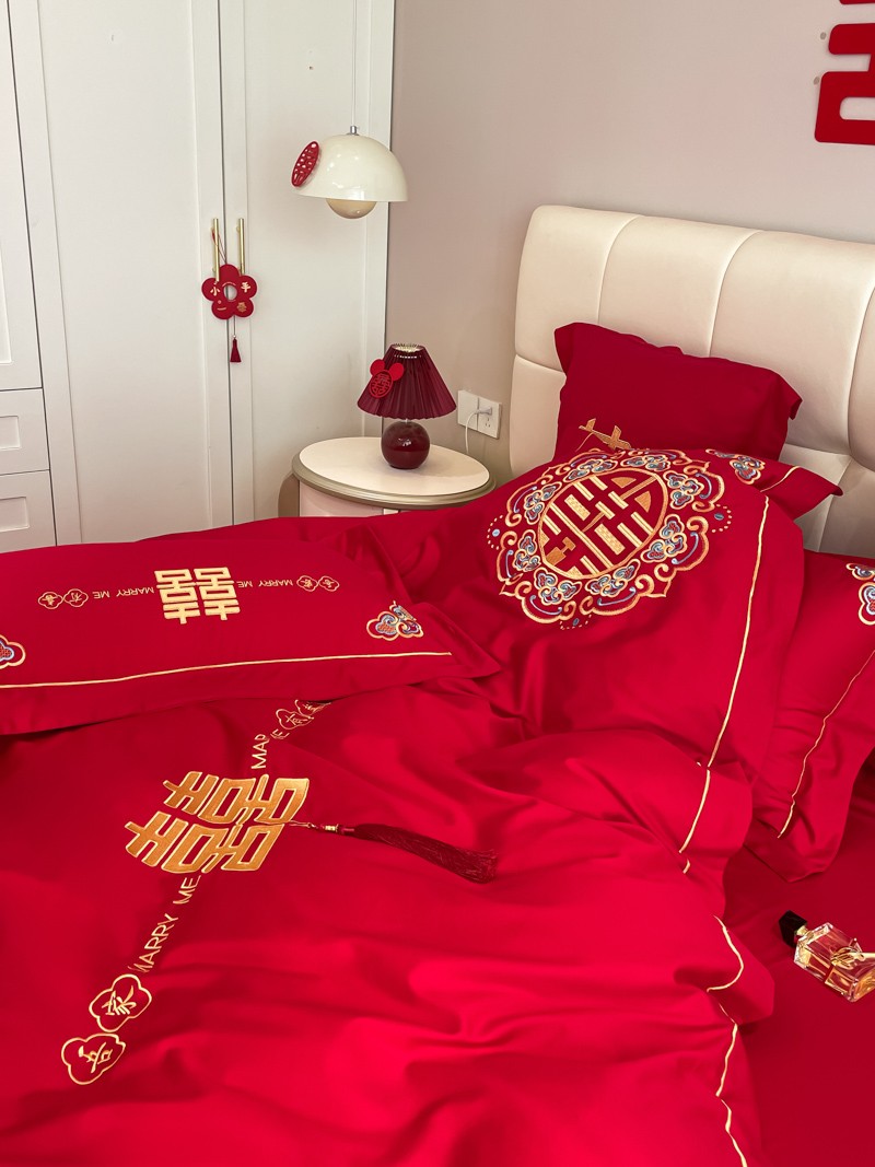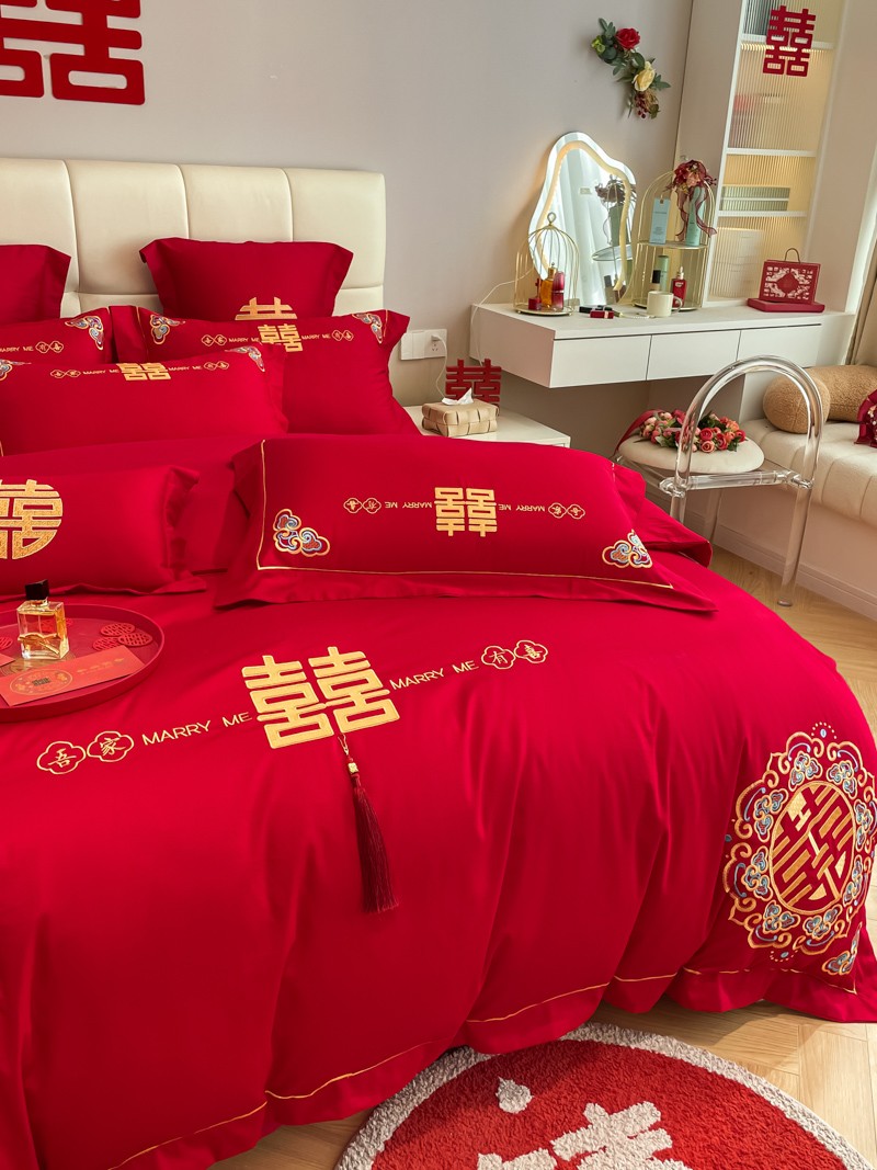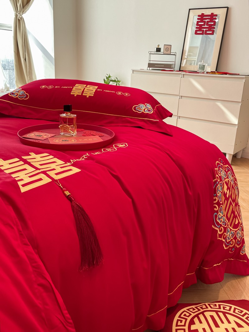 当前位置: 91家纺网 > 商品网购 > 床品套件 > 四件套 > 婚庆四件套 > 欧乐蒂 2025新款亲肤刺绣婚庆四件套 吾家有喜