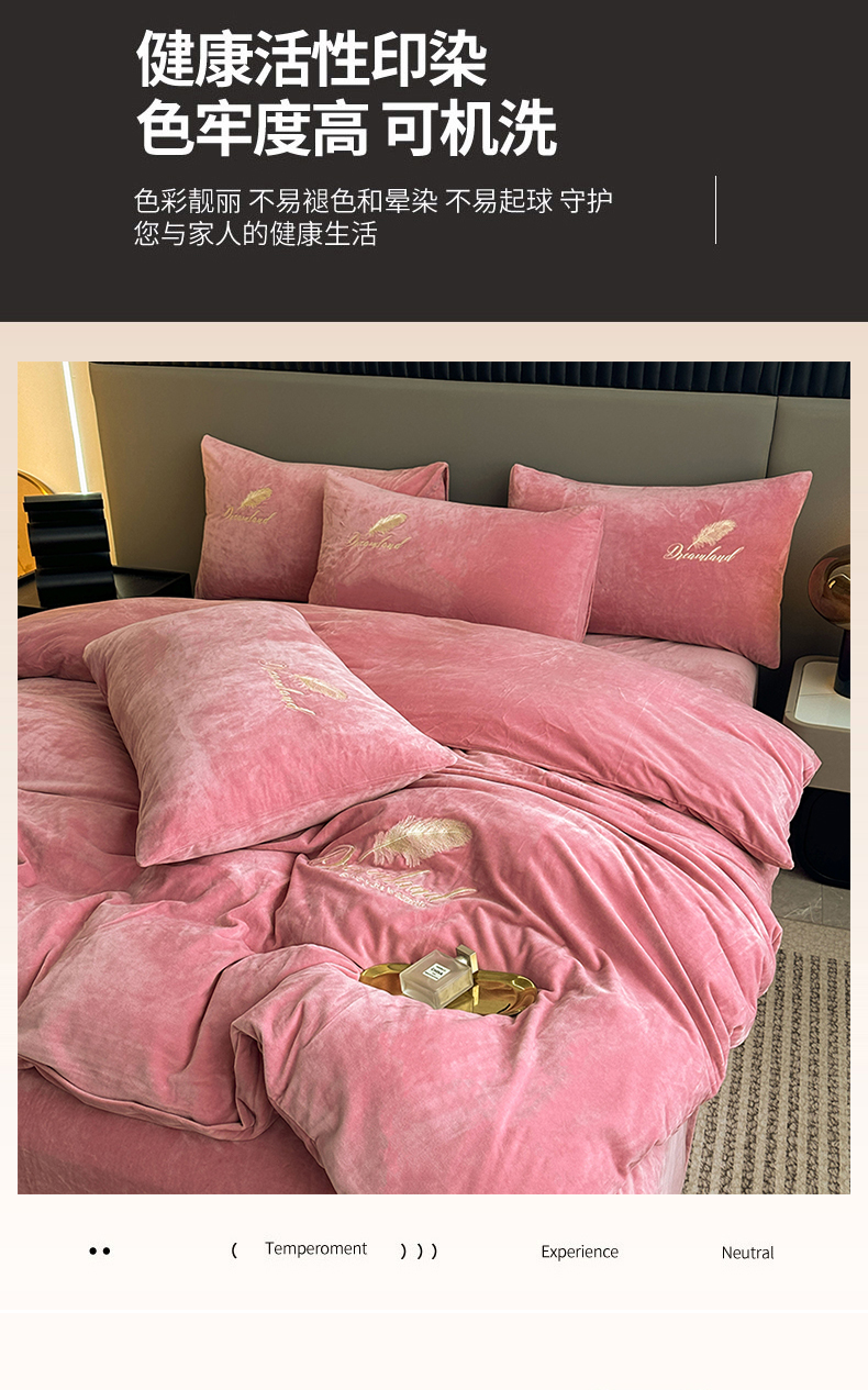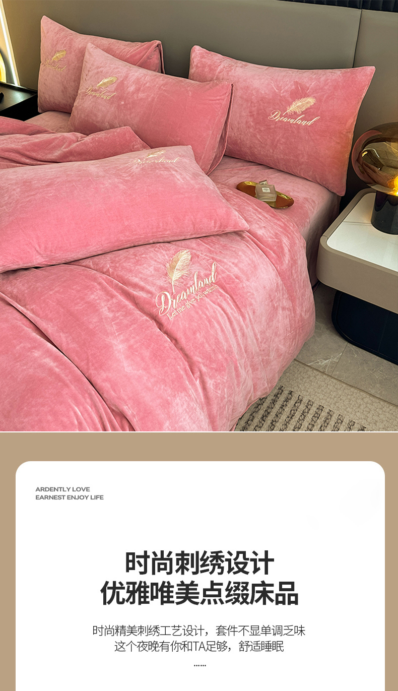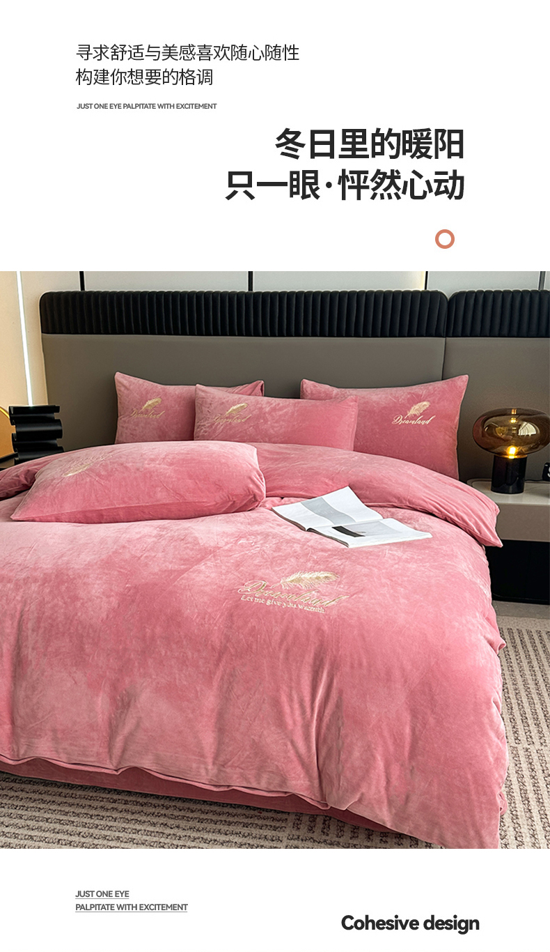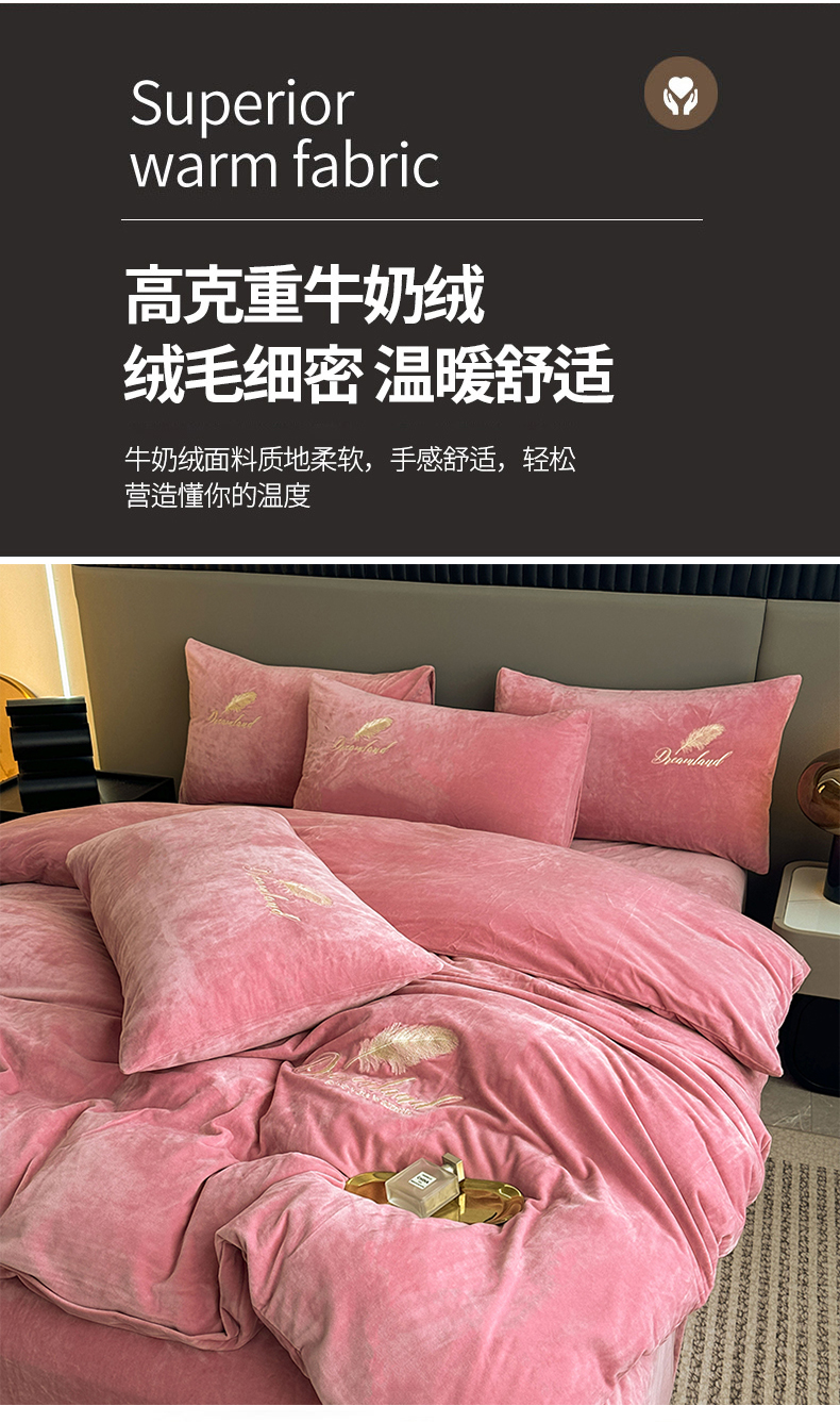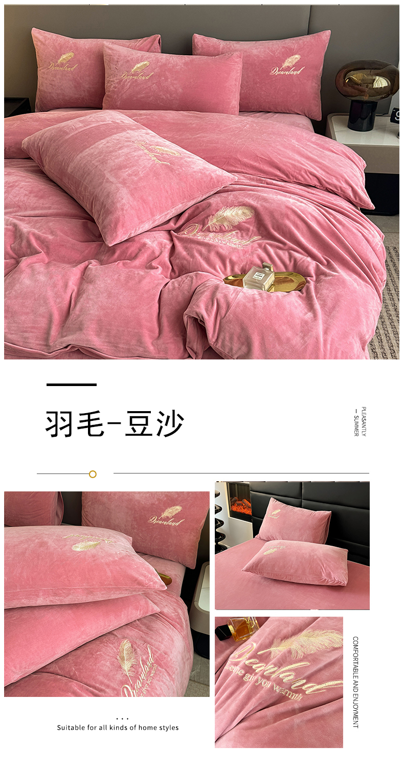 当前位置: 91家纺网 > 商品网购 > 床品套件 > 四件套 > 牛奶绒四件套 > yyds网供 2024新款短绒羽毛刺绣水晶绒四件套轻奢秋冬牛奶绒简约-羽毛系列 羽毛-豆沙