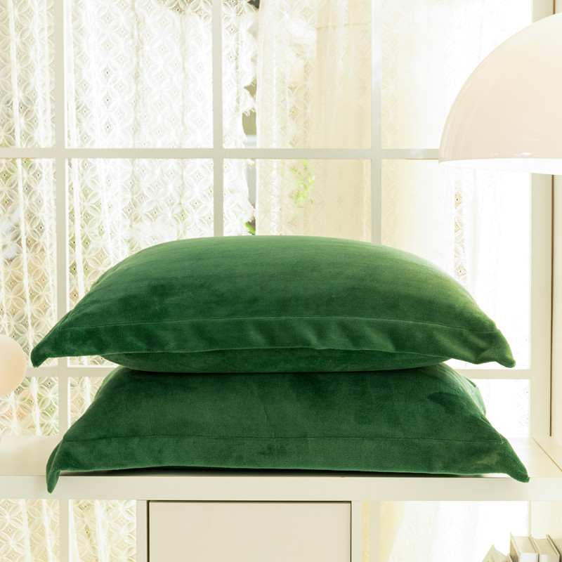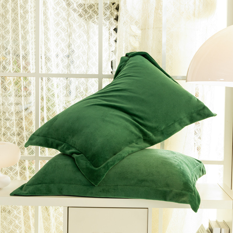 好阁家纺 2023新款牛奶绒纯色枕套 橄榄绿