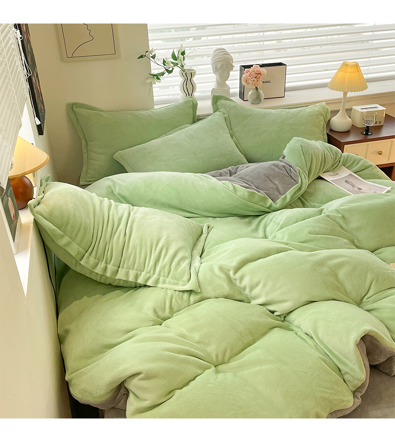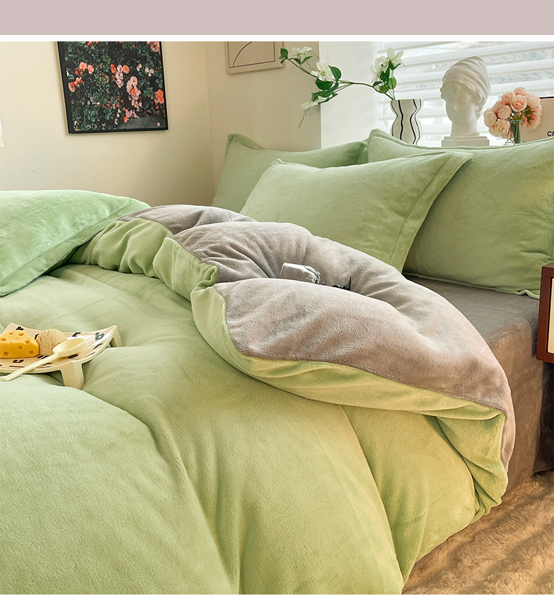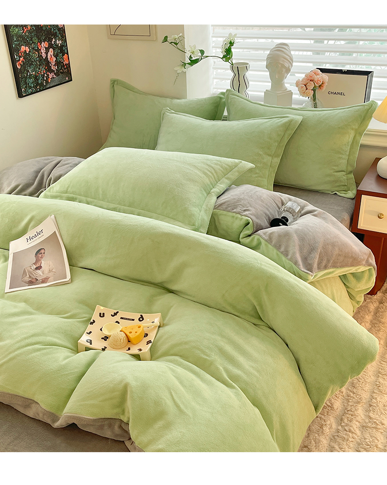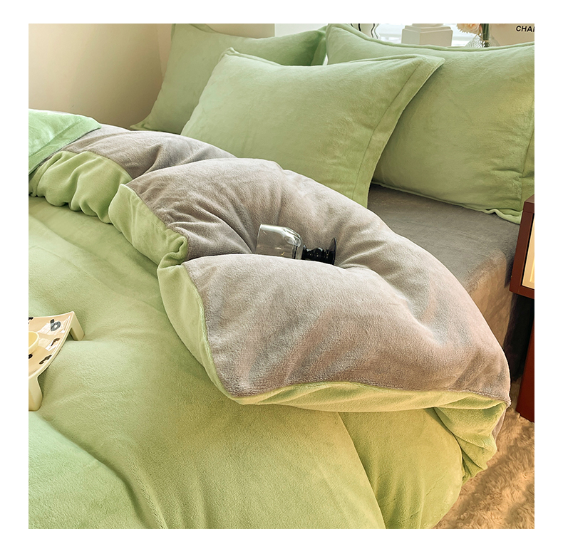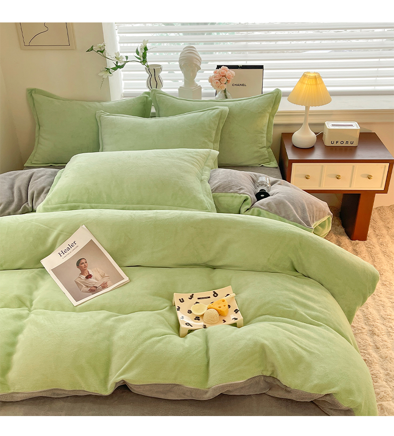 当前位置: 91家纺网 > 商品网购 > 床品套件 > 四件套 > 牛奶绒四件套 > 逸尚阁 2024新款高克重纯色牛奶绒四件套 绿+浅灰