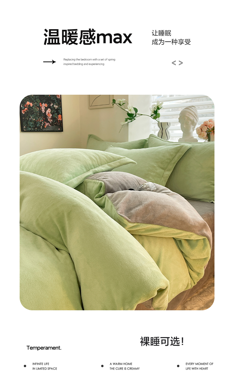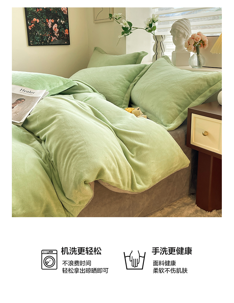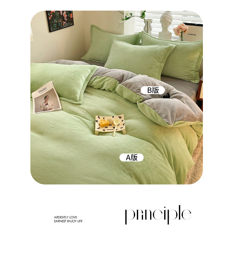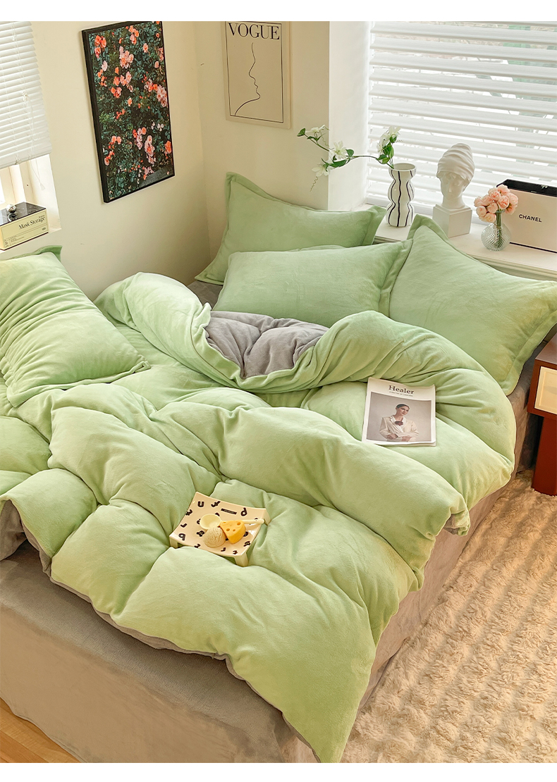 当前位置: 91家纺网 > 商品网购 > 床品套件 > 四件套 > 牛奶绒四件套 > 逸尚阁 2024新款高克重纯色牛奶绒四件套 绿+浅灰