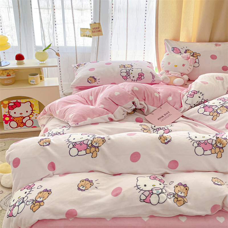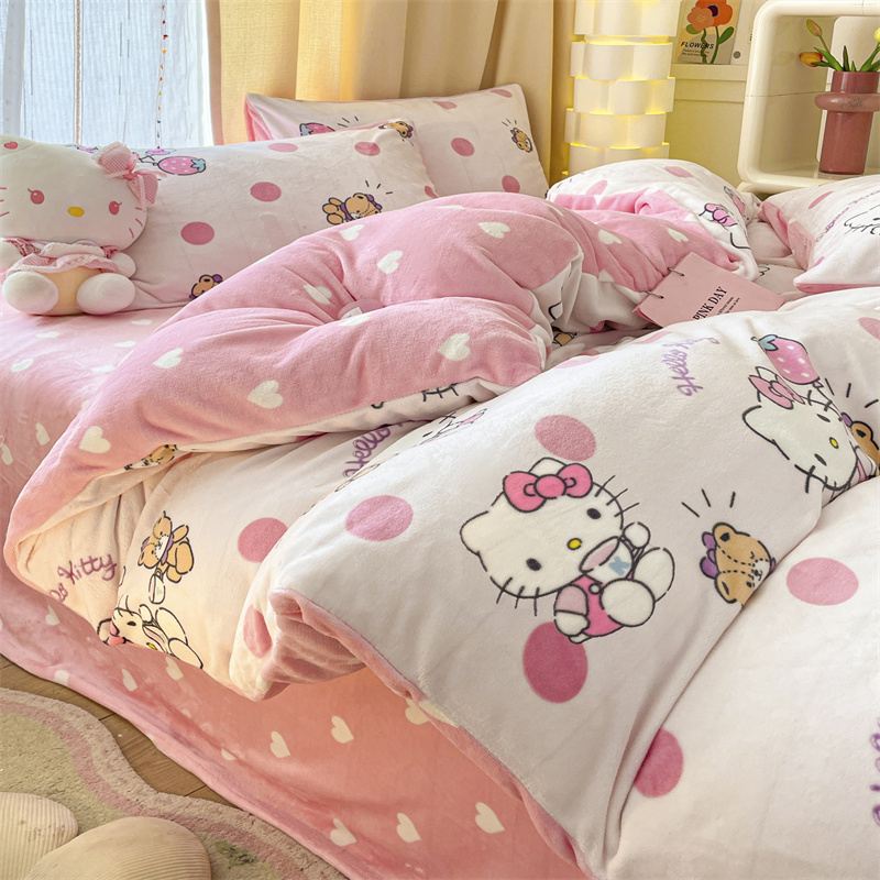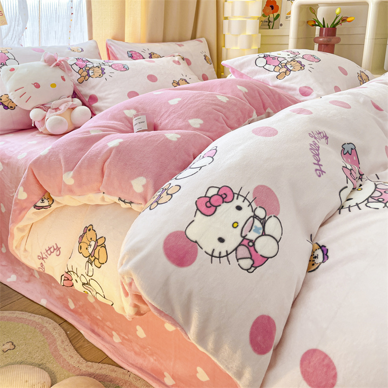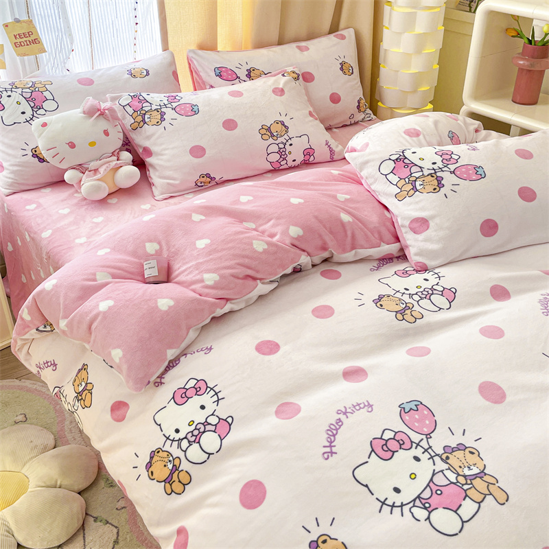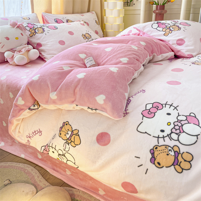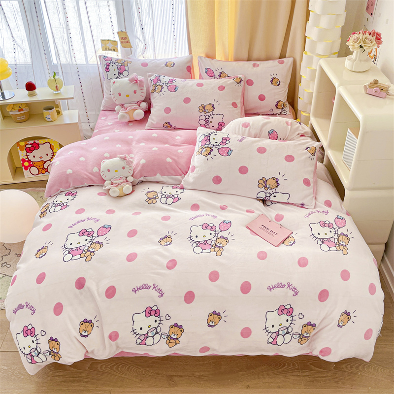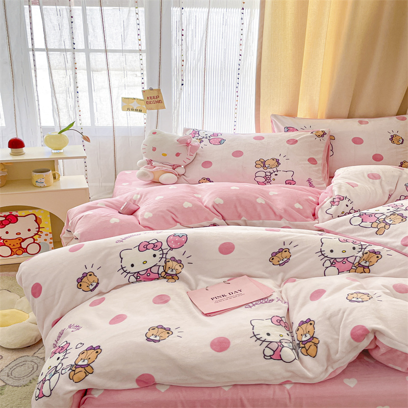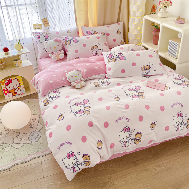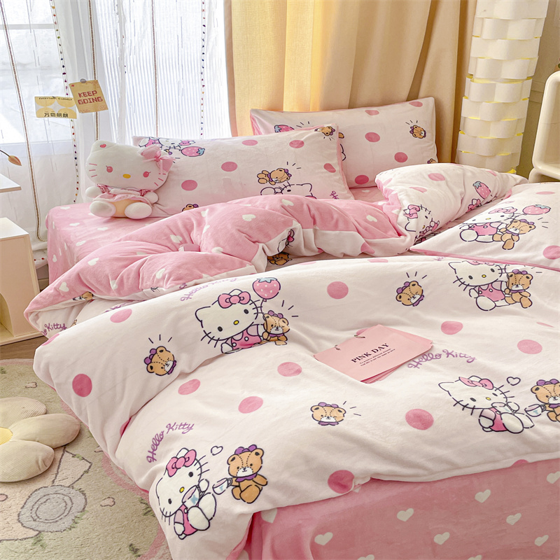 当前位置: 91家纺网 > 商品网购 > 床品套件 > 四件套 > 牛奶绒四件套 > 博雅 2023新款三丽鸥正版授权卡通加厚牛奶绒系列四件套草莓Kitty
