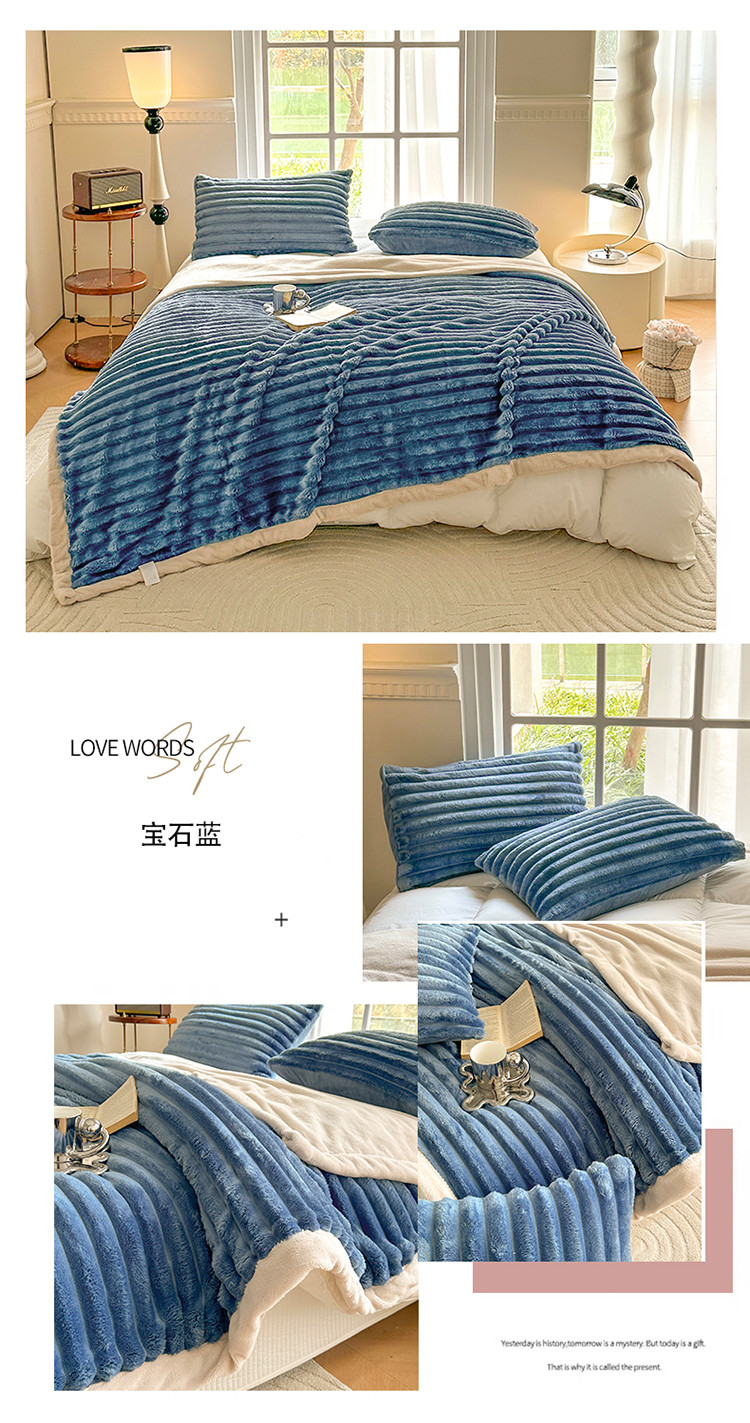 商品名称:网客 2024新款高克重纯色兔毛绒休闲毯 宝石蓝