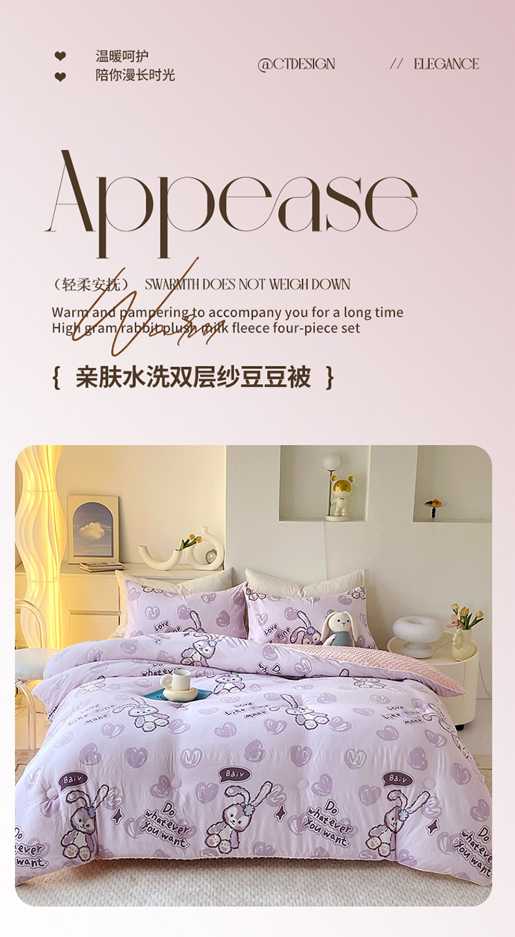 (总)网客家纺 2024新款100支长绒棉兔子绣花四件套,小兔崽子-粉,小兔崽子-蓝,小兔崽子-香槟